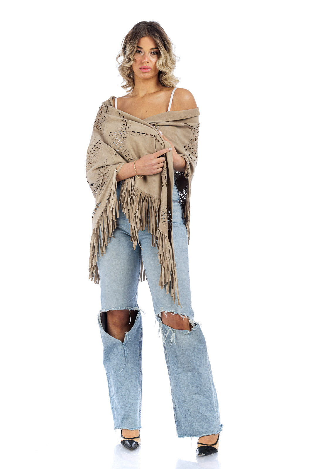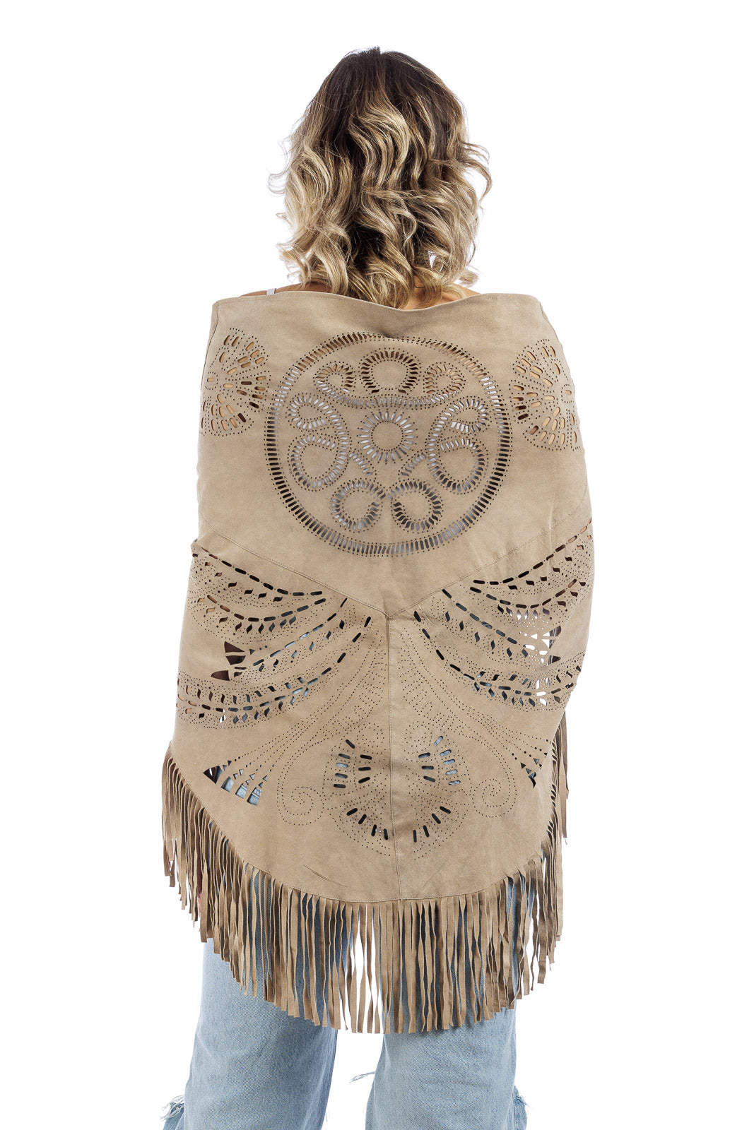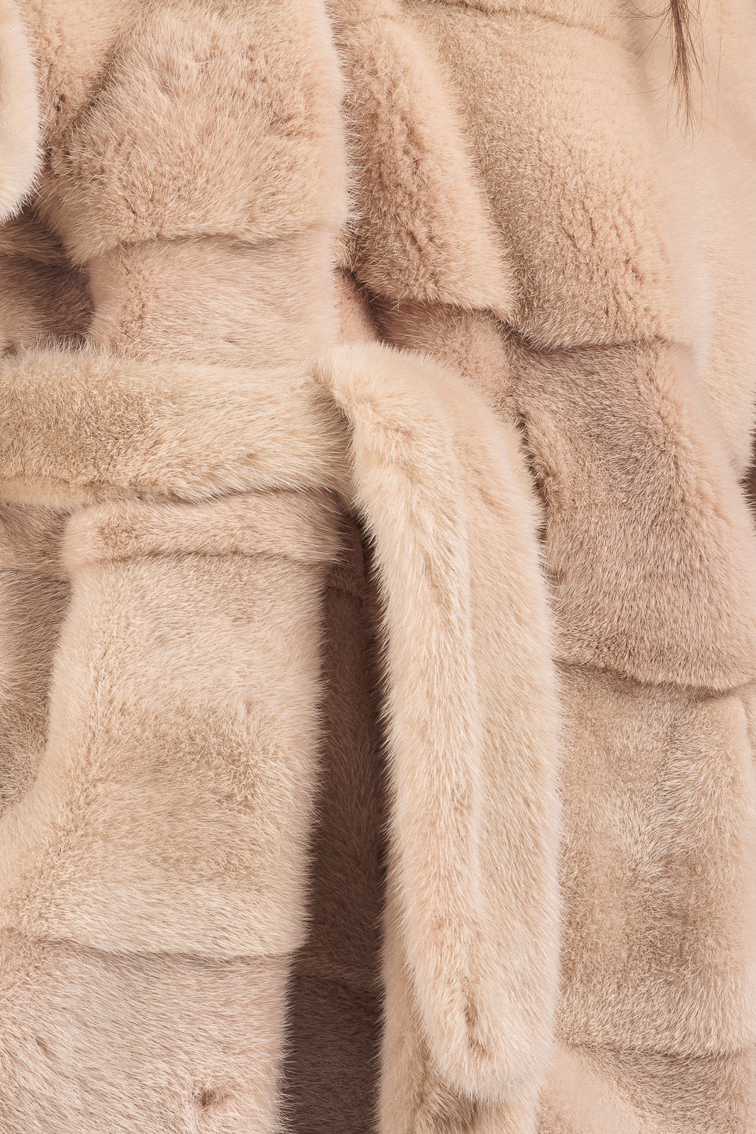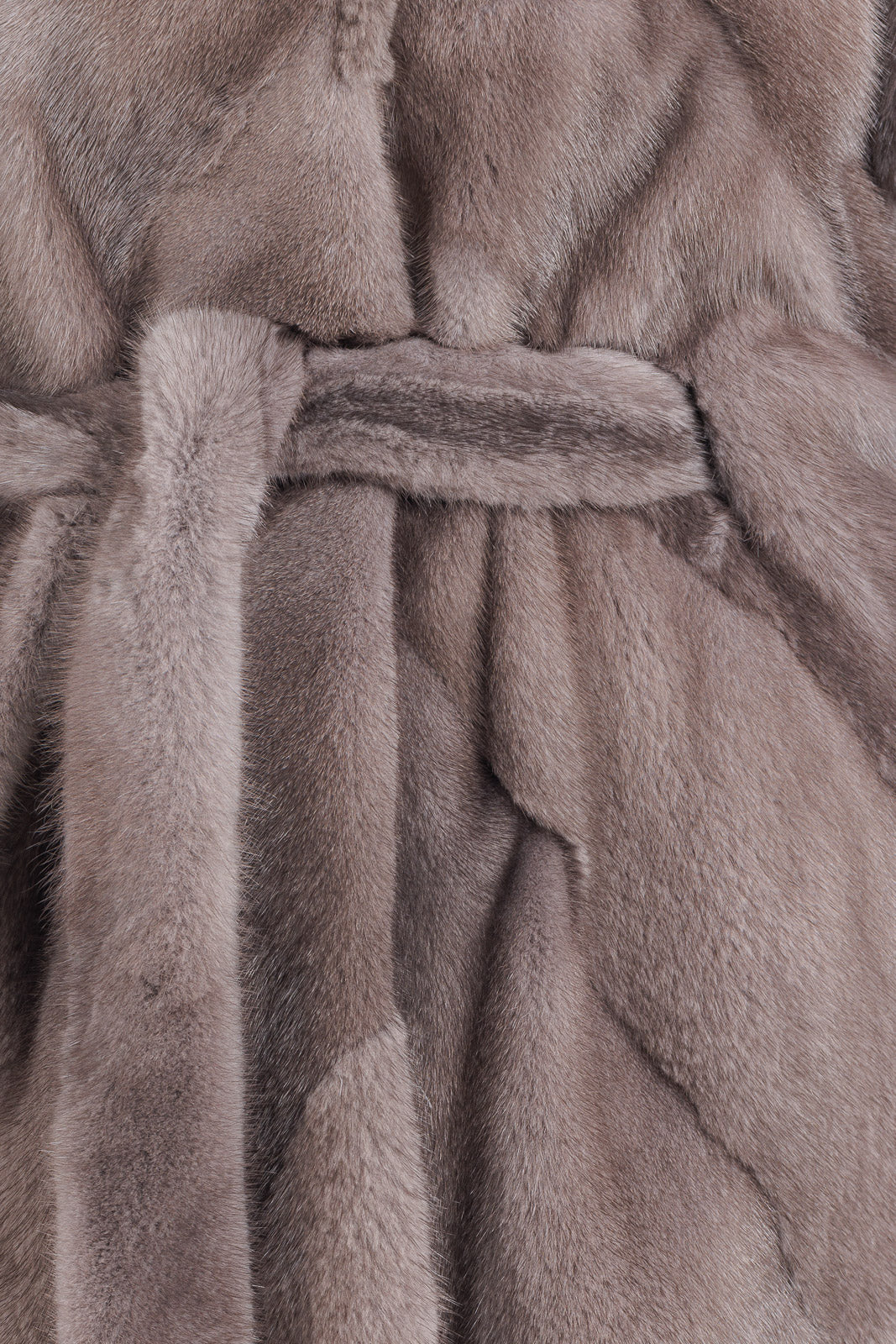 Mantella in pelliccia di Visone perla con cintura annodata in pelle