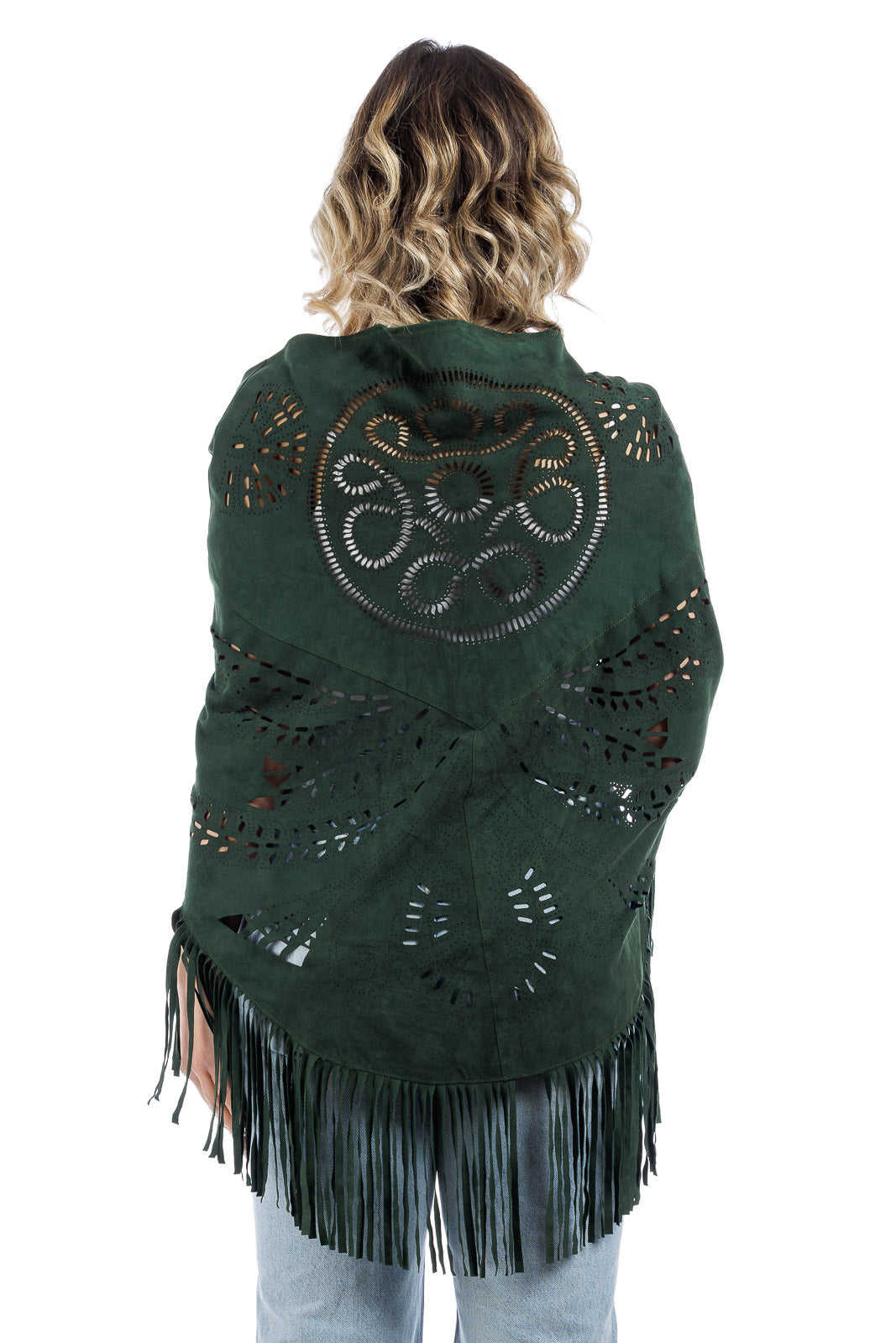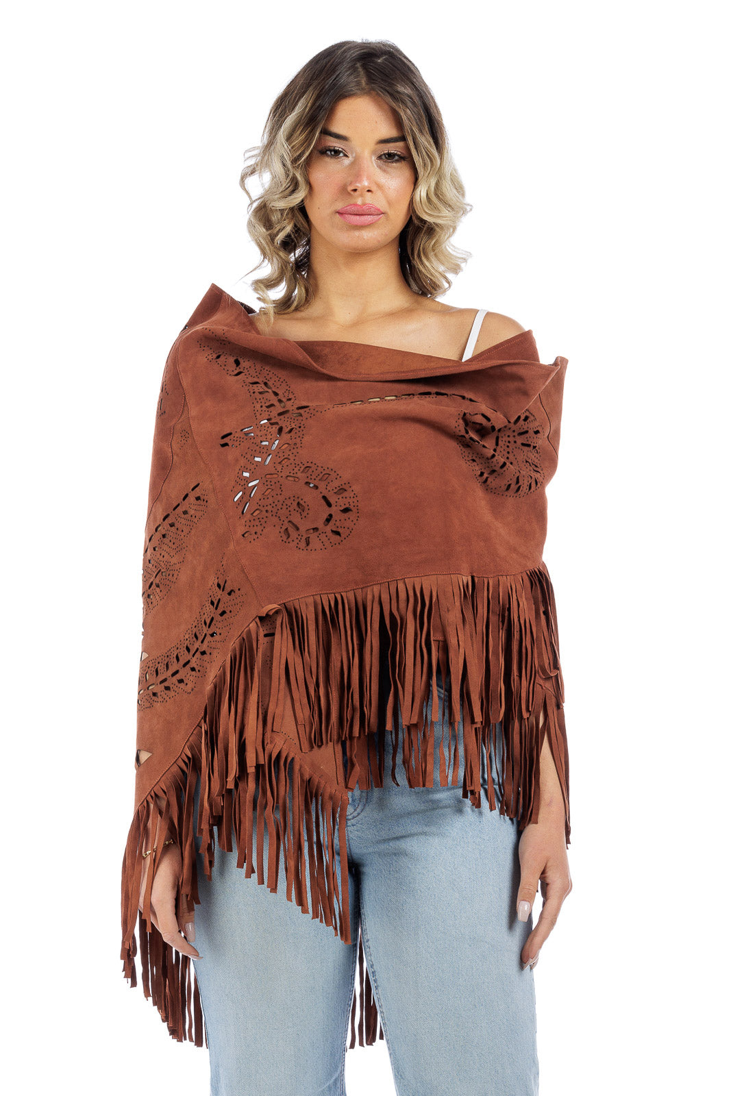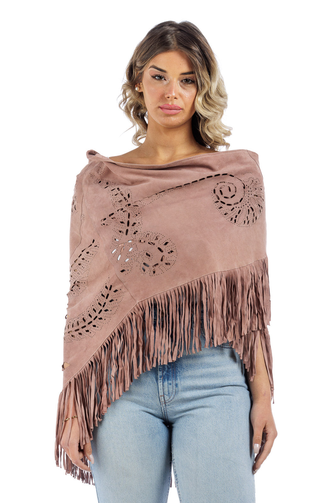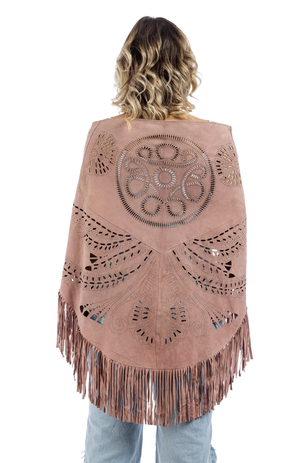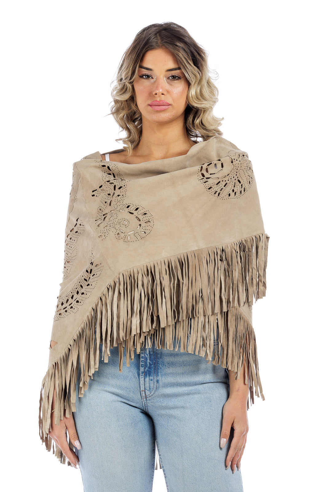 Mantella in pelliccia di Visone perla con cintura annodata in pelle