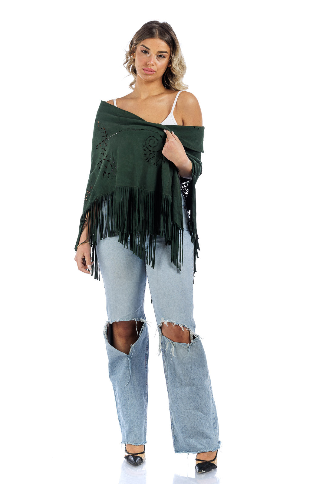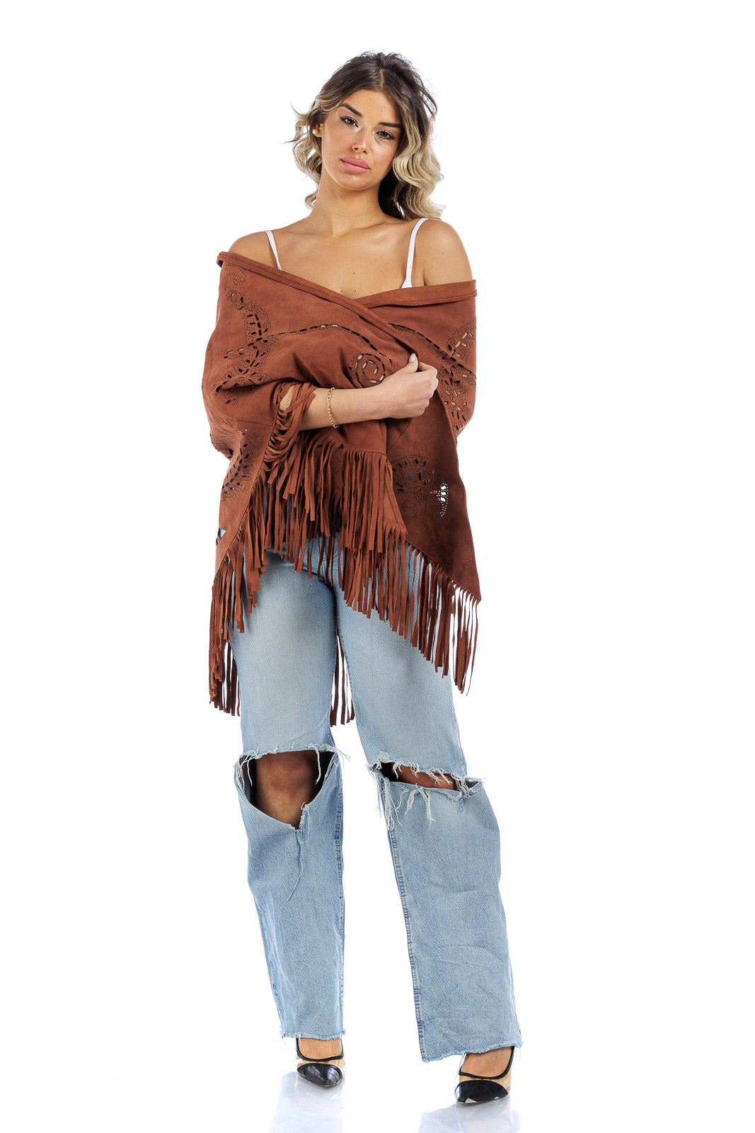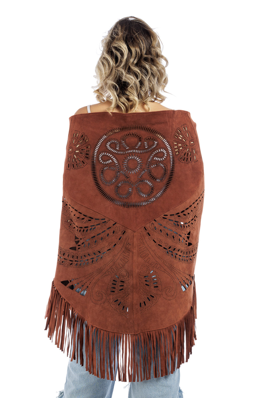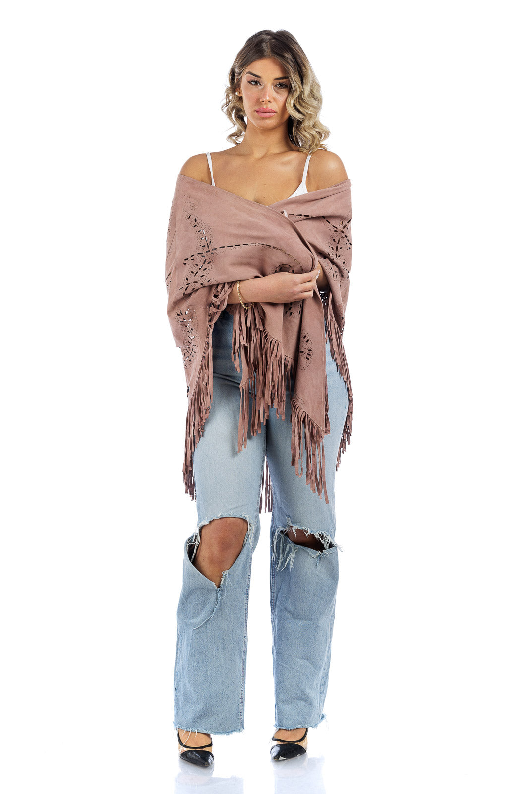 Mantella in pelliccia di Visone perla con cintura annodata in pelle