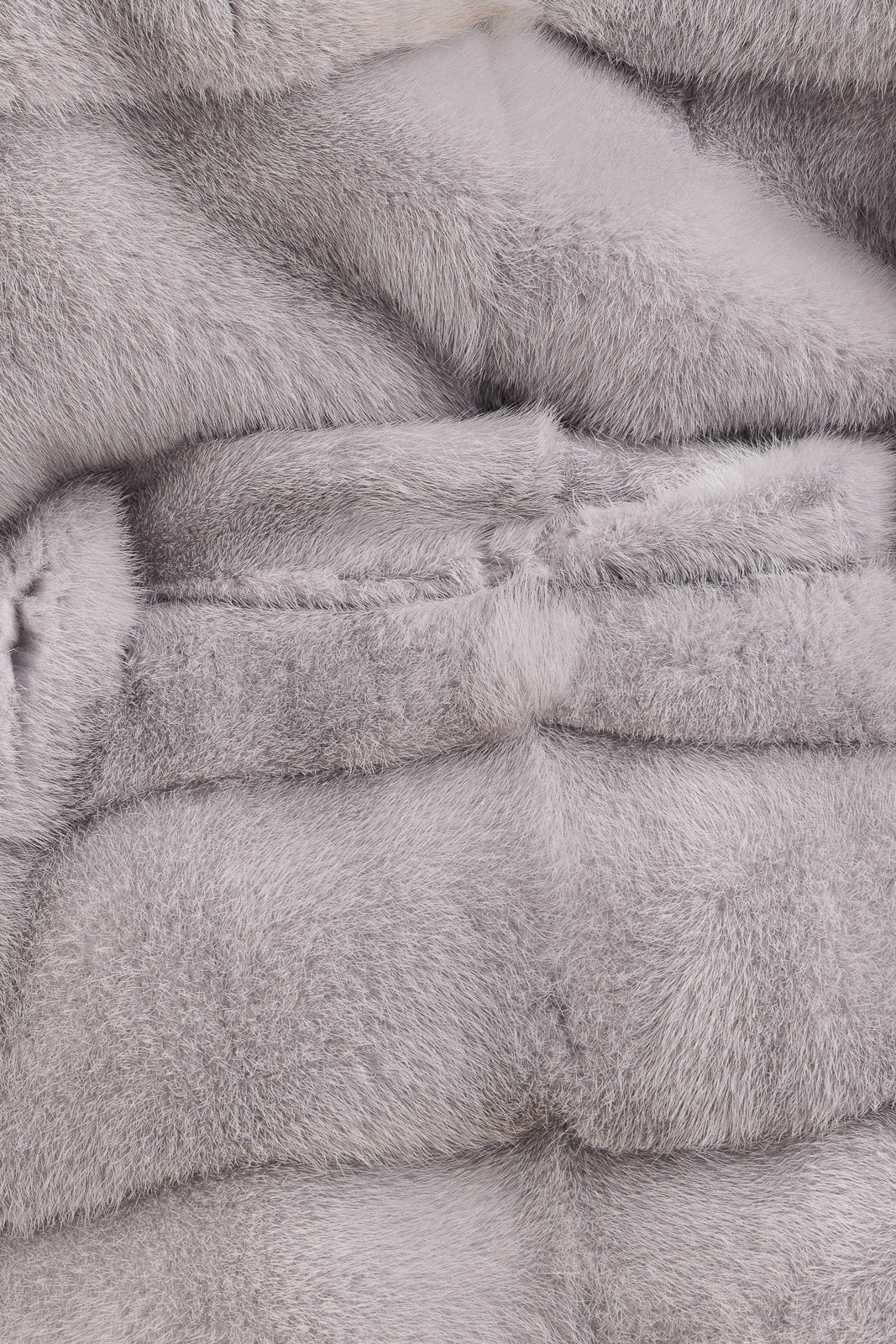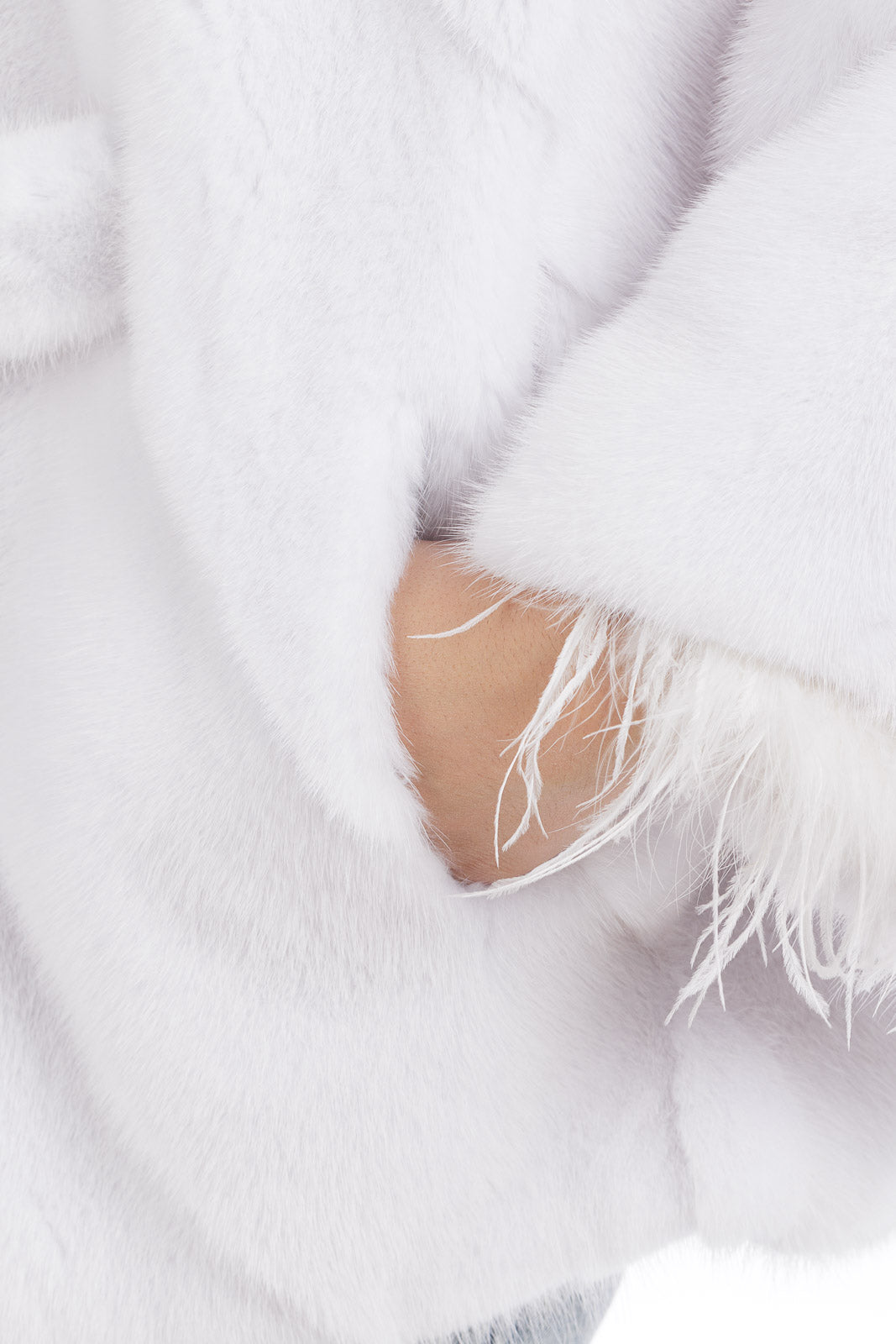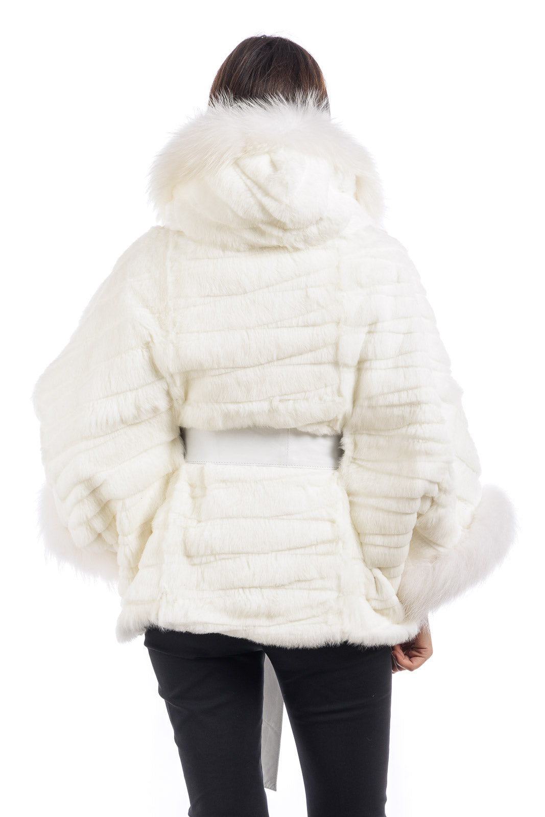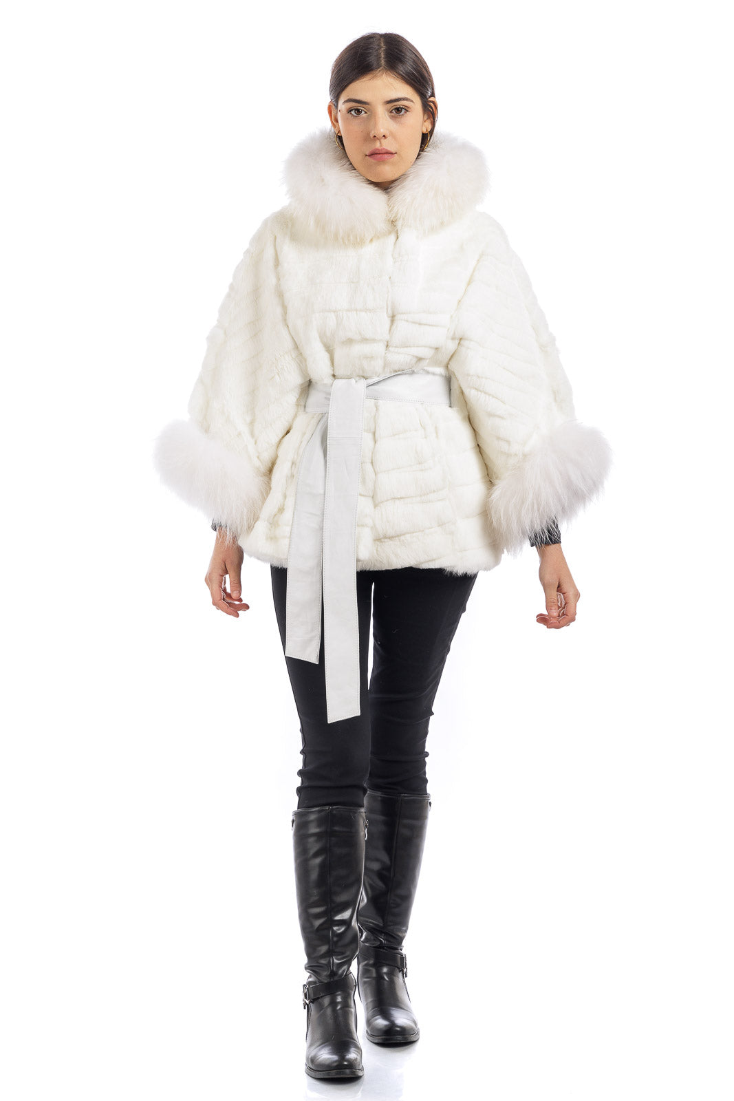Mantella in pelliccia di Visone ghiaccio con cappuccio e cintura in visone