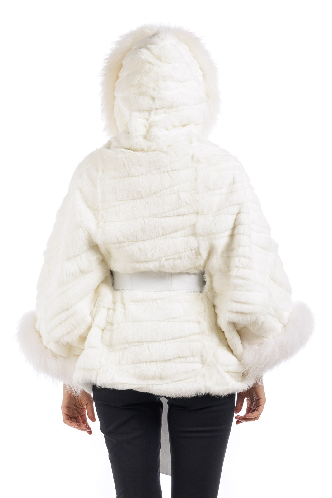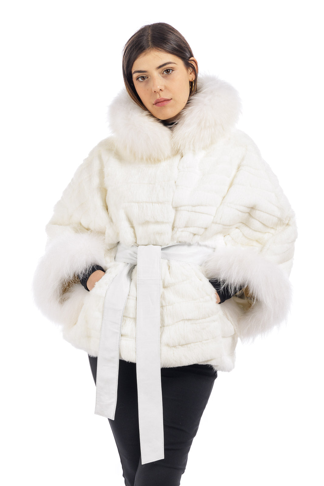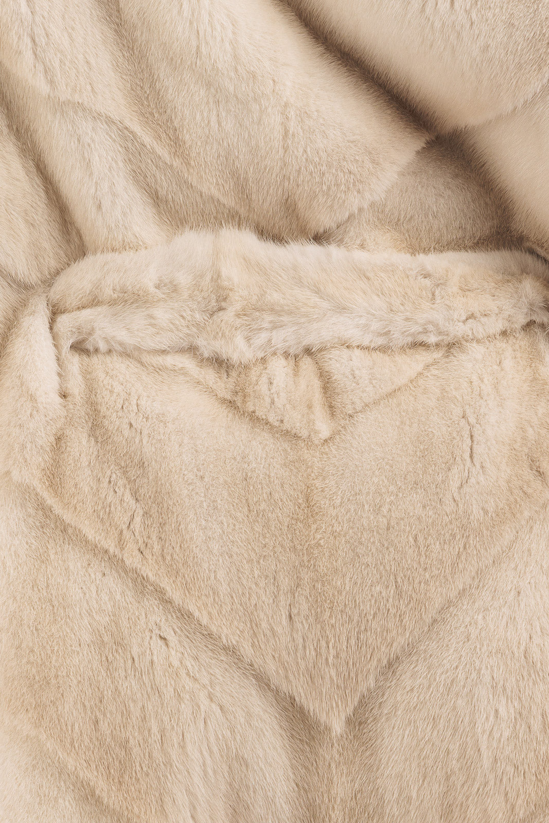 Mantella in pelliccia di Visone perla con cappuccio e cintura in visone