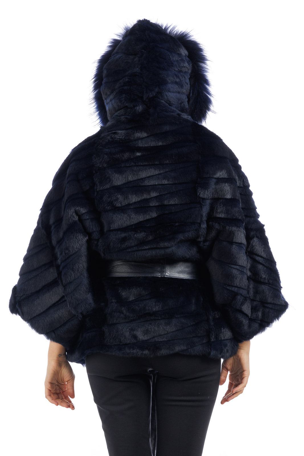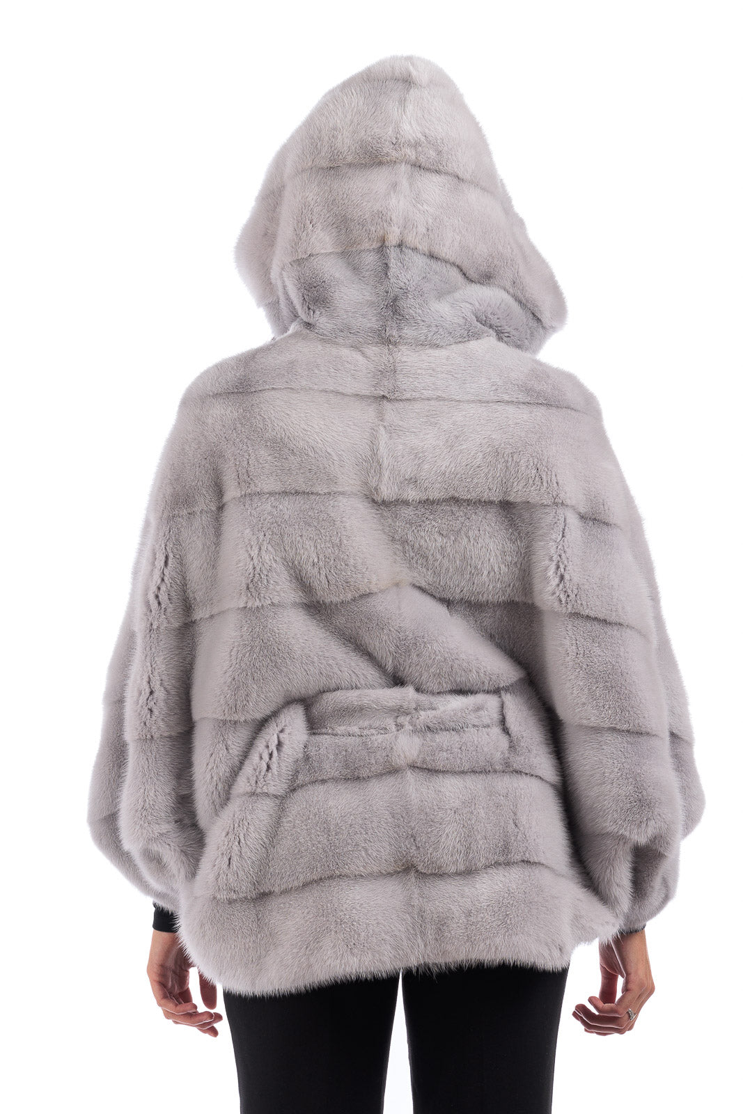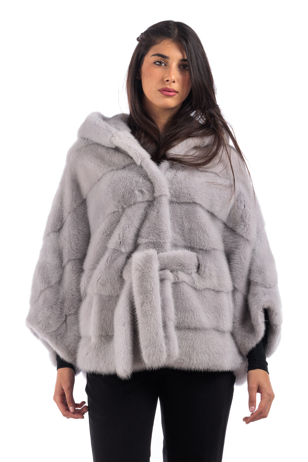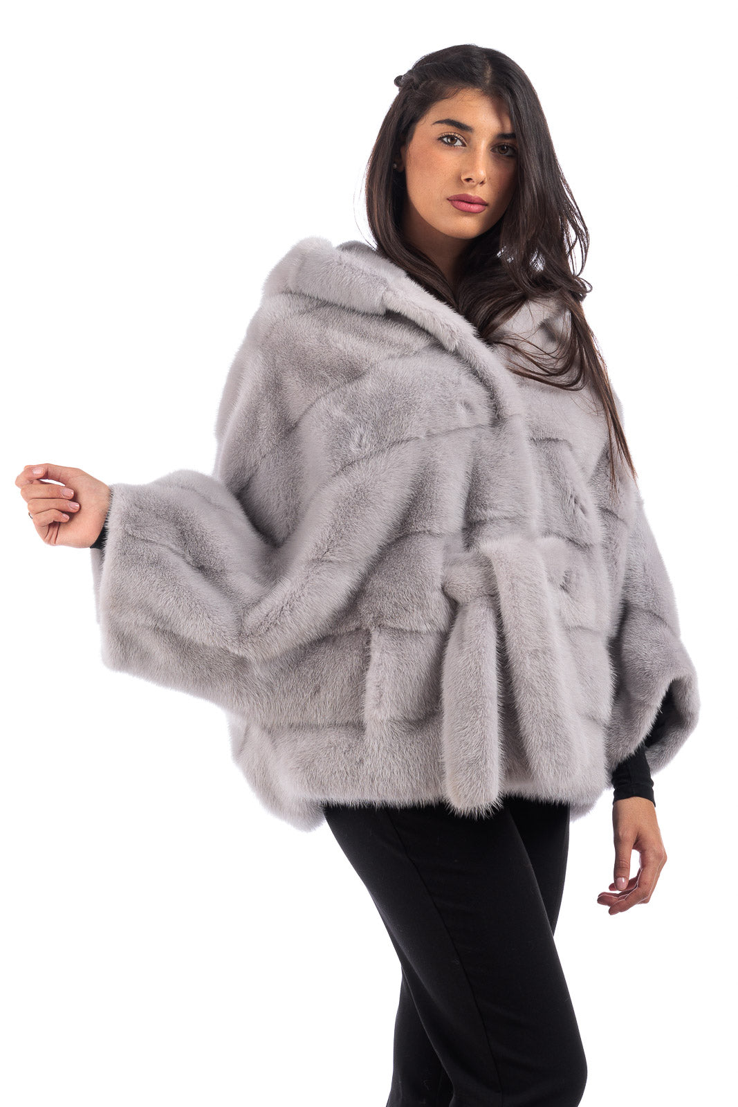 Mantella in pelliccia di Visone iris blue con cappuccio