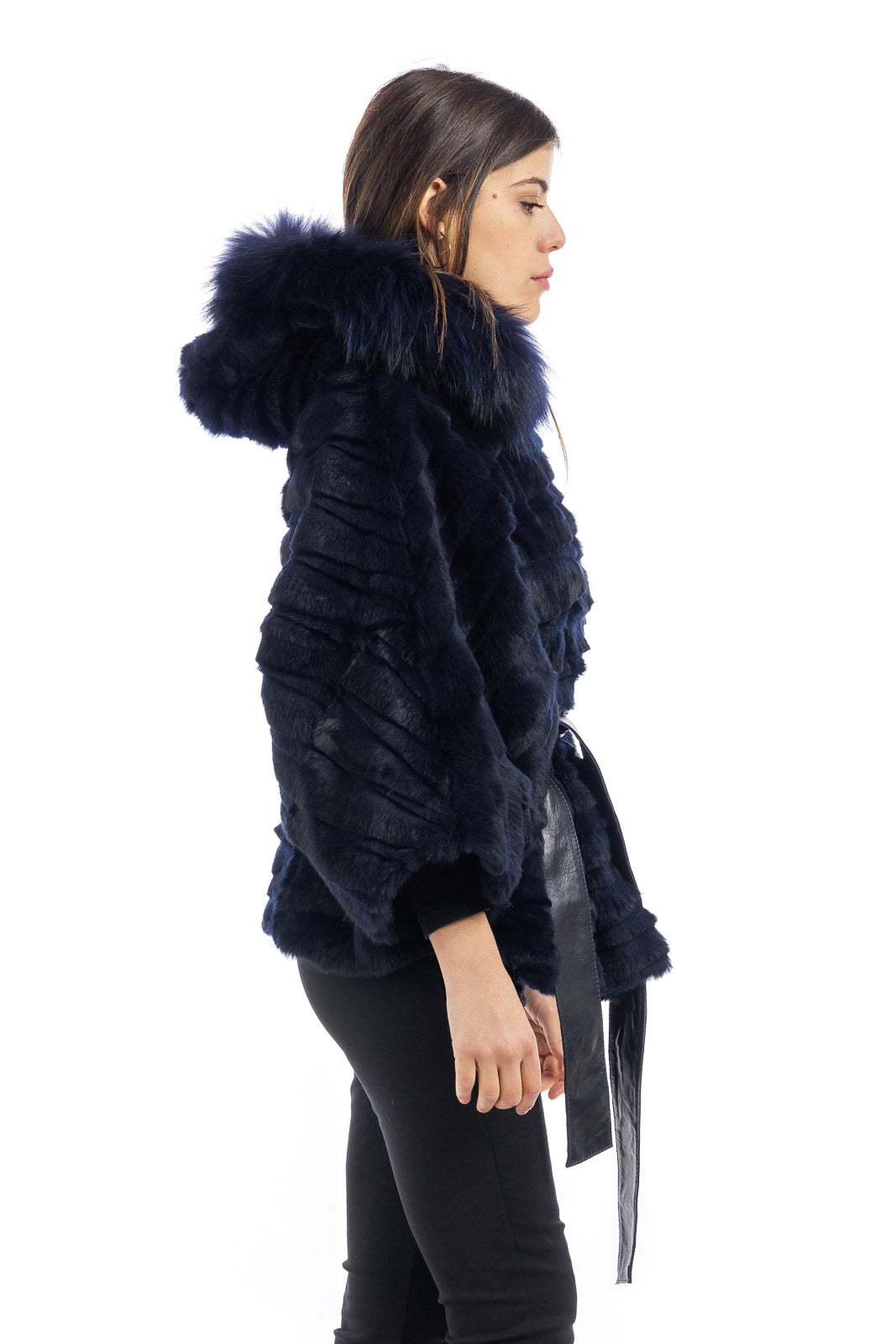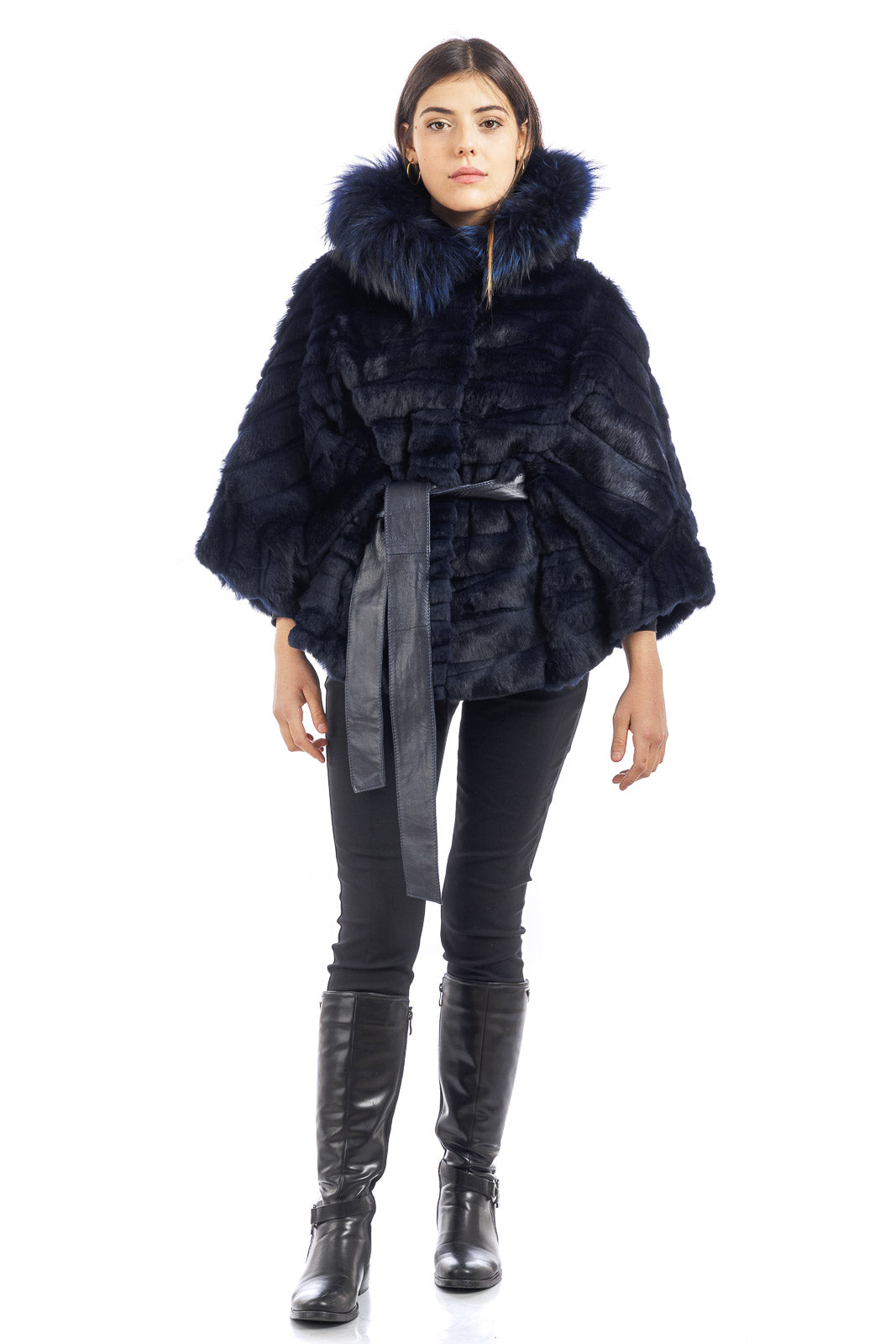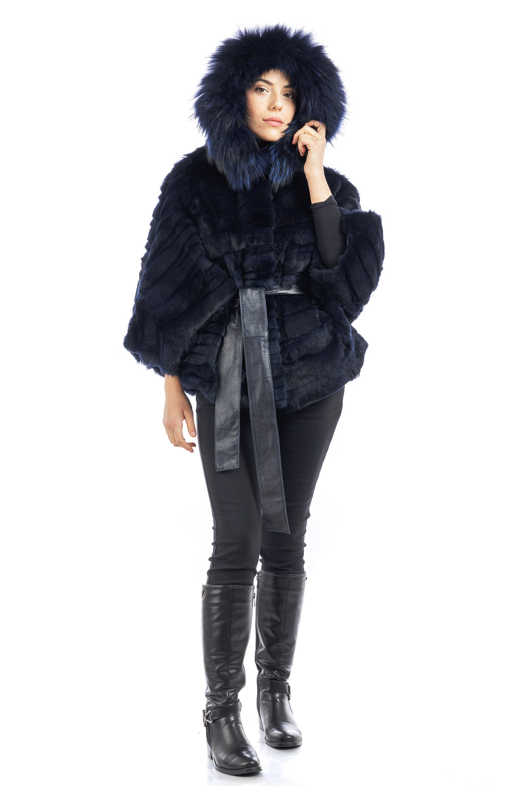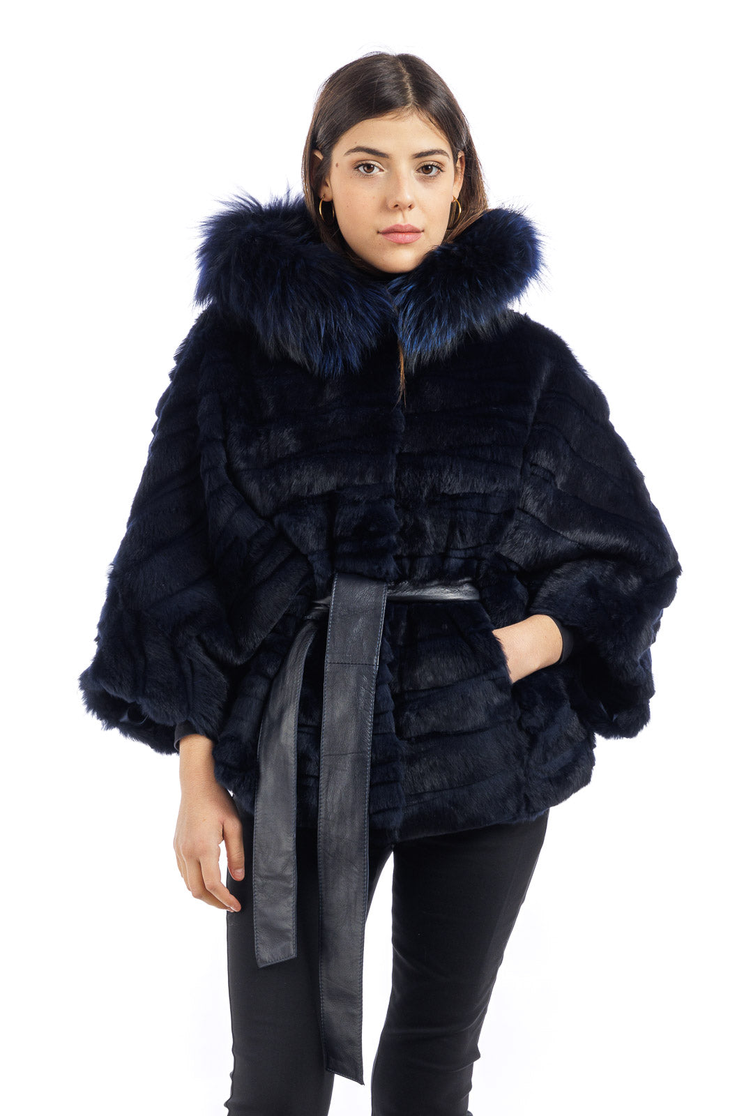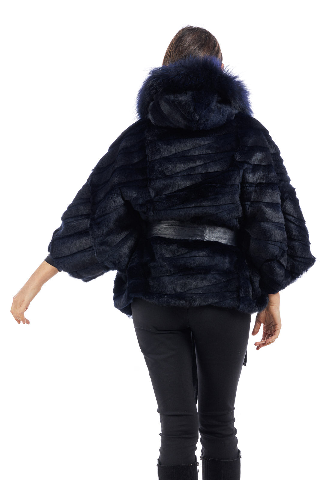 Mantella in pelliccia di Visone iris blue con cappuccio