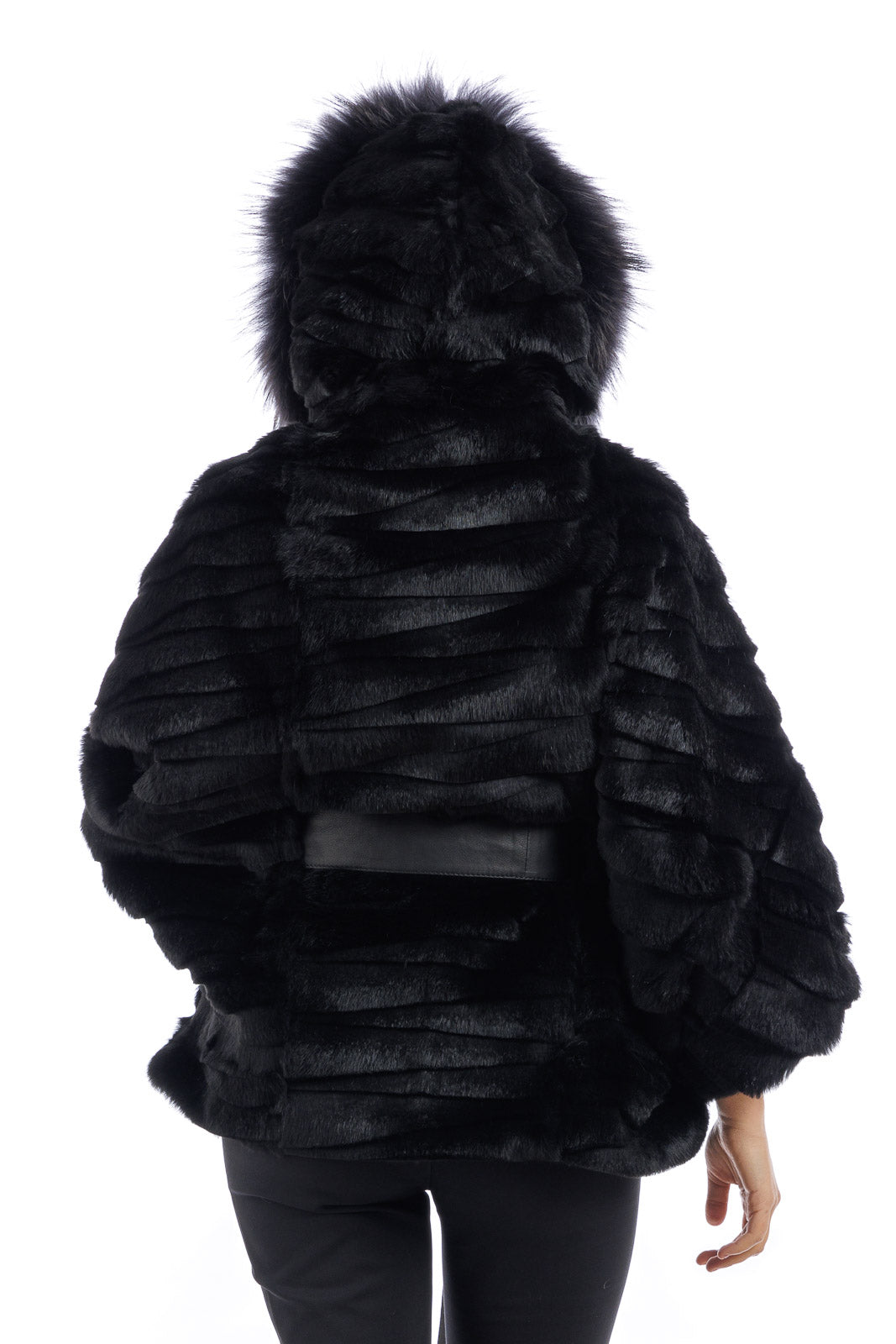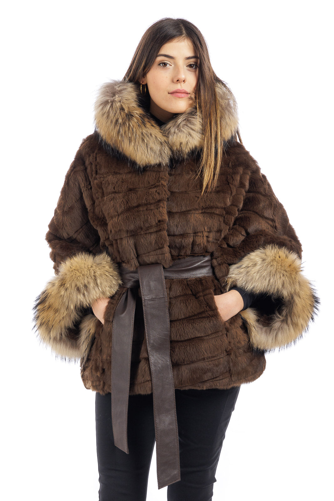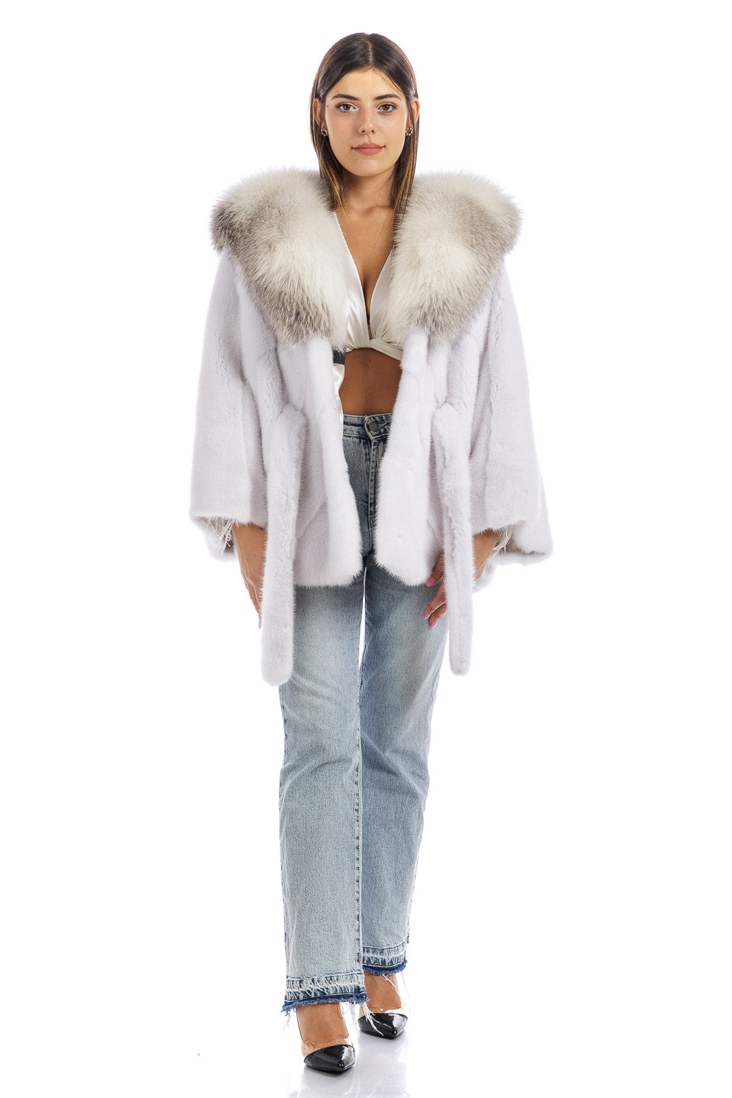 Mantella in pelliccia di Visone sapphire con cappuccio bordato in volpe