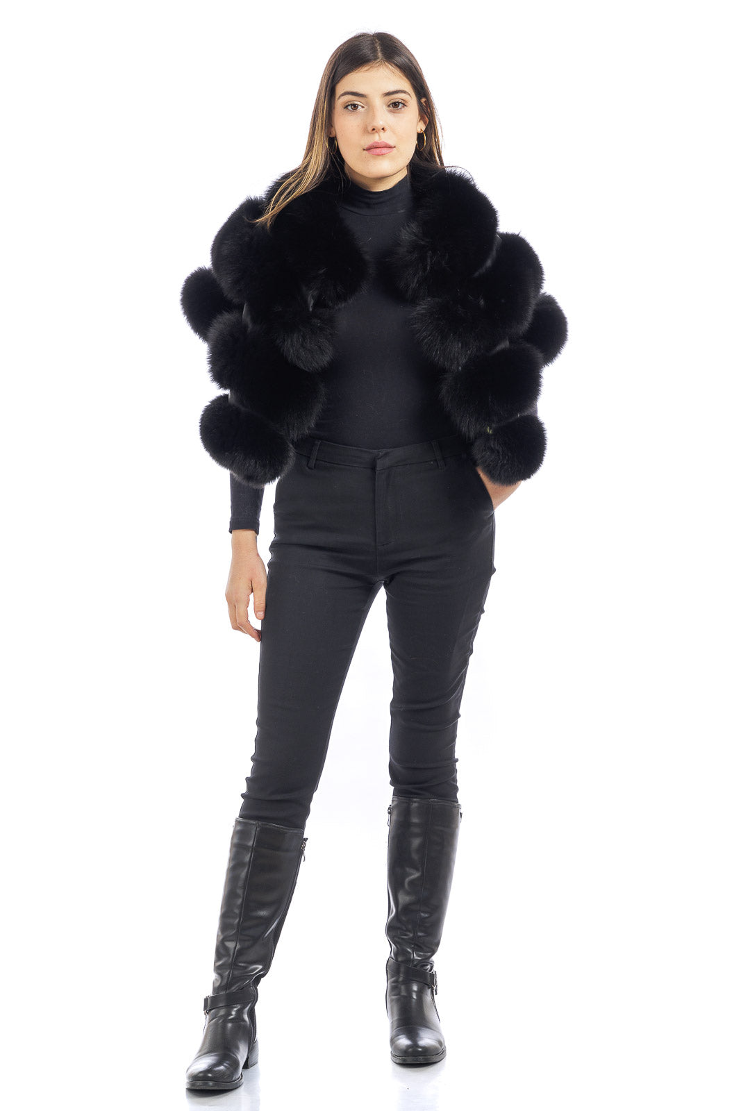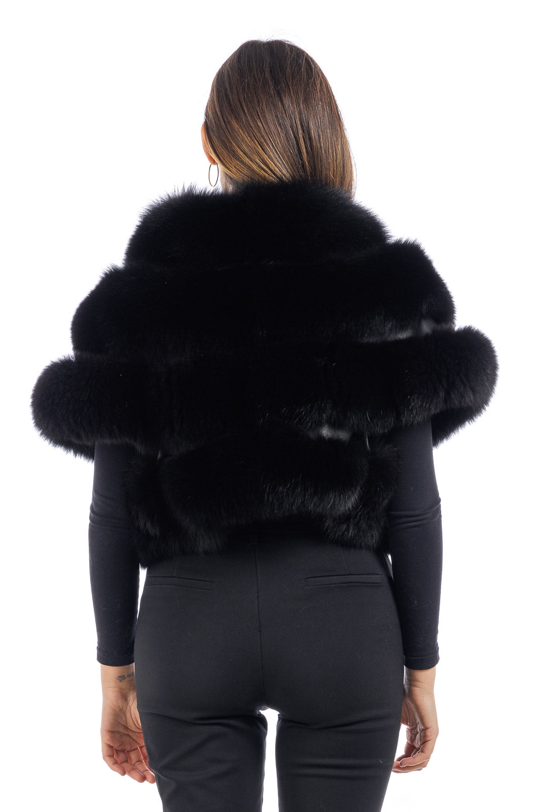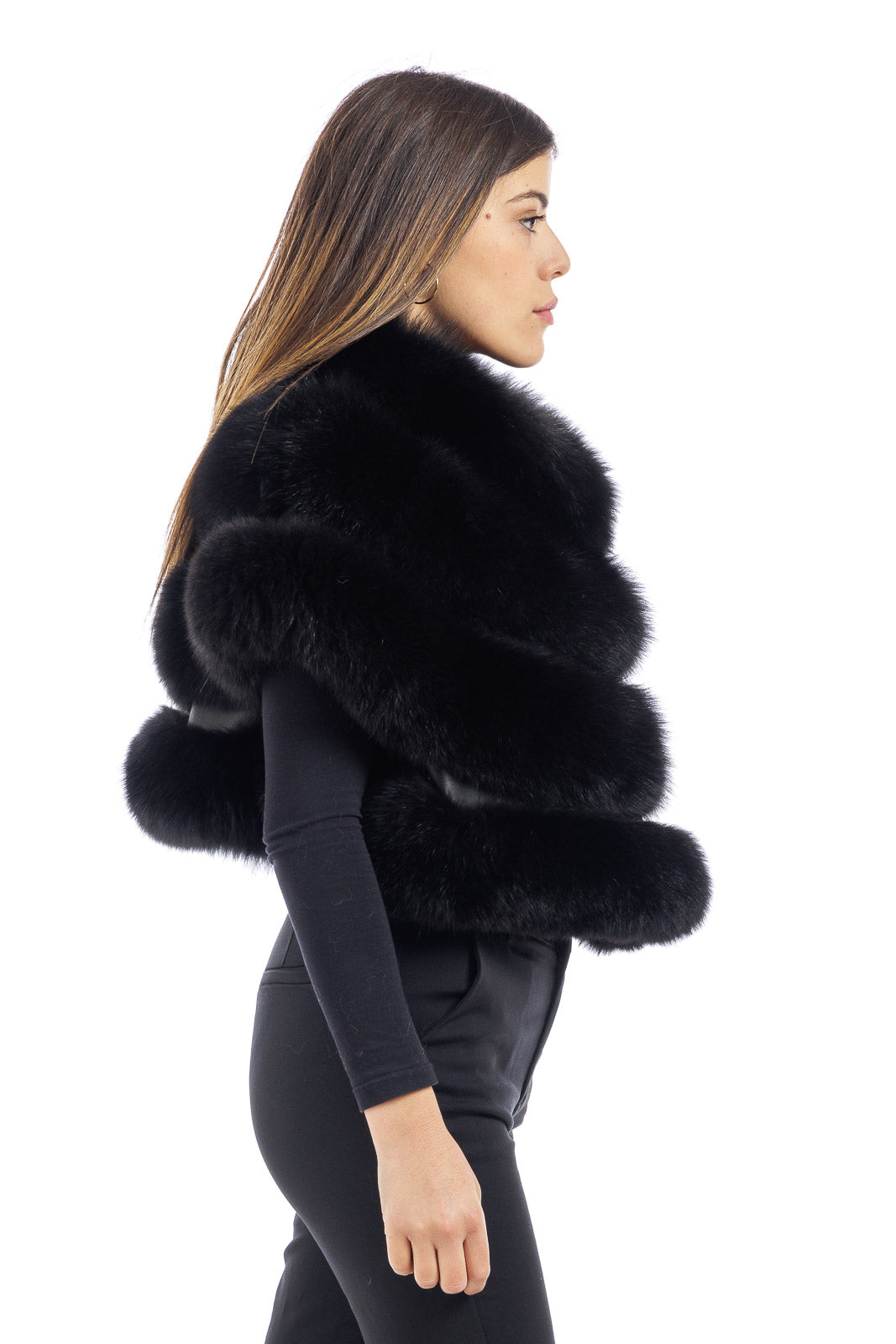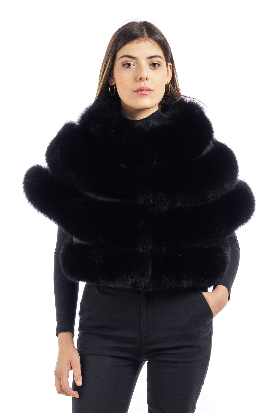 Mantella in pelliccia di Visone sapphire con cappuccio bordato in volpe