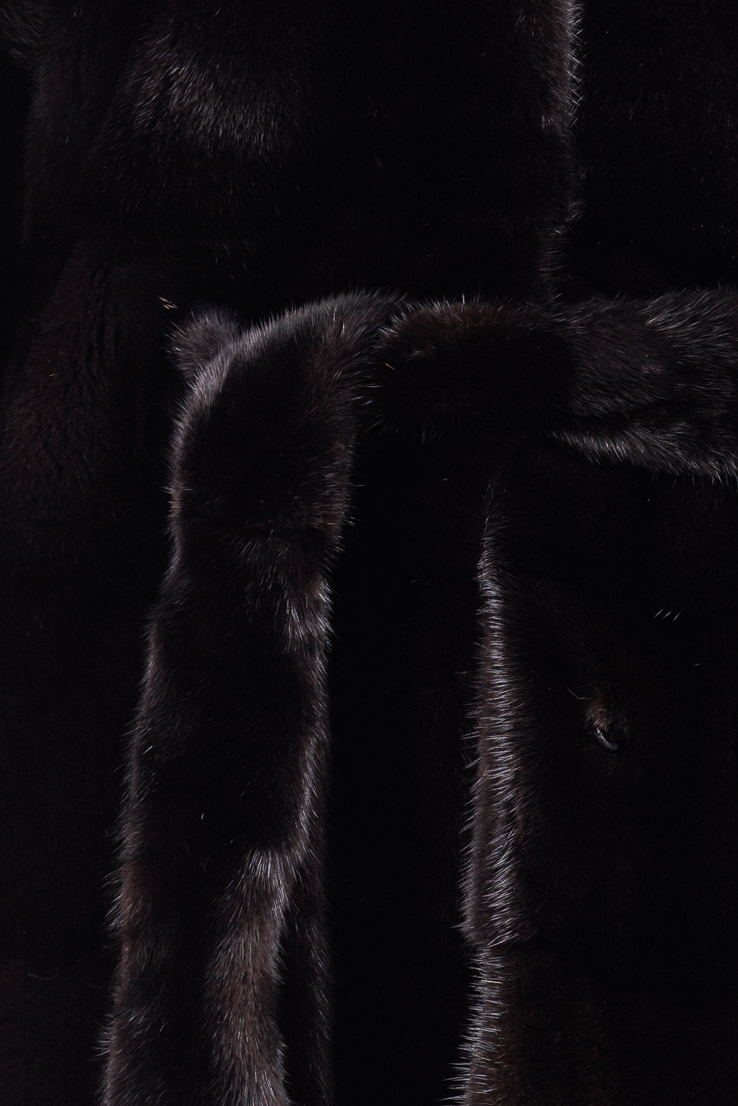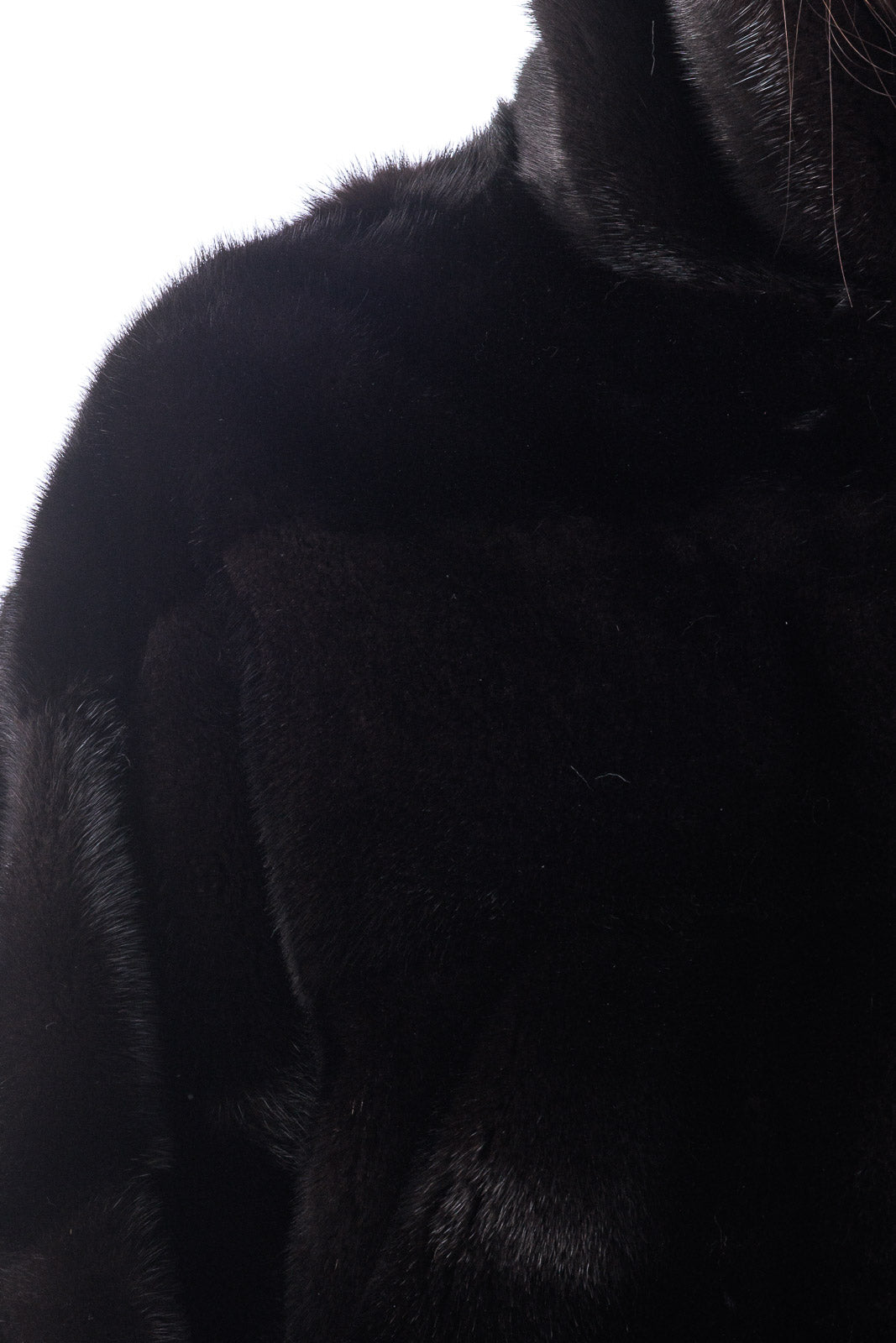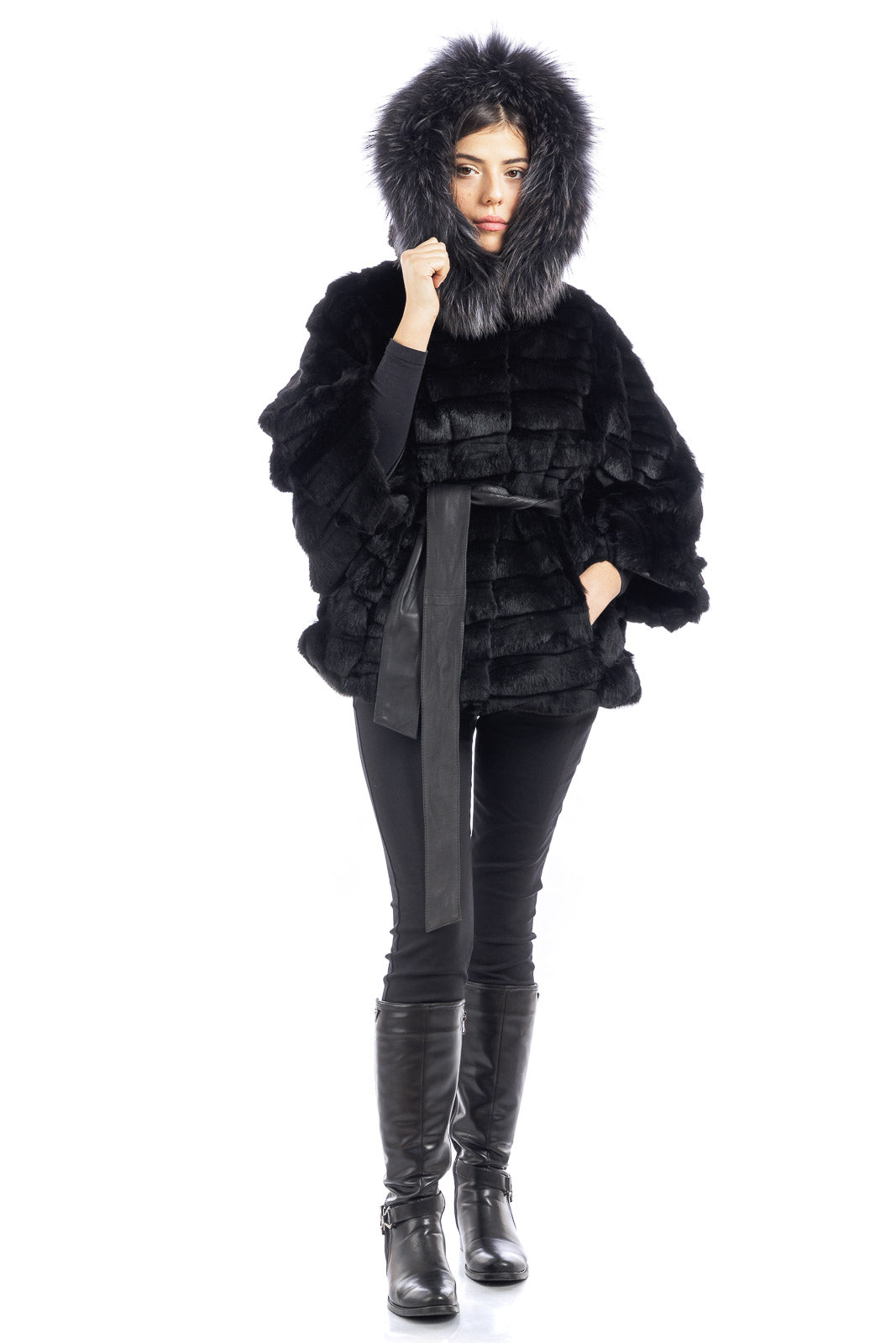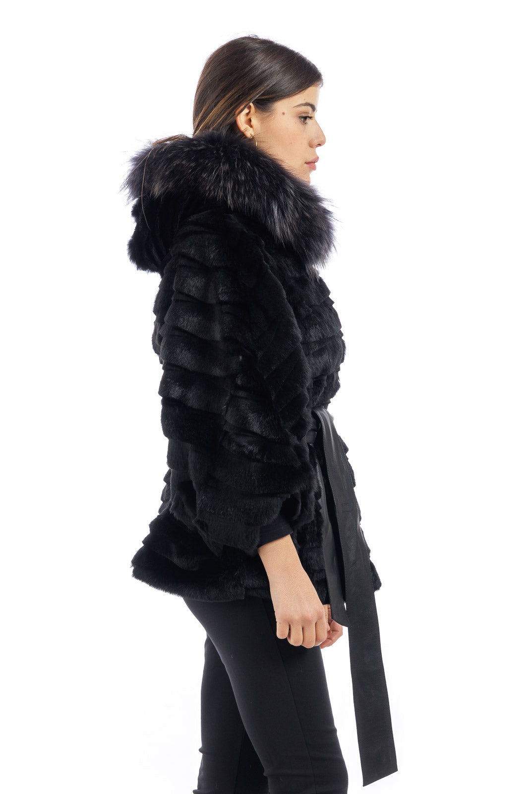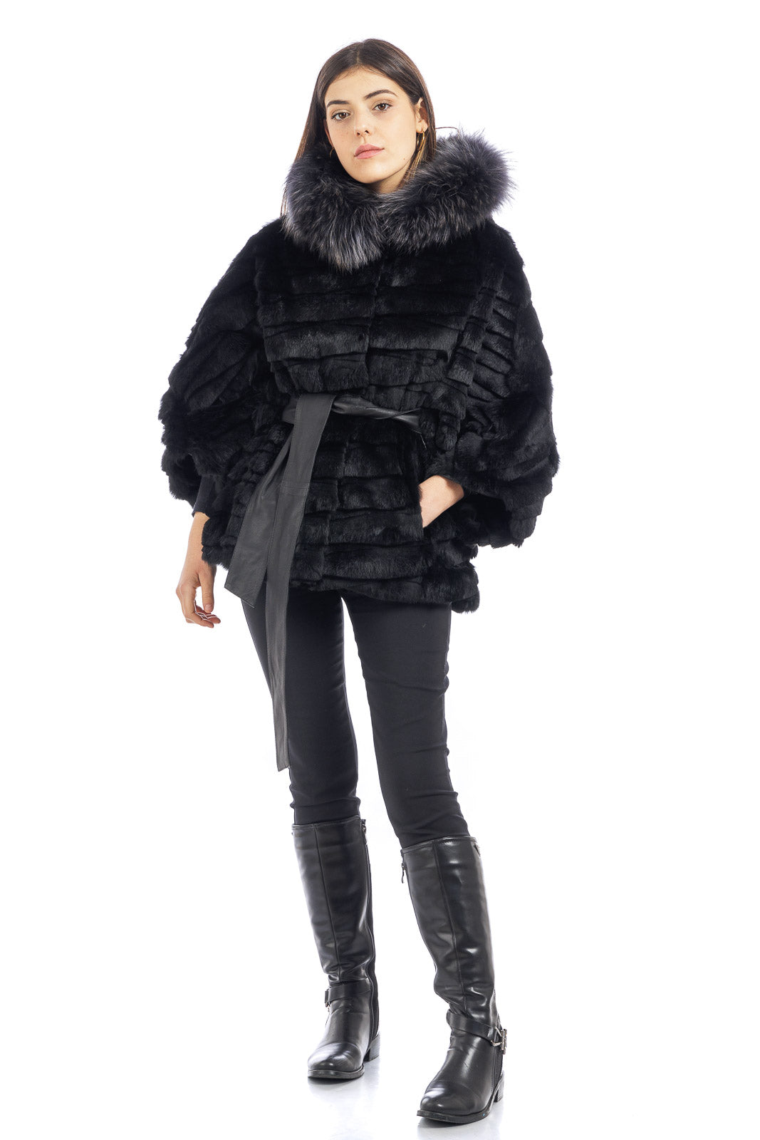 Mantella in pelliccia di Visone blackglama con cappuccio e cintura in visone