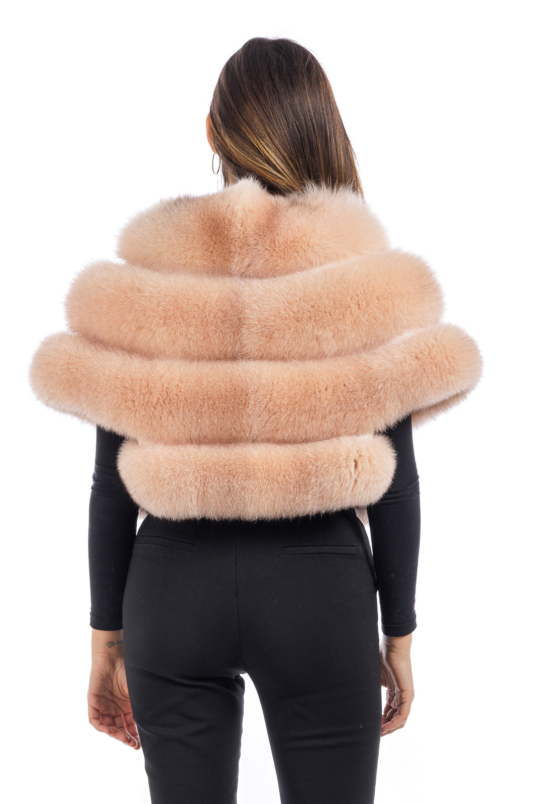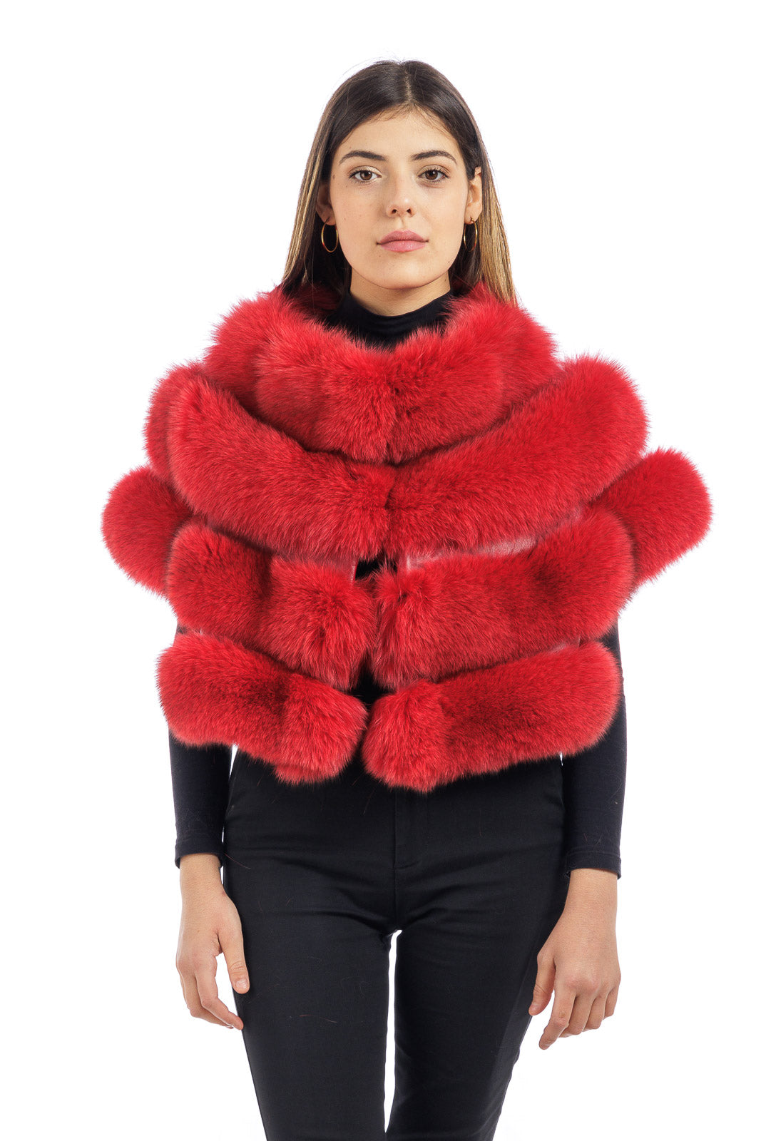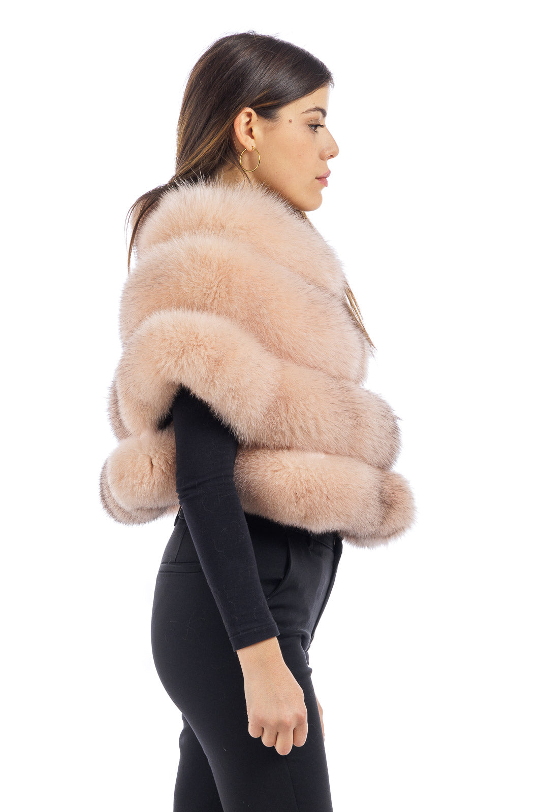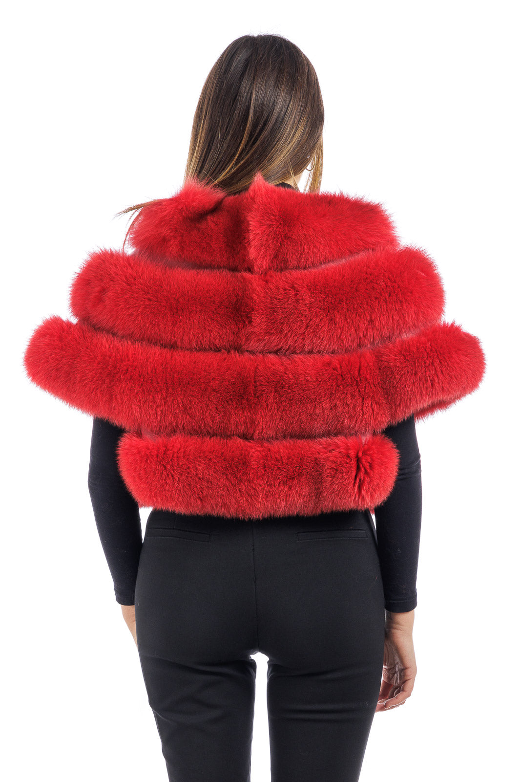 Mantella in pelliccia di Visone perla con cappuccio bordato in volpe rossa