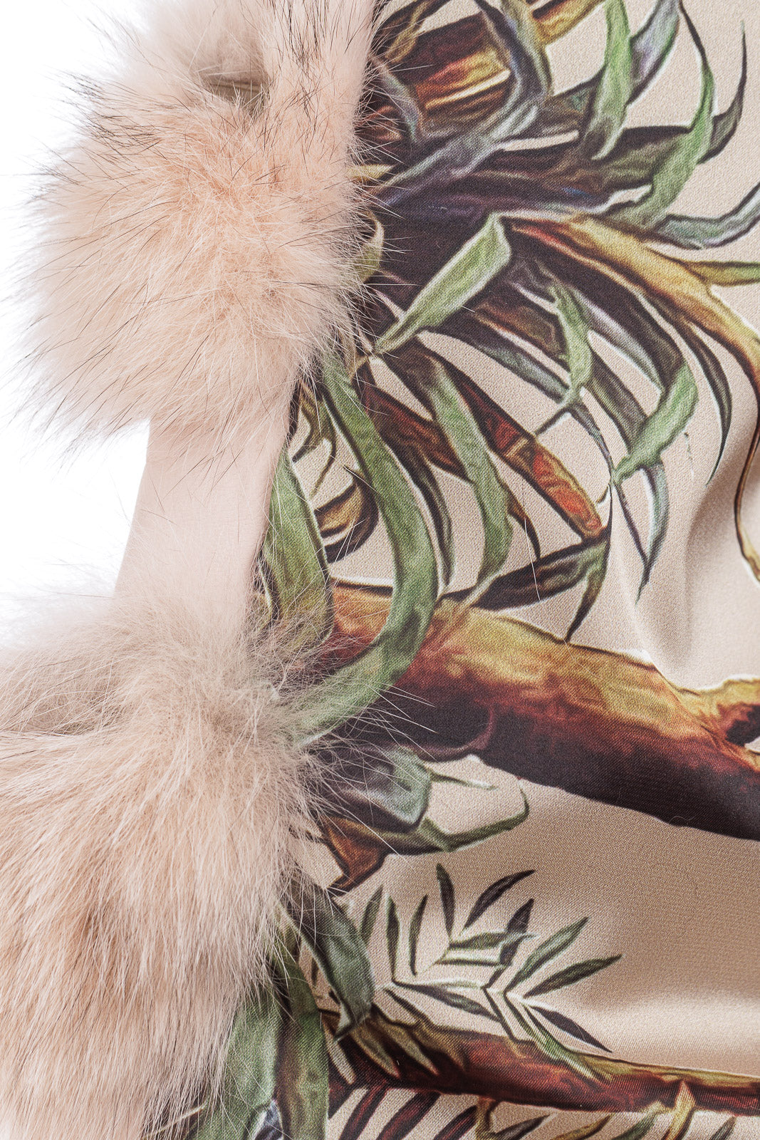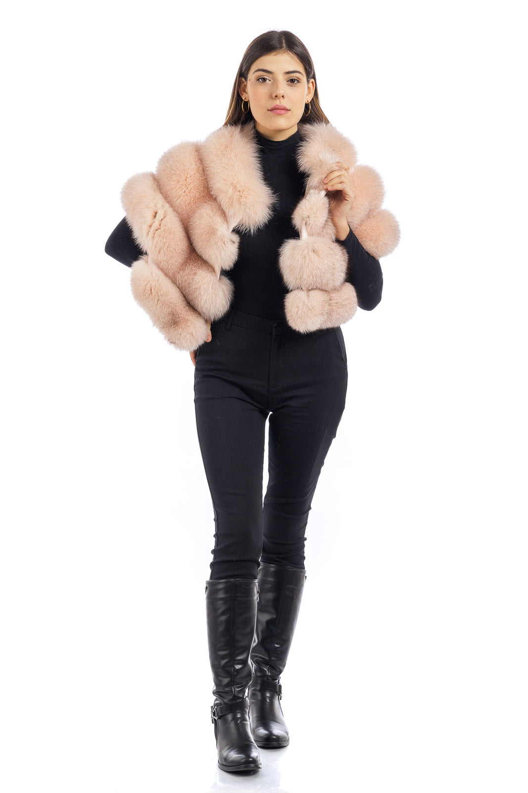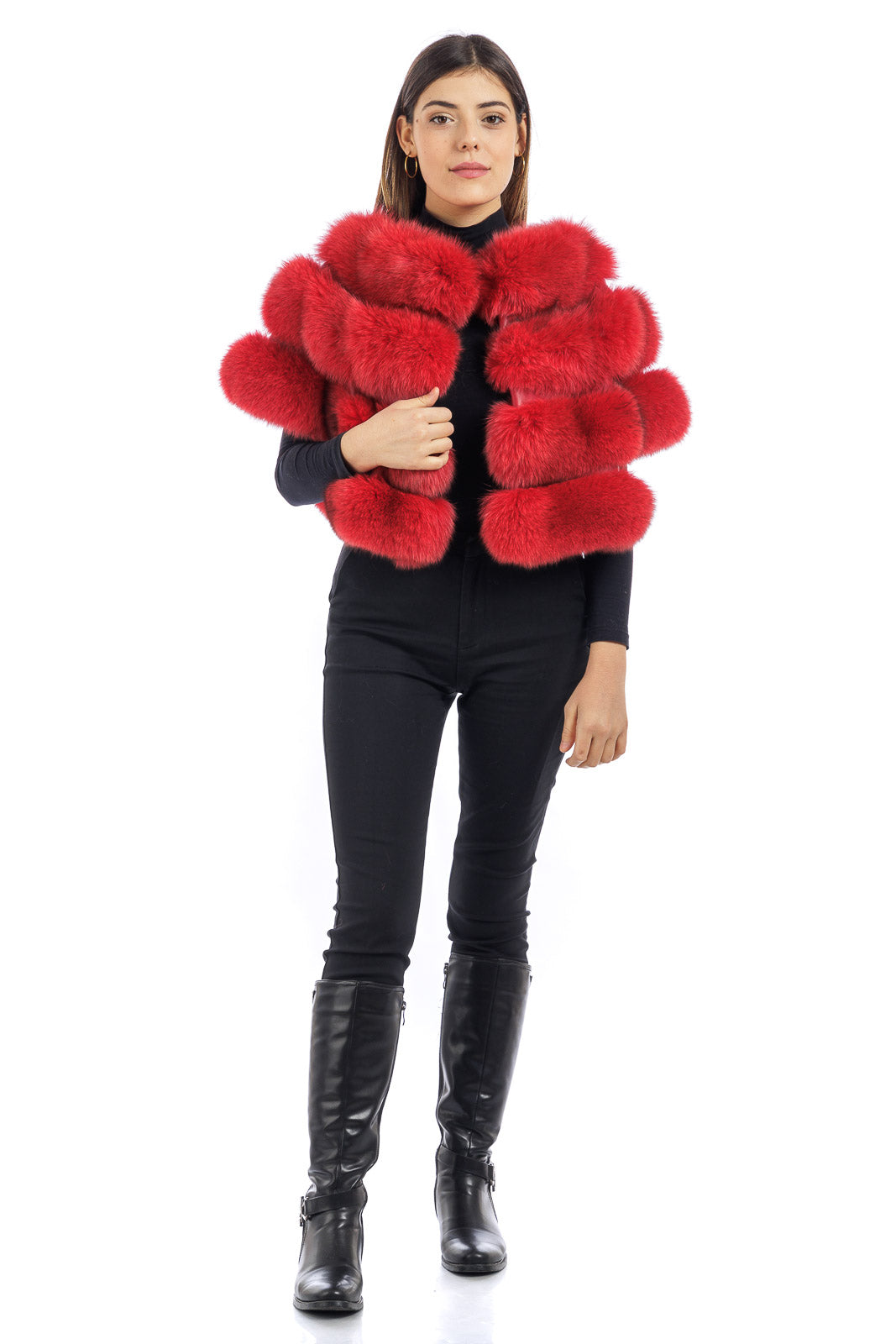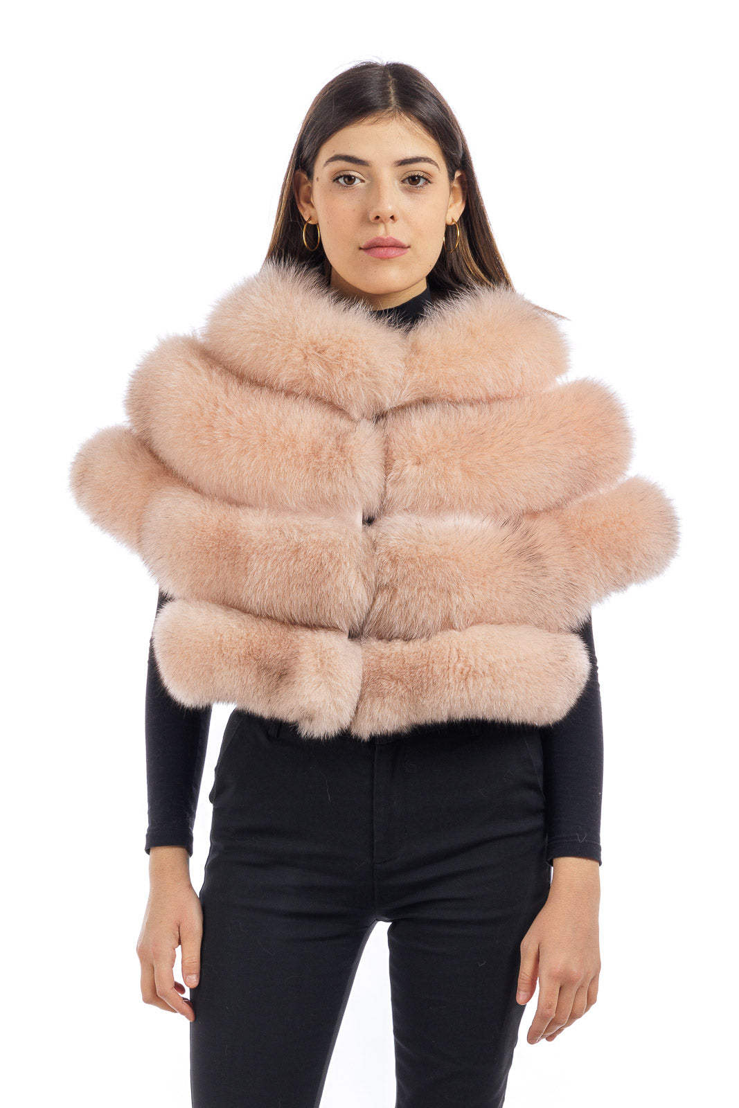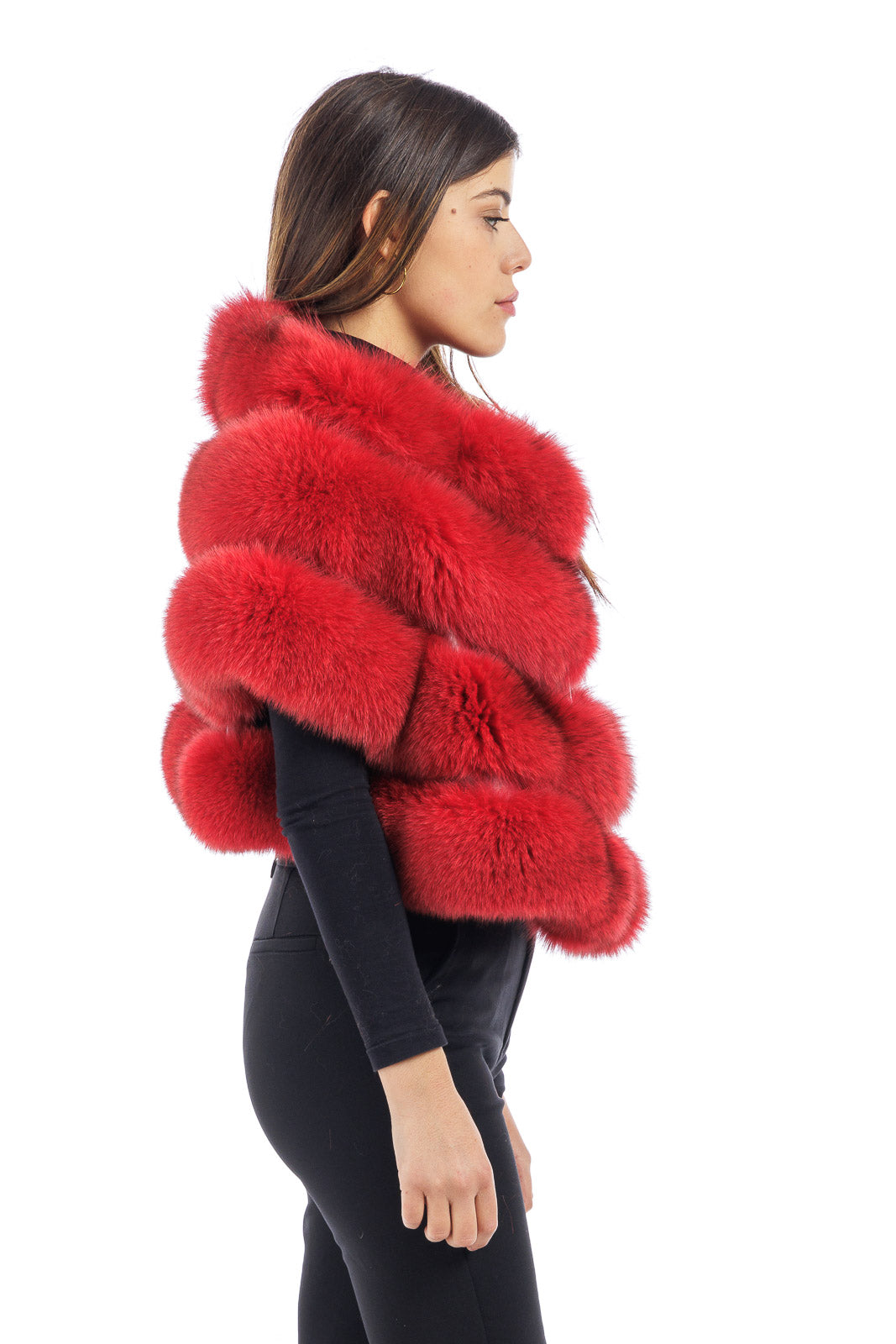 Mantella in pelliccia di Visone perla con cappuccio bordato in volpe rossa