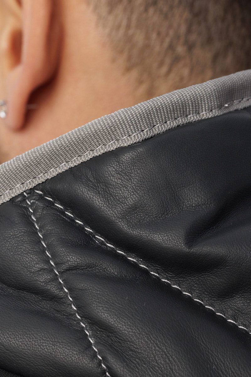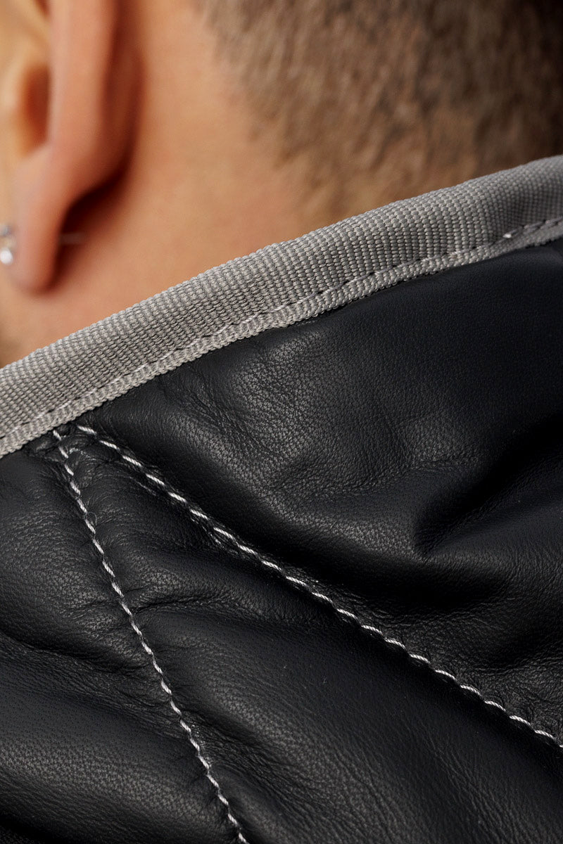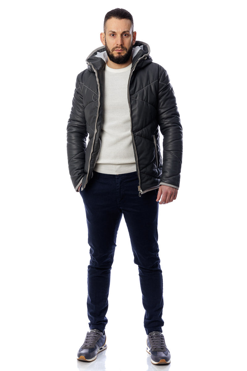 Montone merinos uomo con zip e cintura bordato in pelliccia di volpe