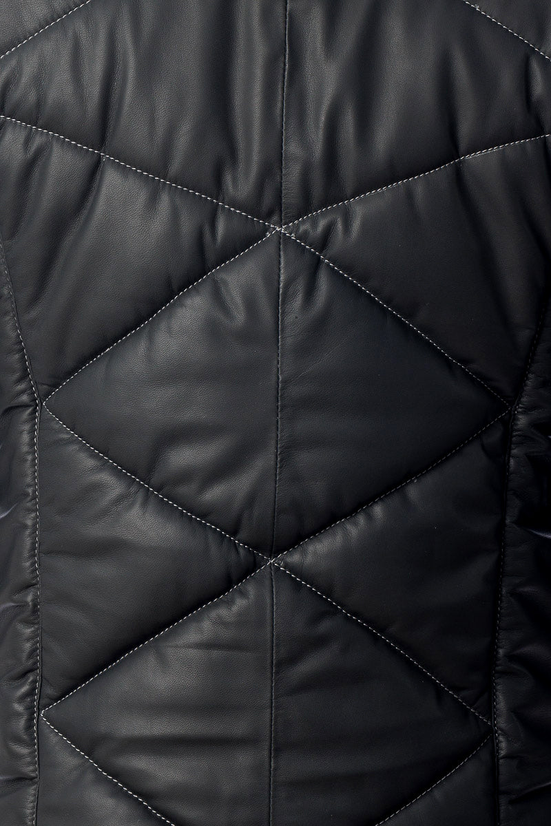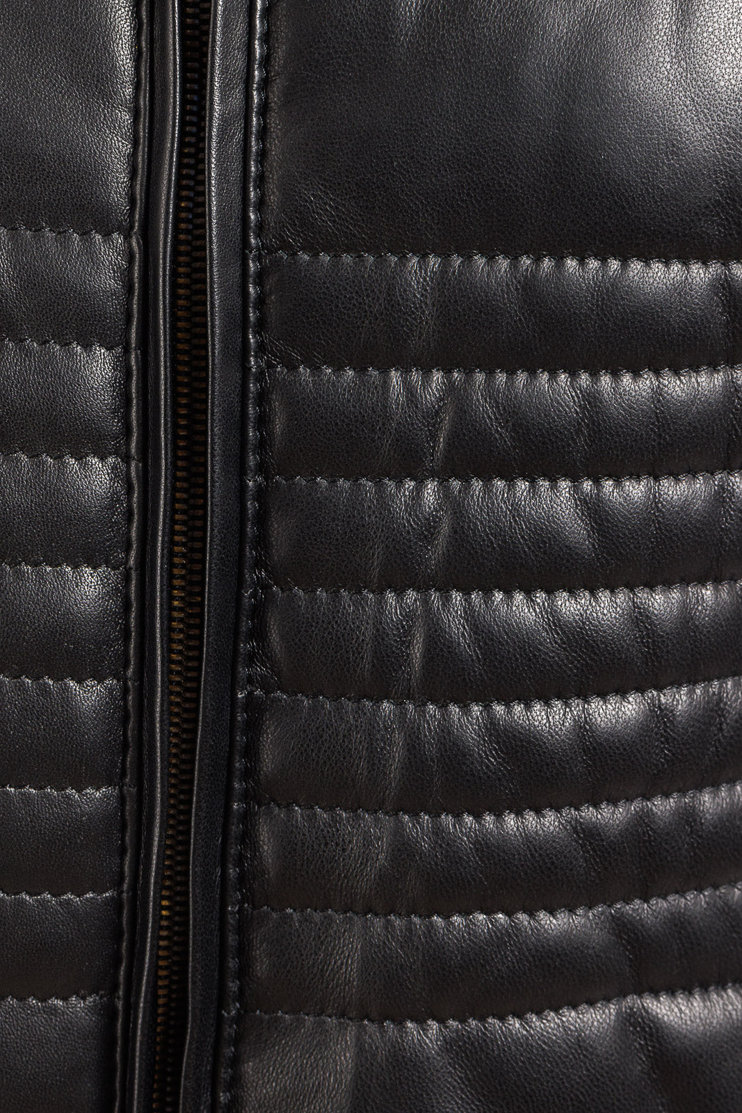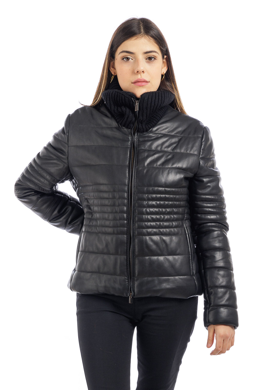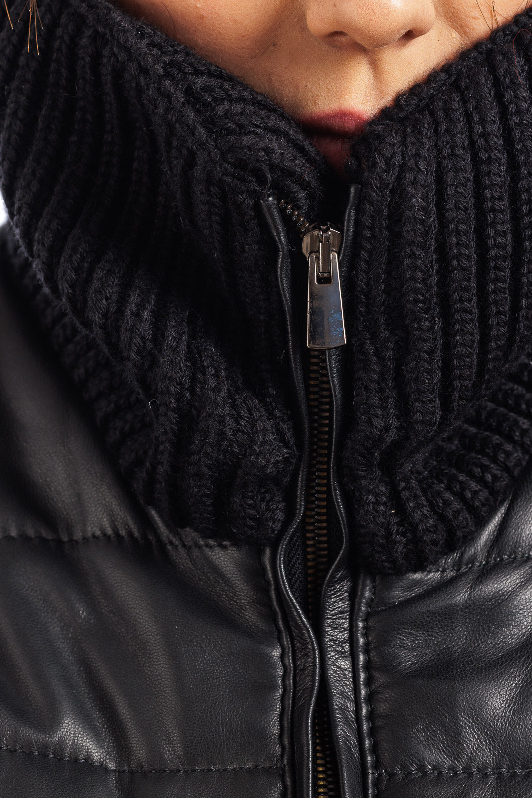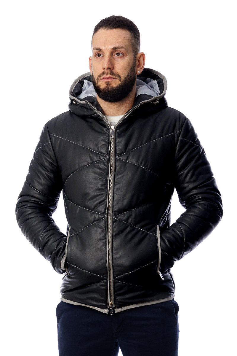 Piumino miele in pelle con cappuccio bordato in murmasky