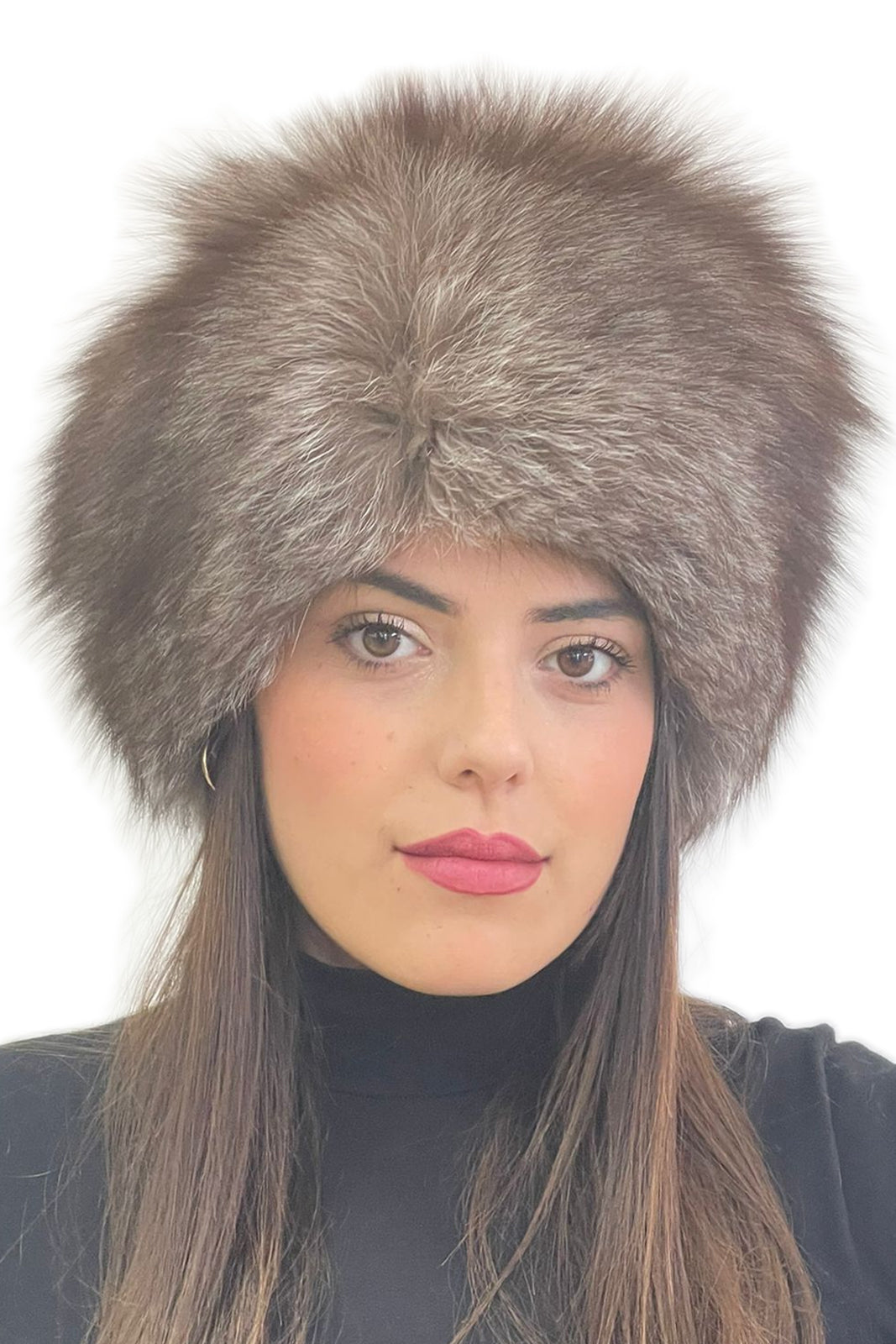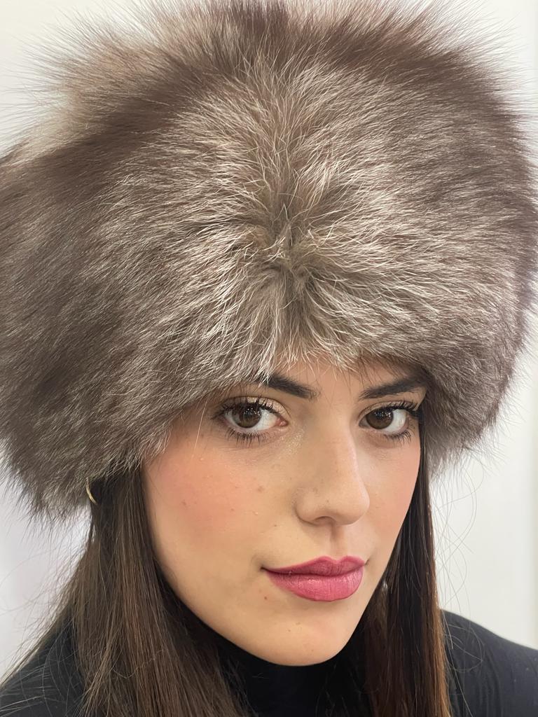 Colbacco in pelliccia di volpe argentata colore marrone