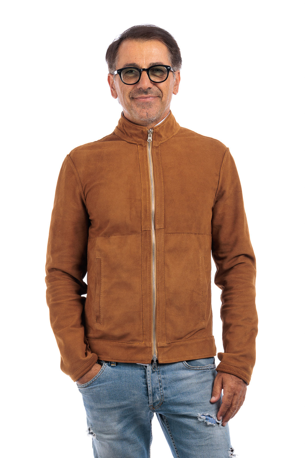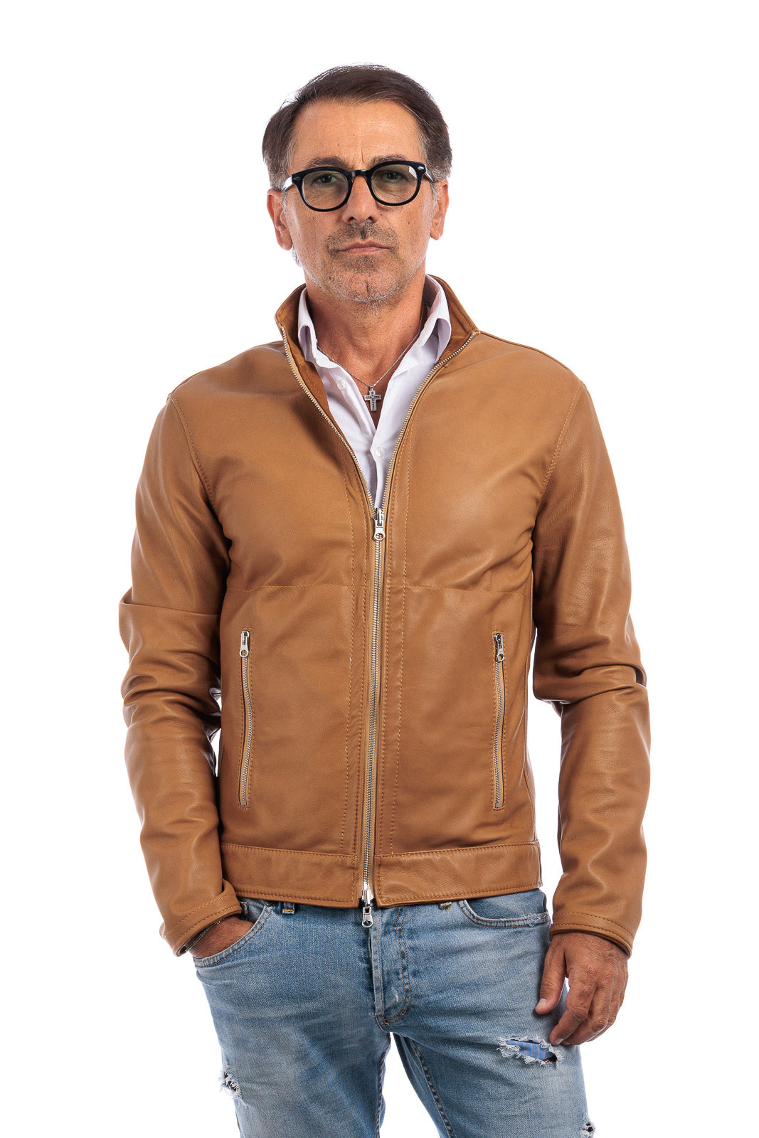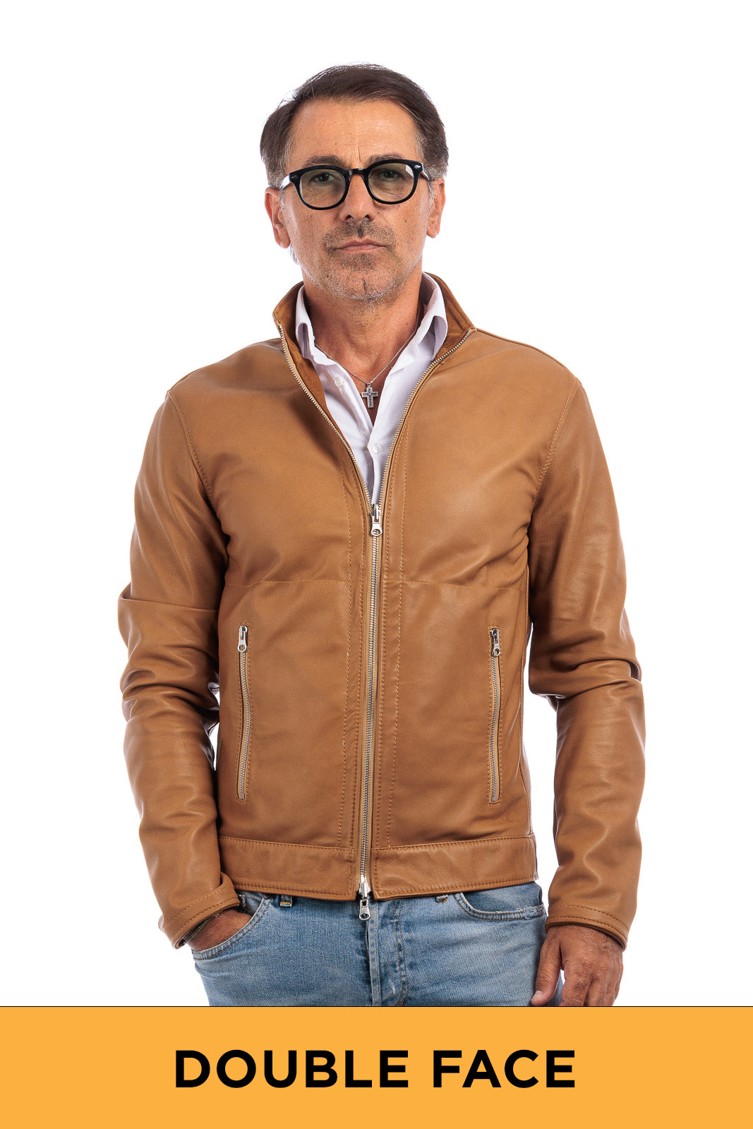 Giacca biker double face in pelle e camoscio uomo biscotto