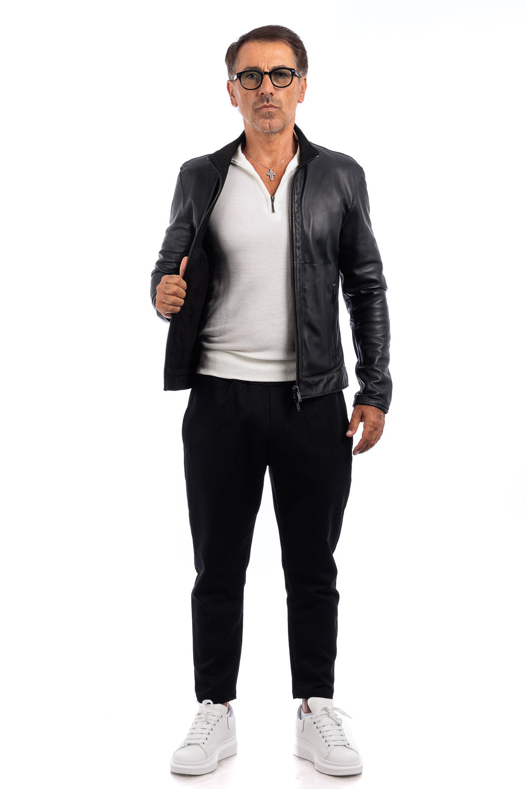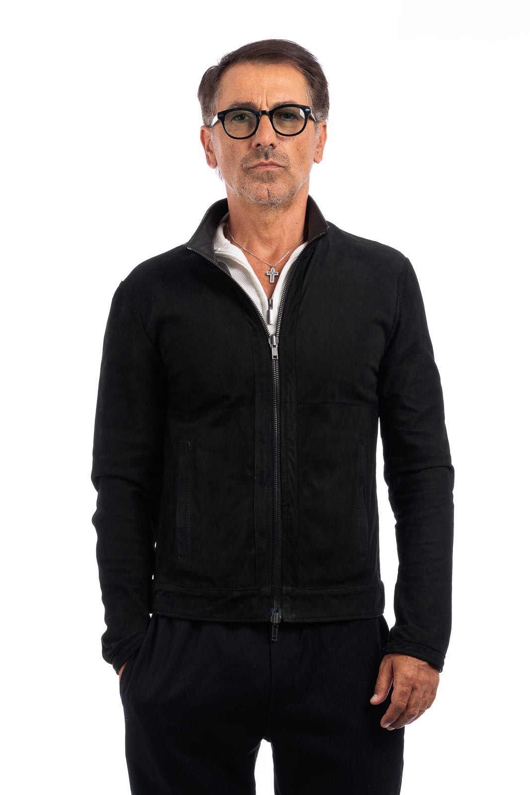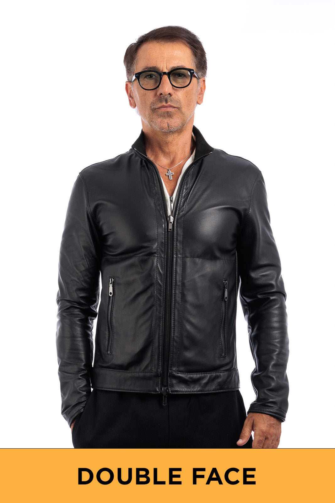 Giacca biker double face in pelle e camoscio uomo nero