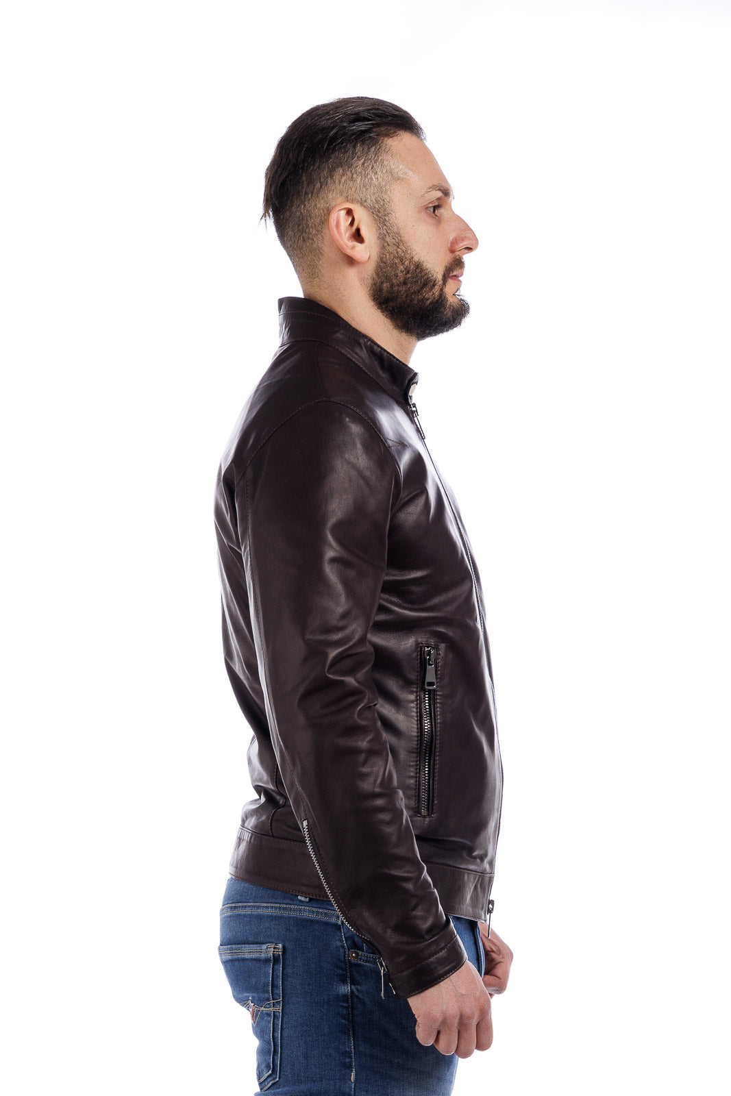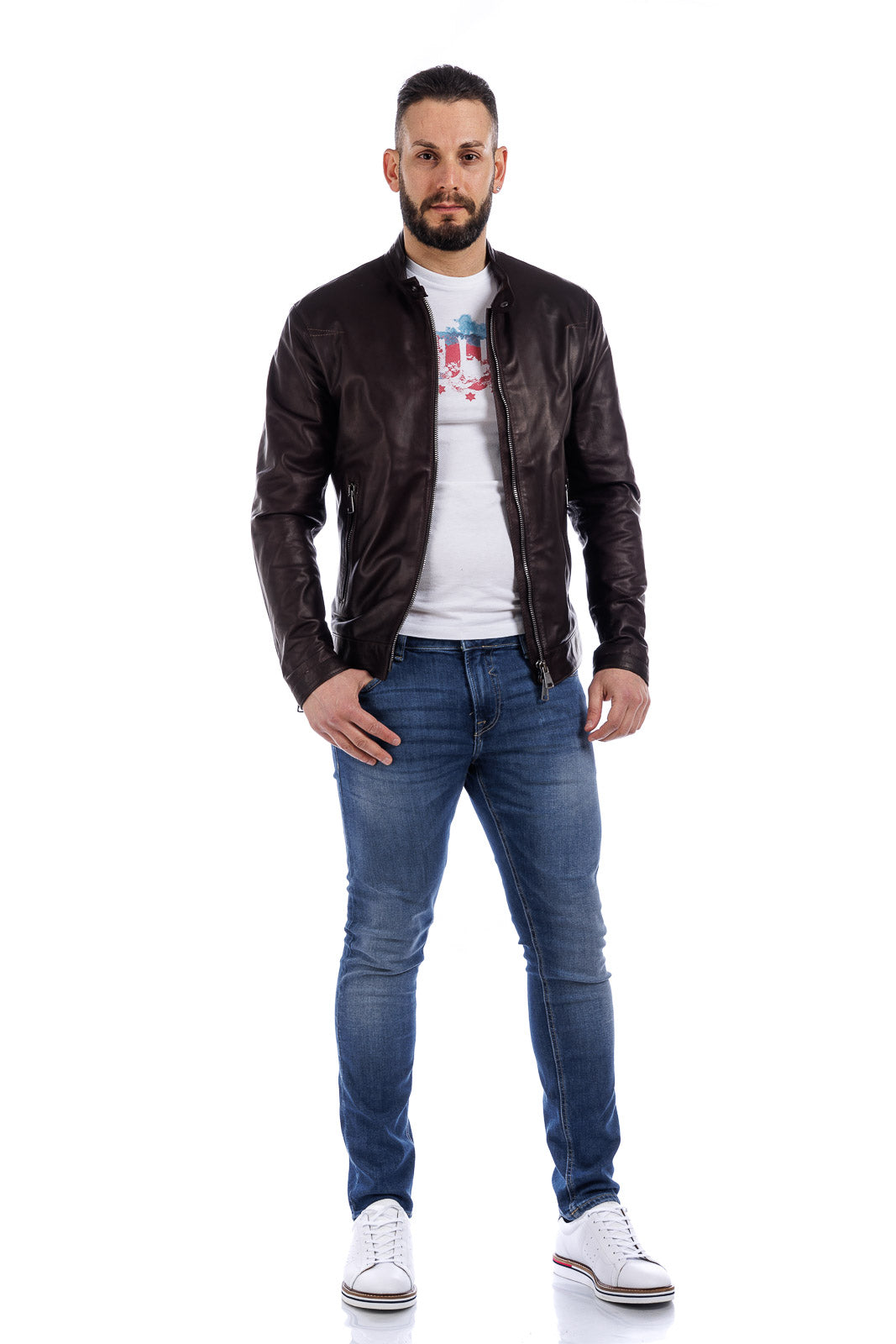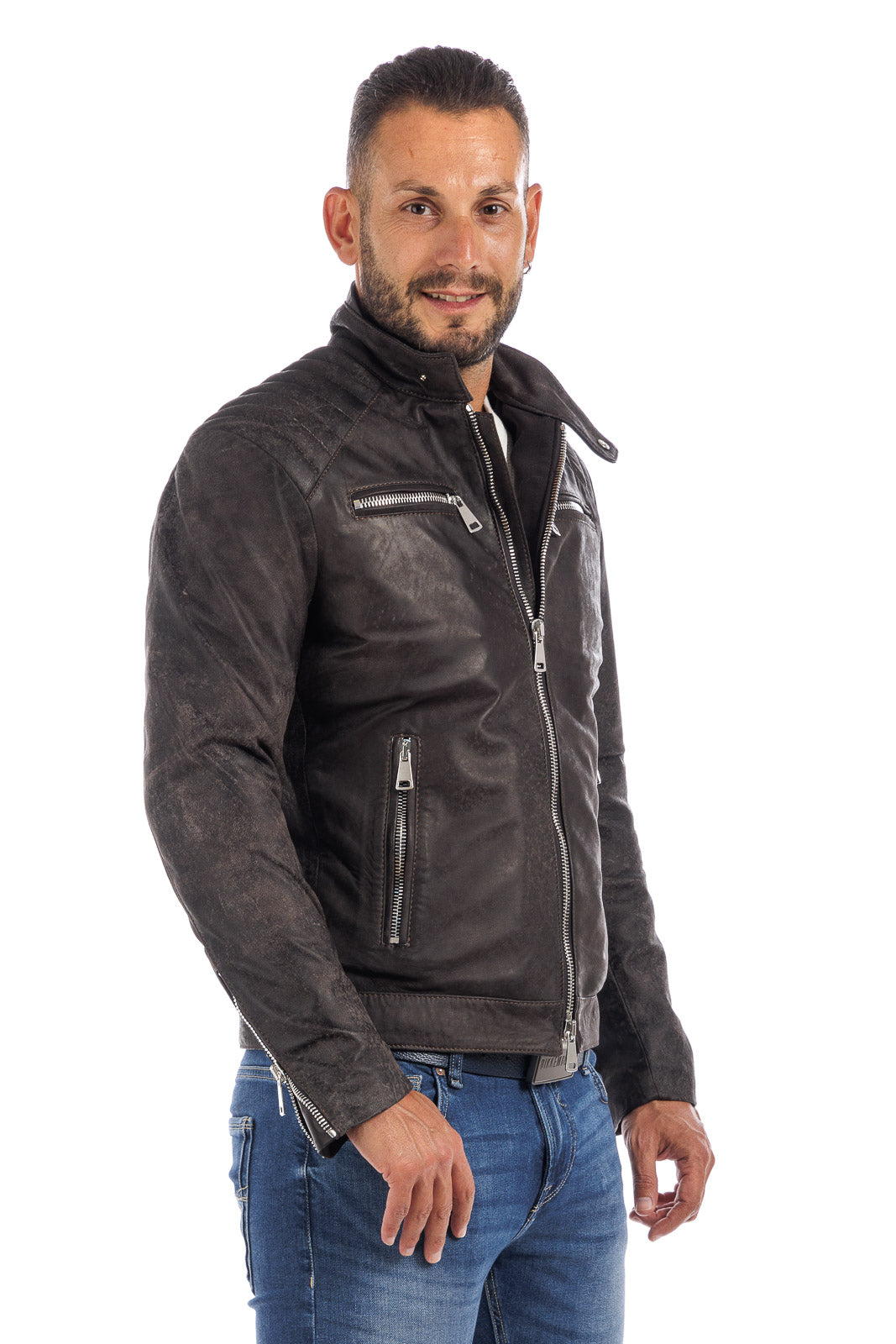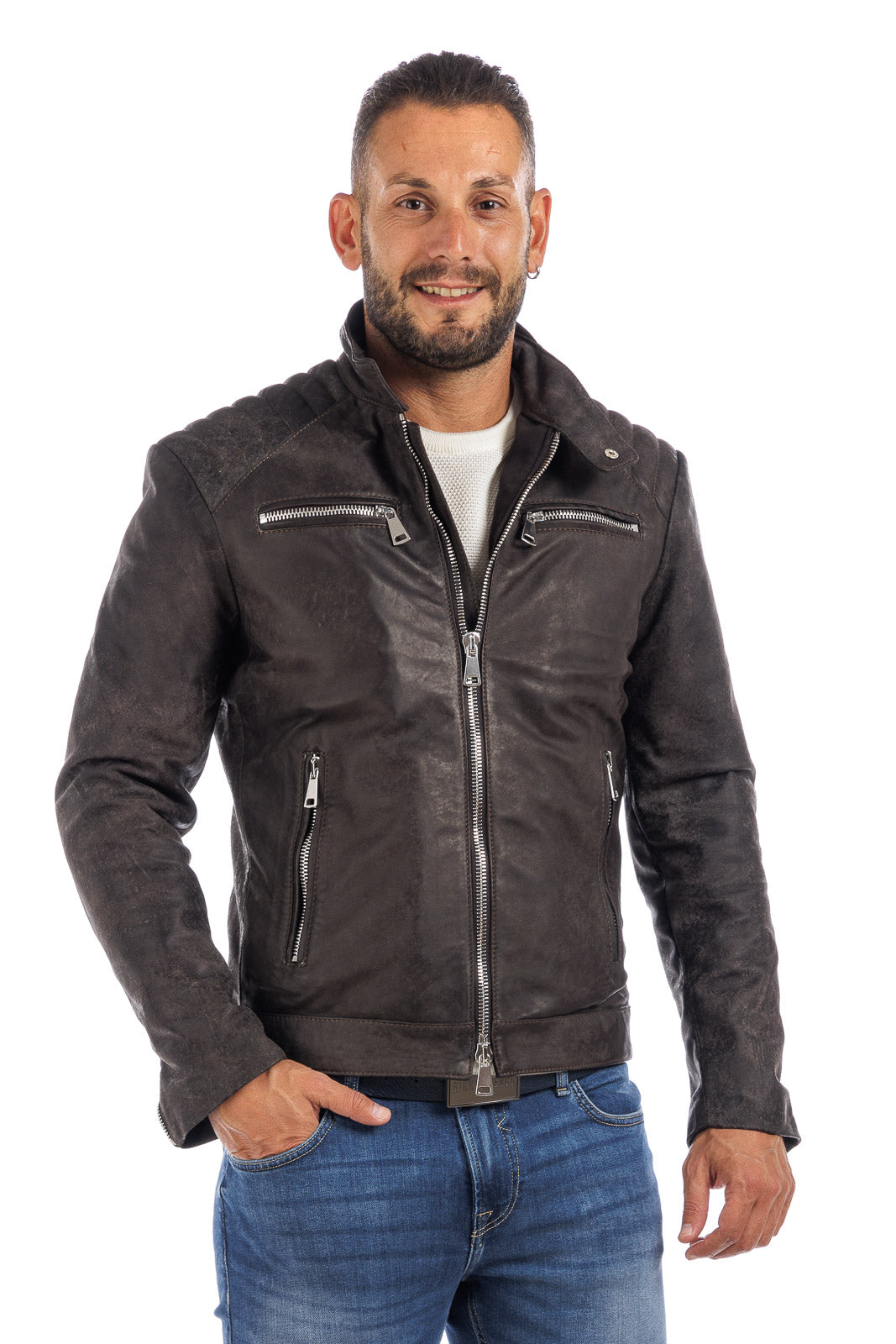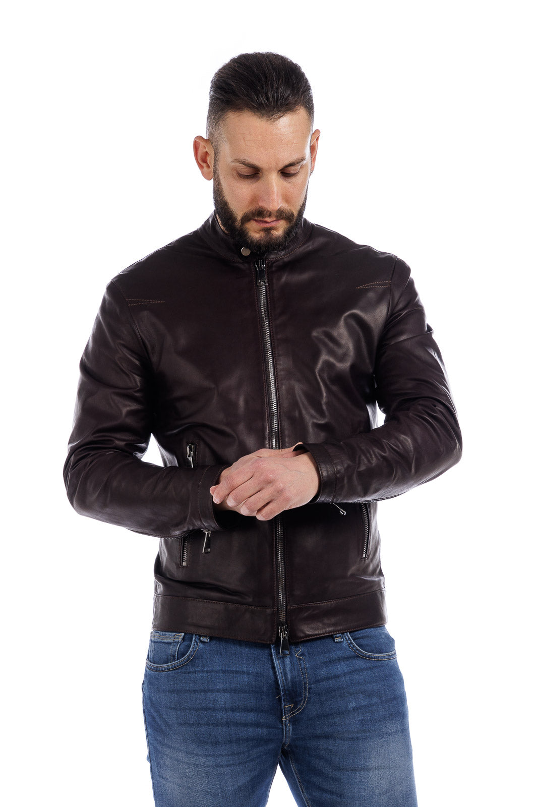 Giacca in vera pelle uomo con zip Reese testa di moro