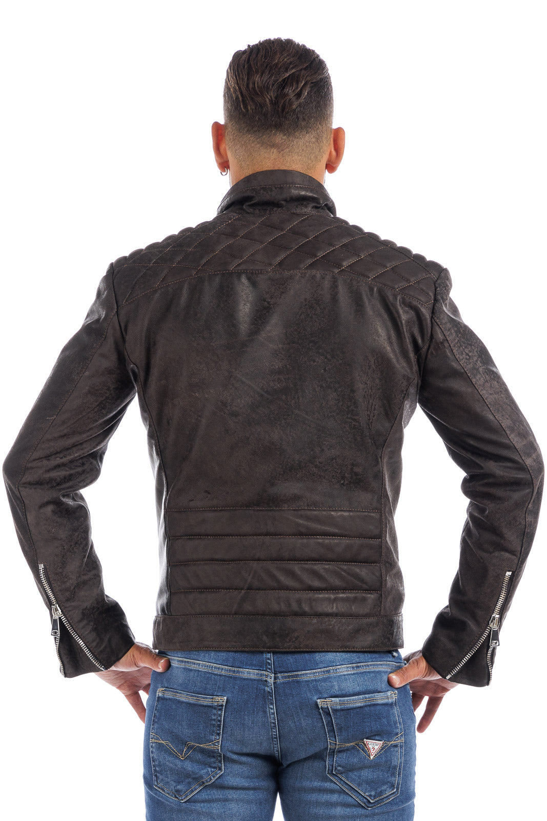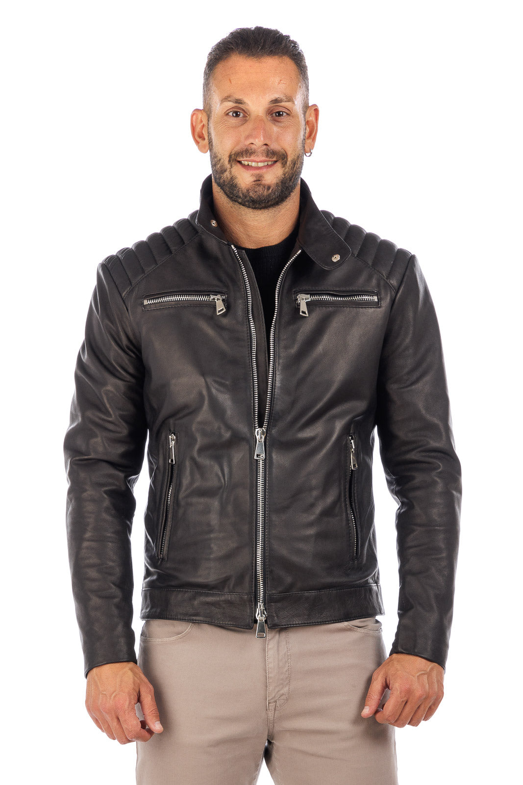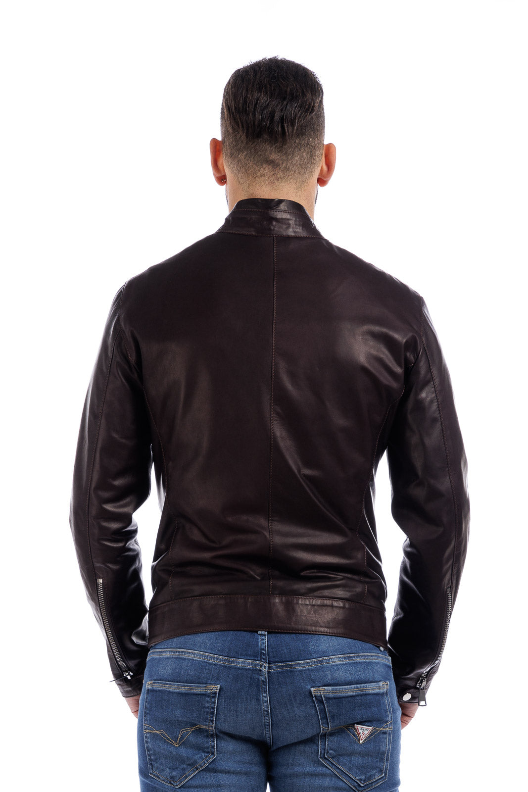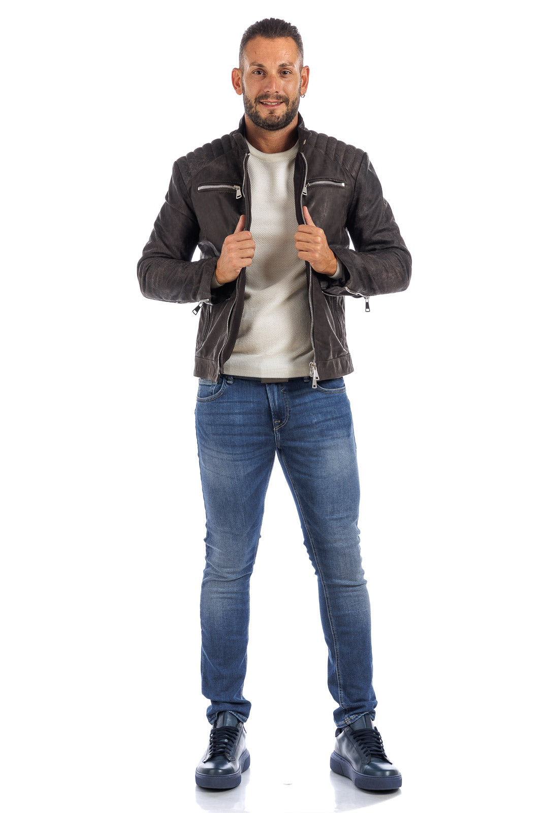 Giacca in vera pelle uomo con zip Reese testa di moro