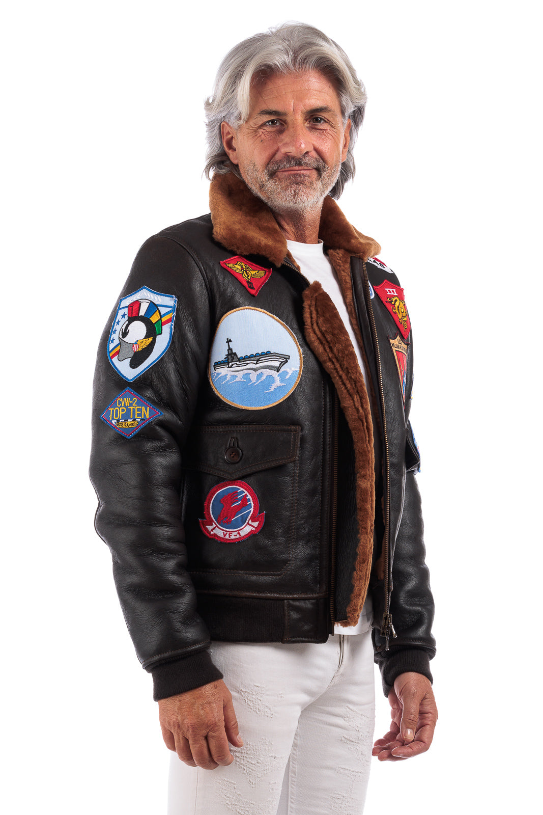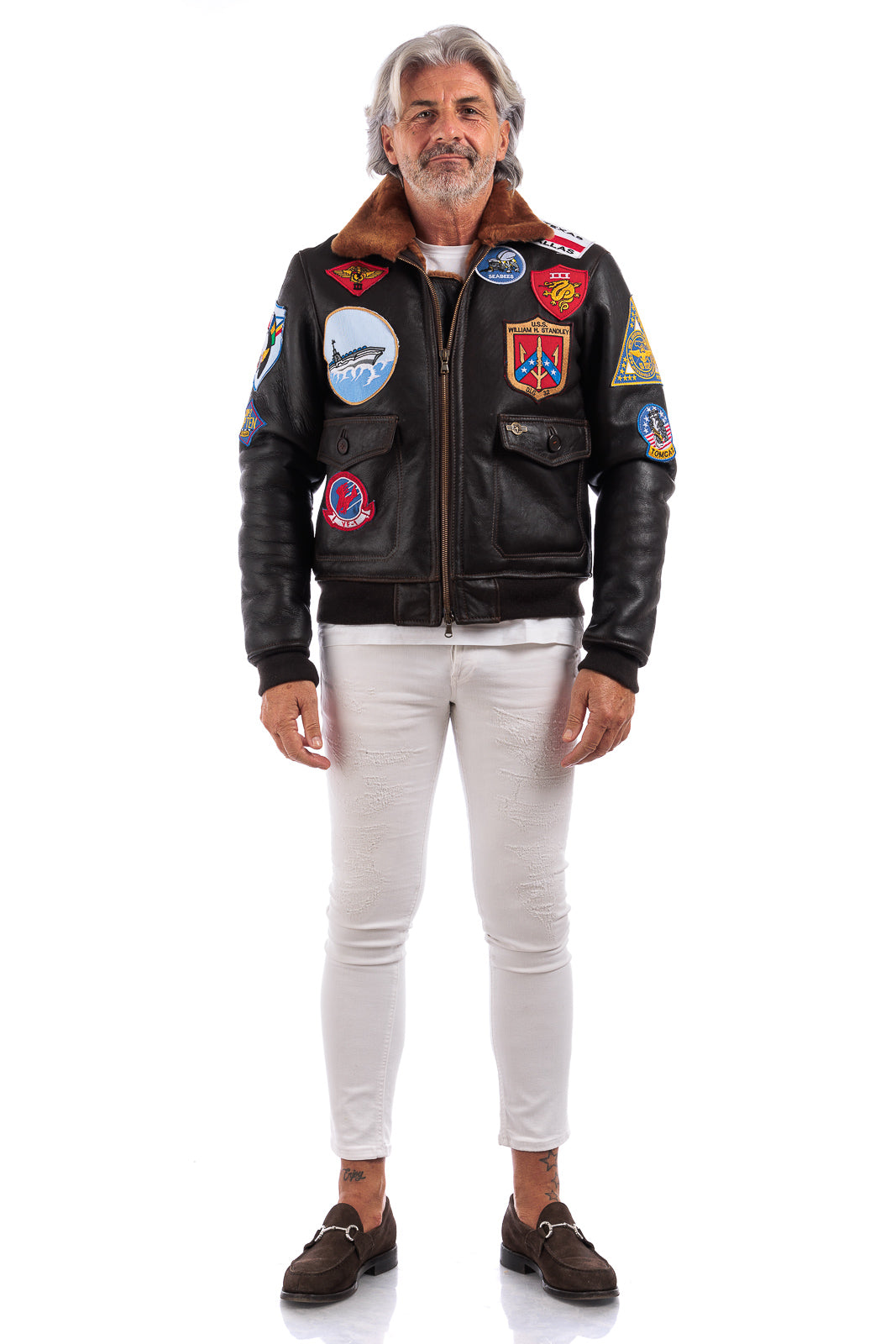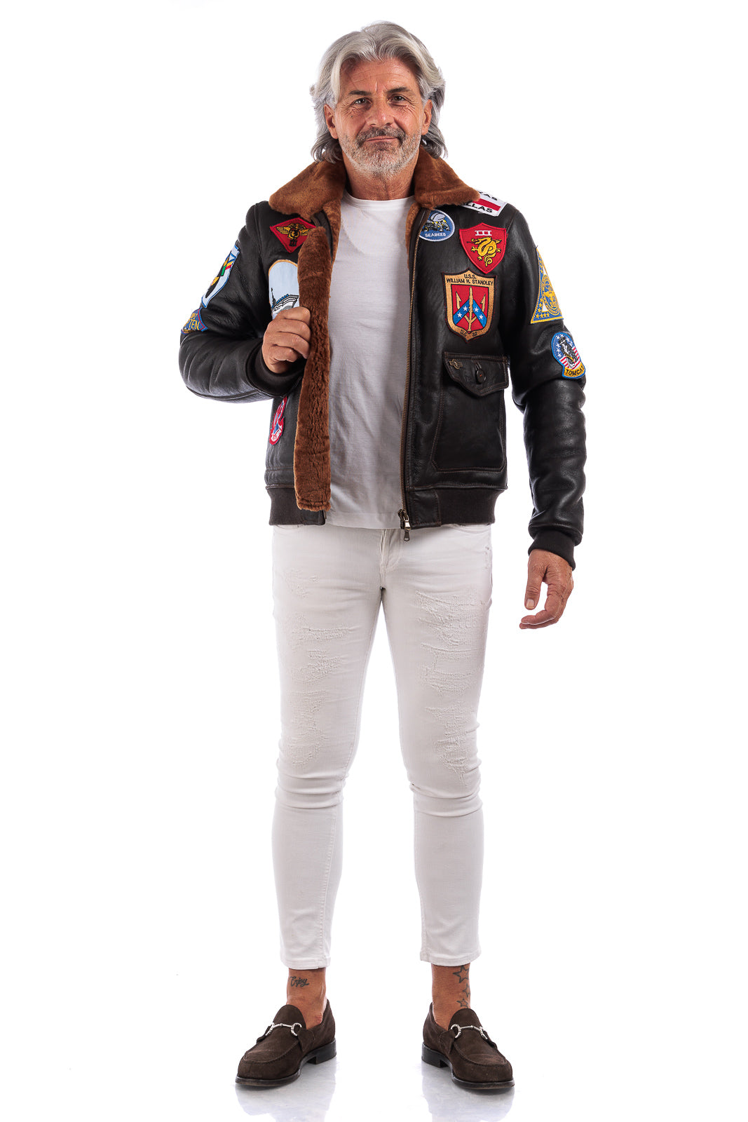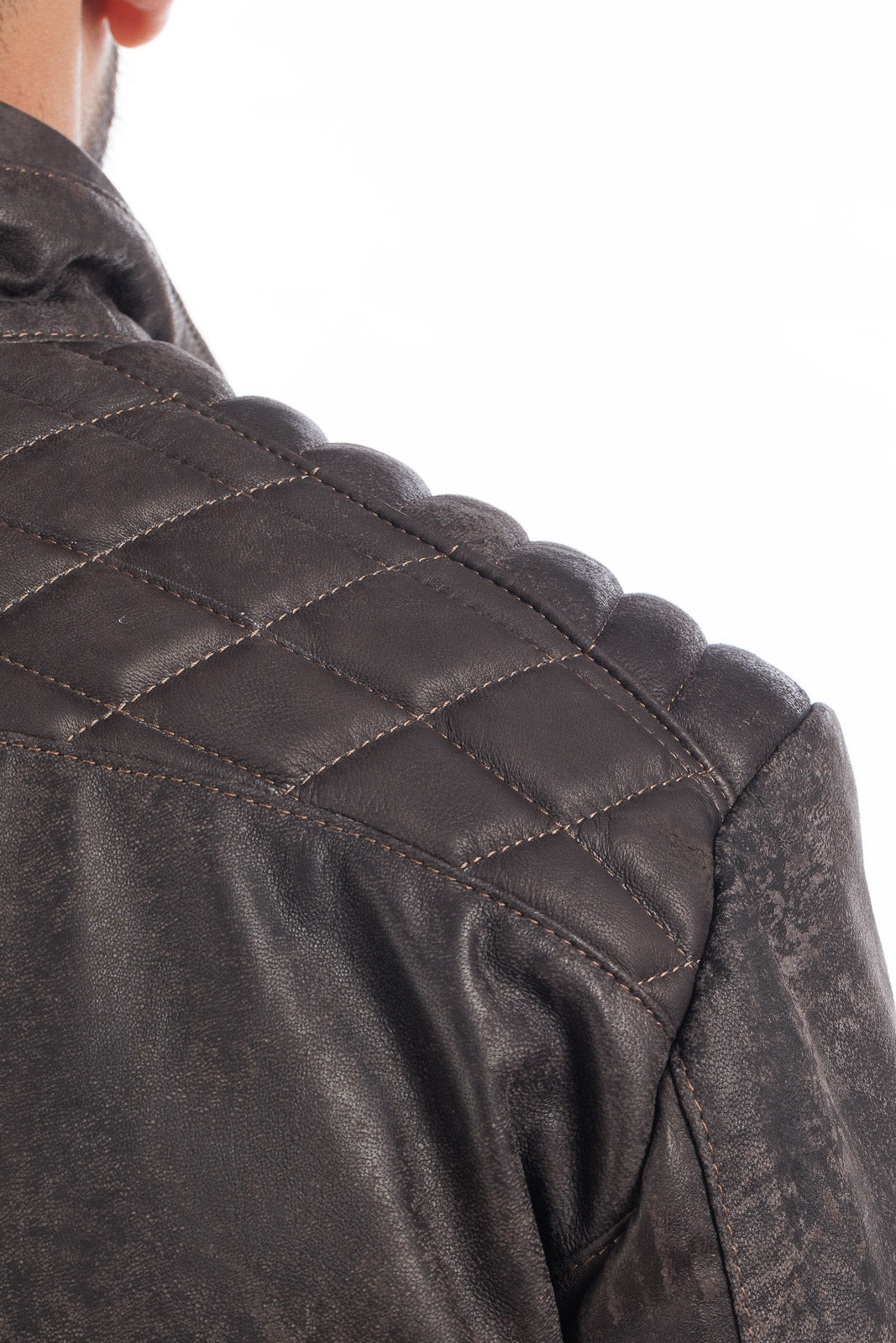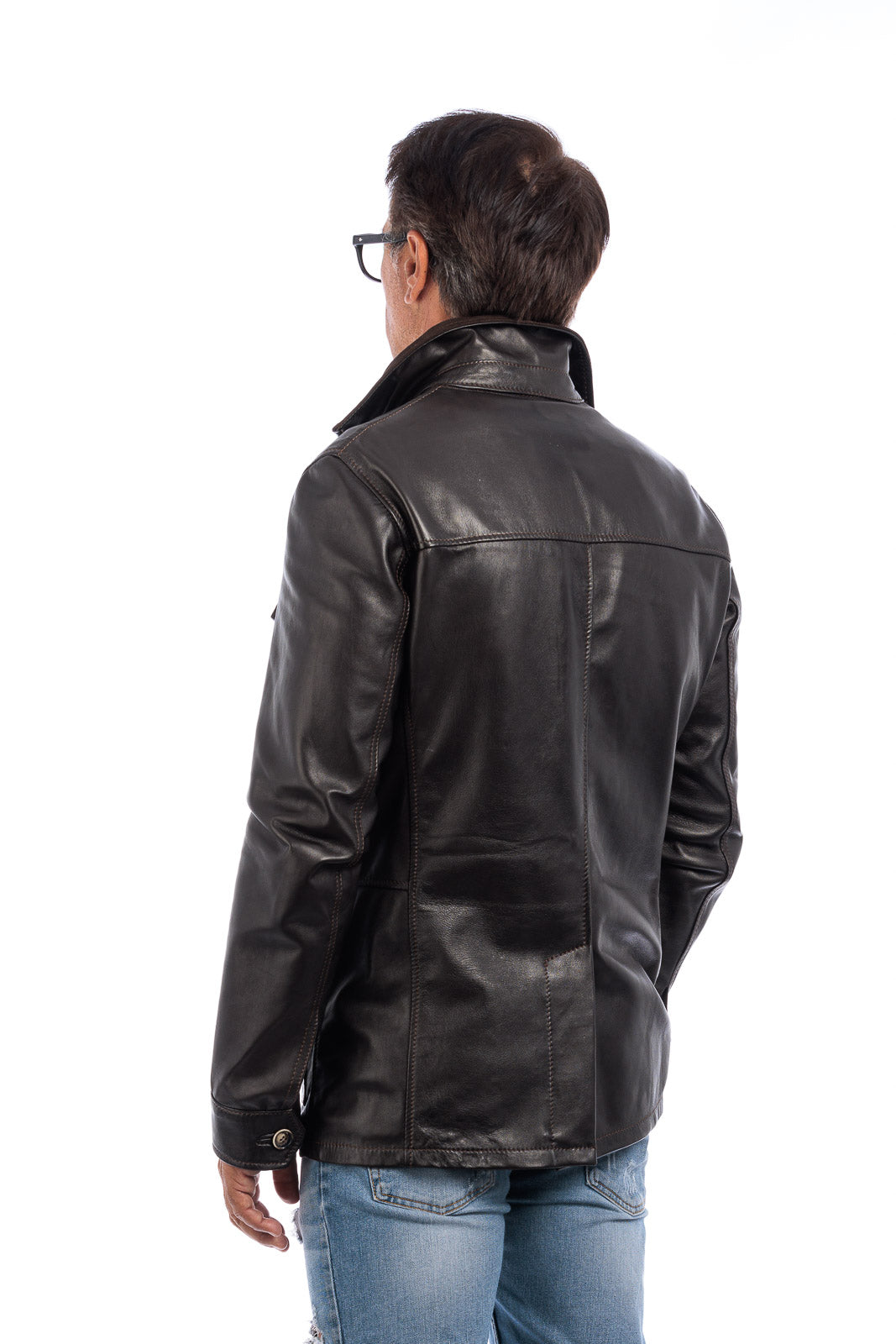 Giacca in vera pelle uomo con zip Reese testa di moro