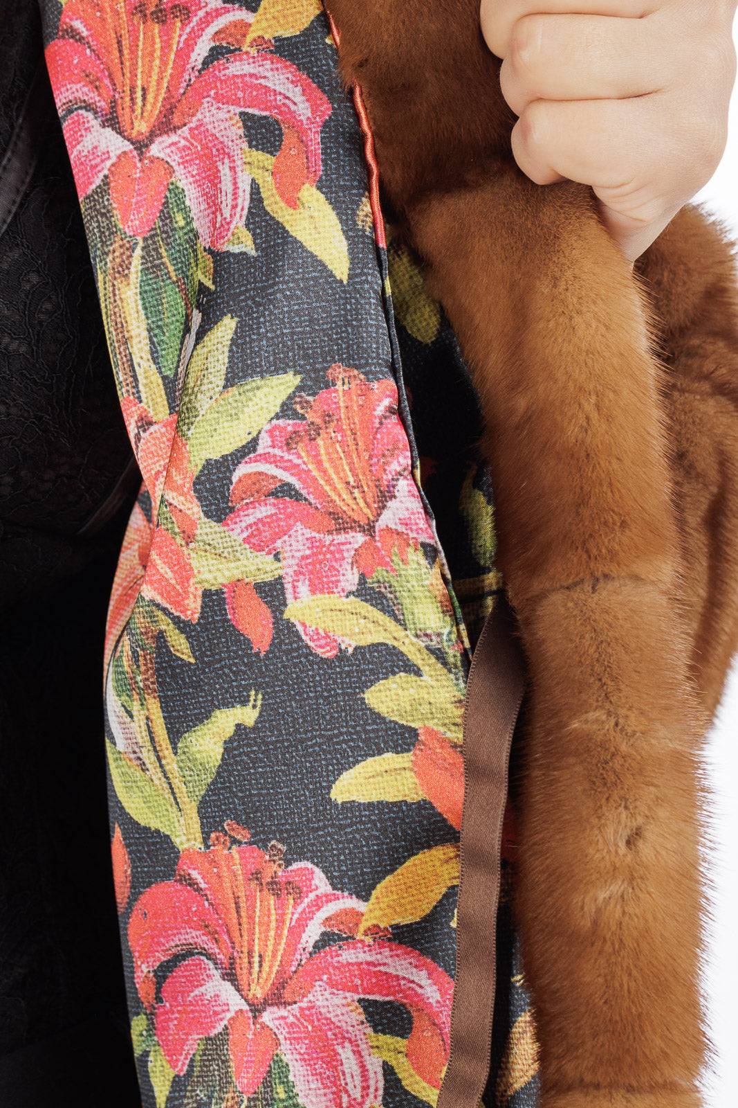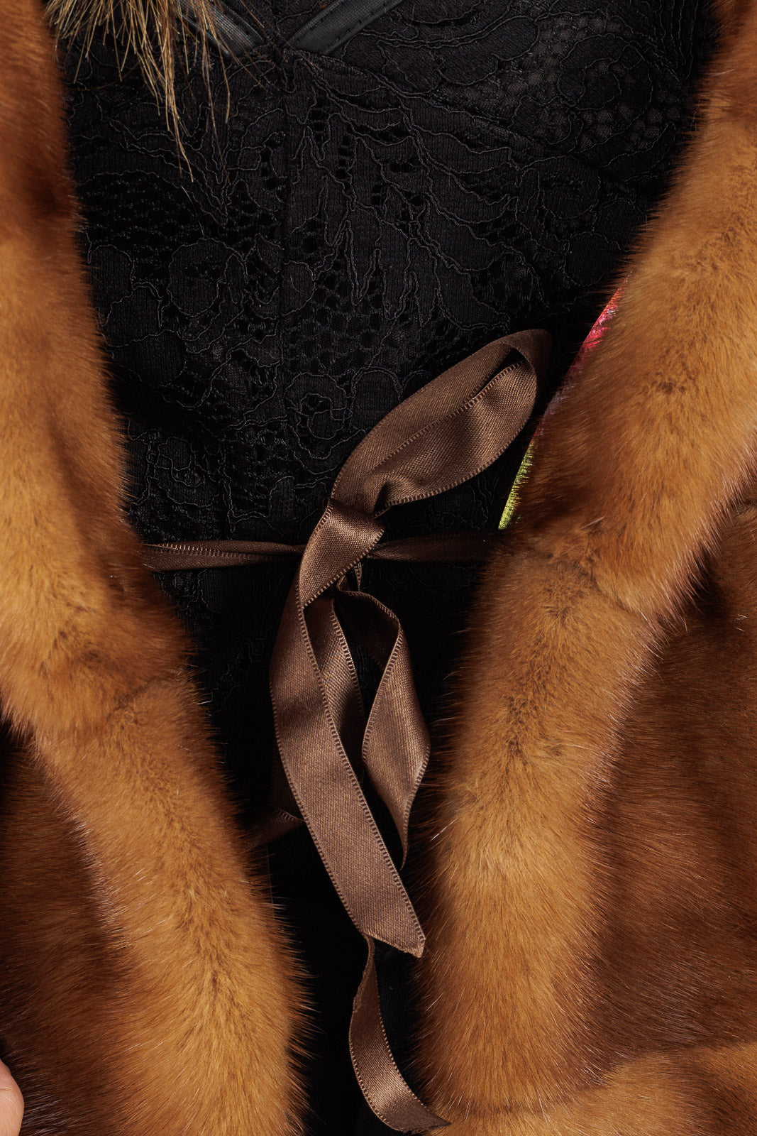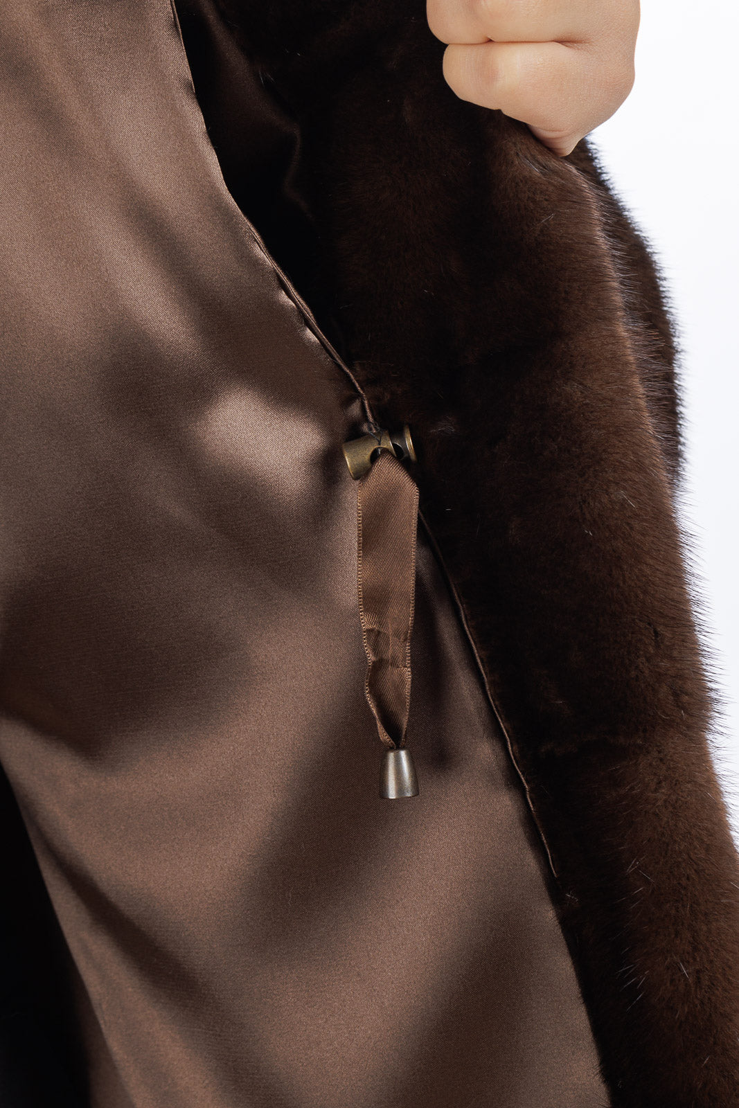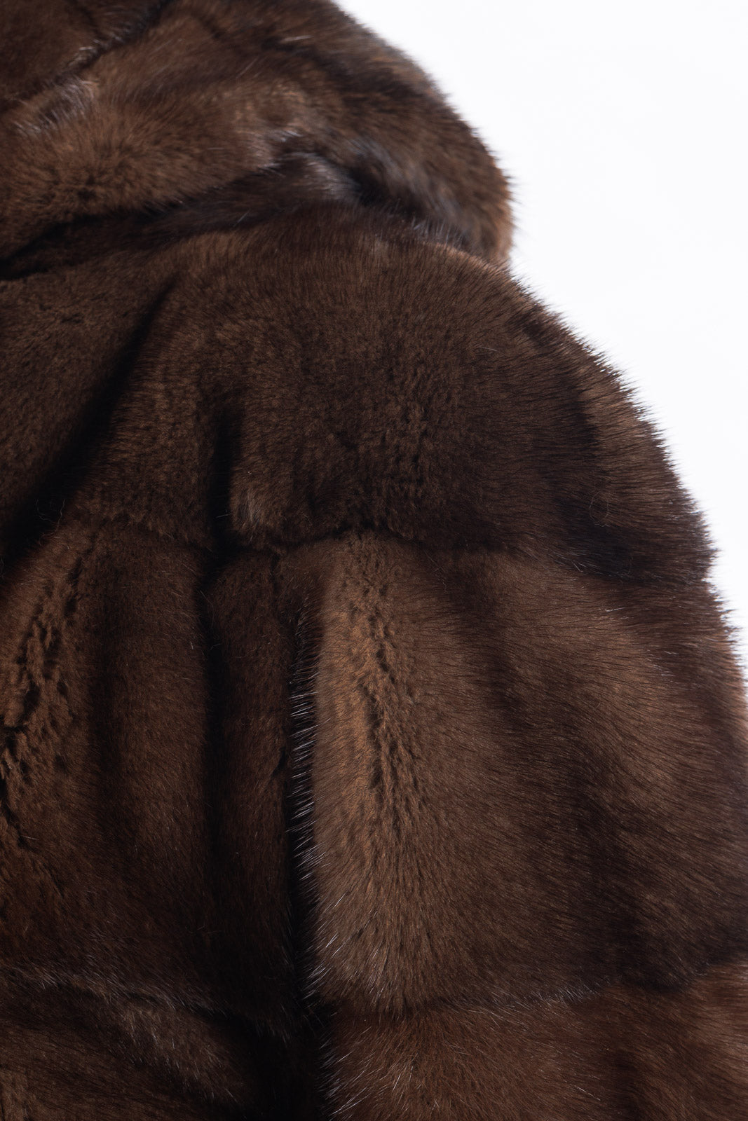 Giacca lunga di pelliccia di visone miele con cappuccio