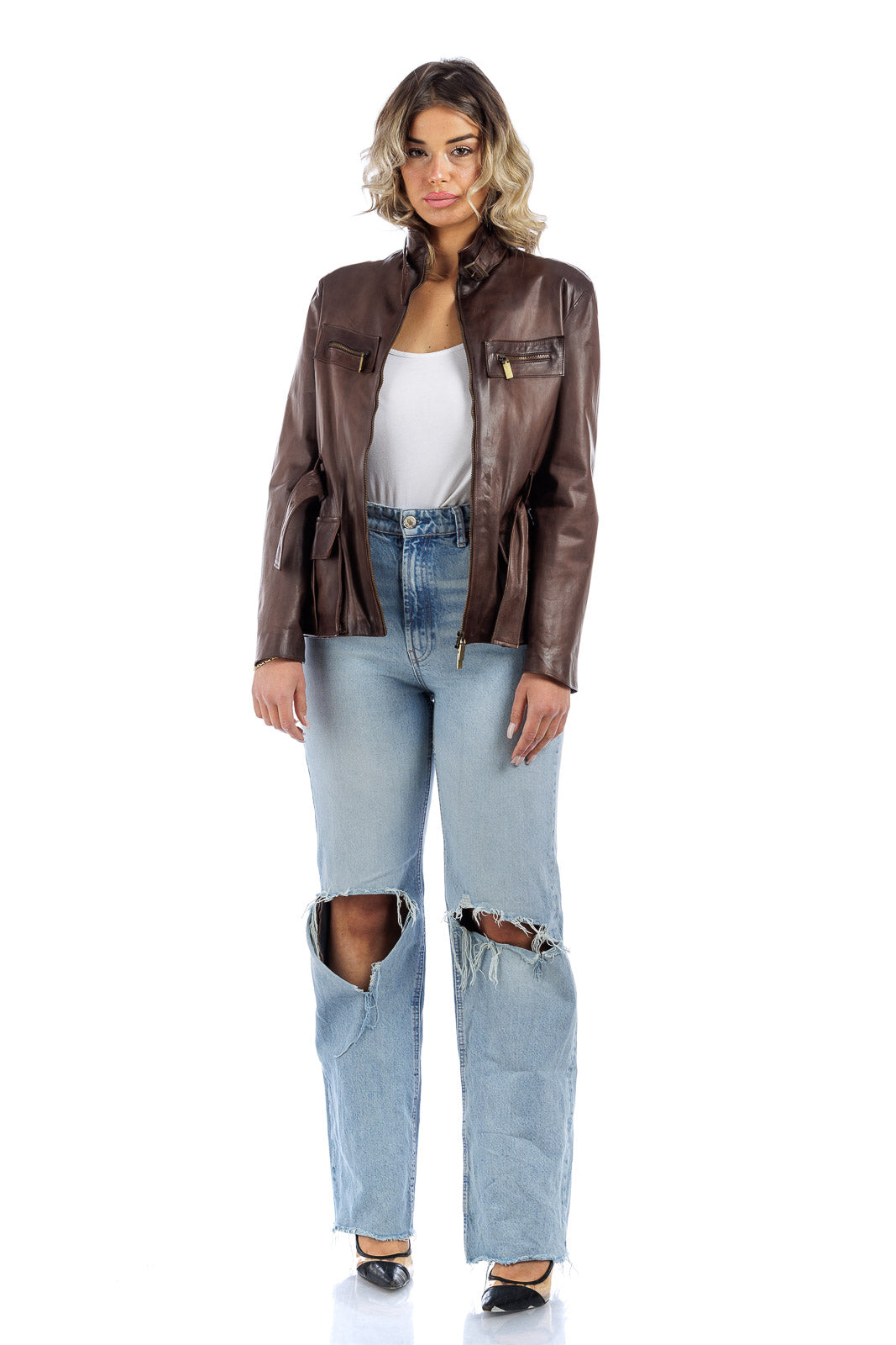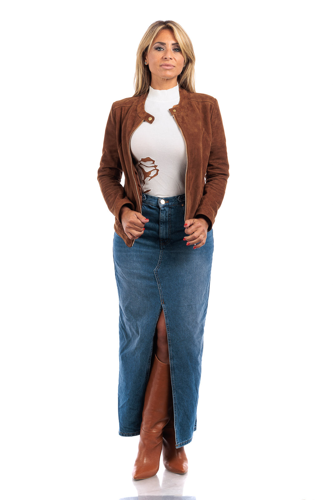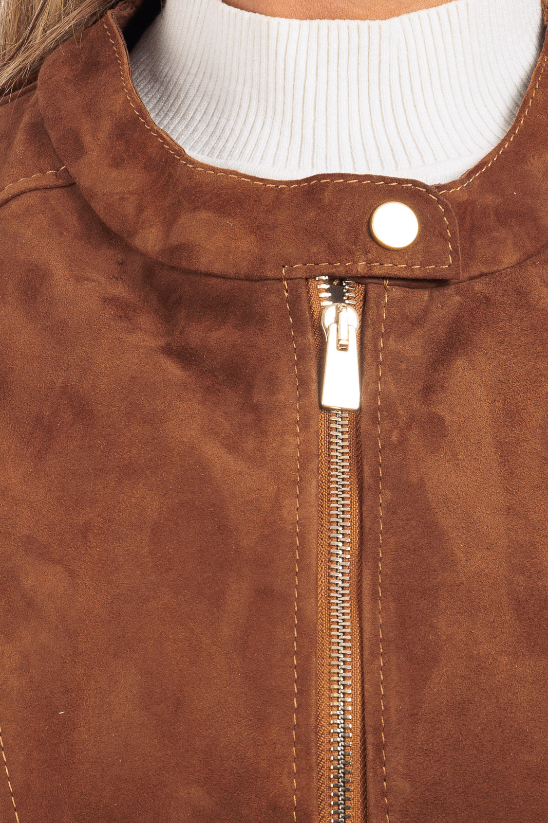 Giacca tabacco in camoscio di renna donna con zip PIT