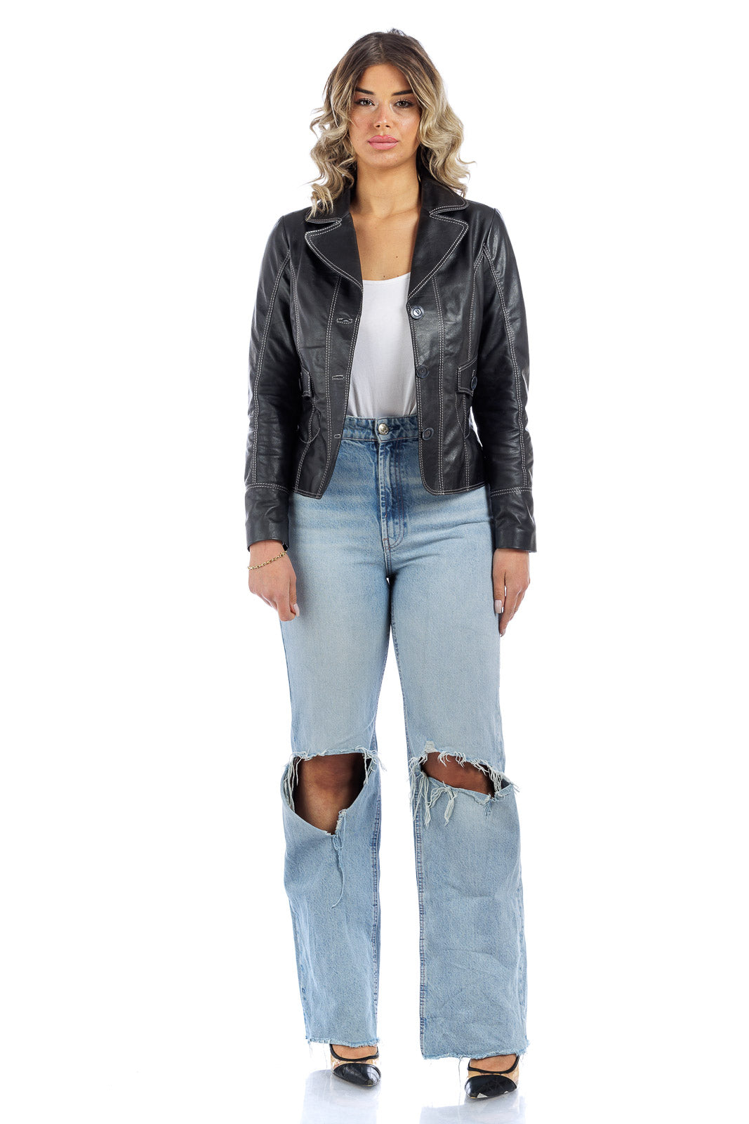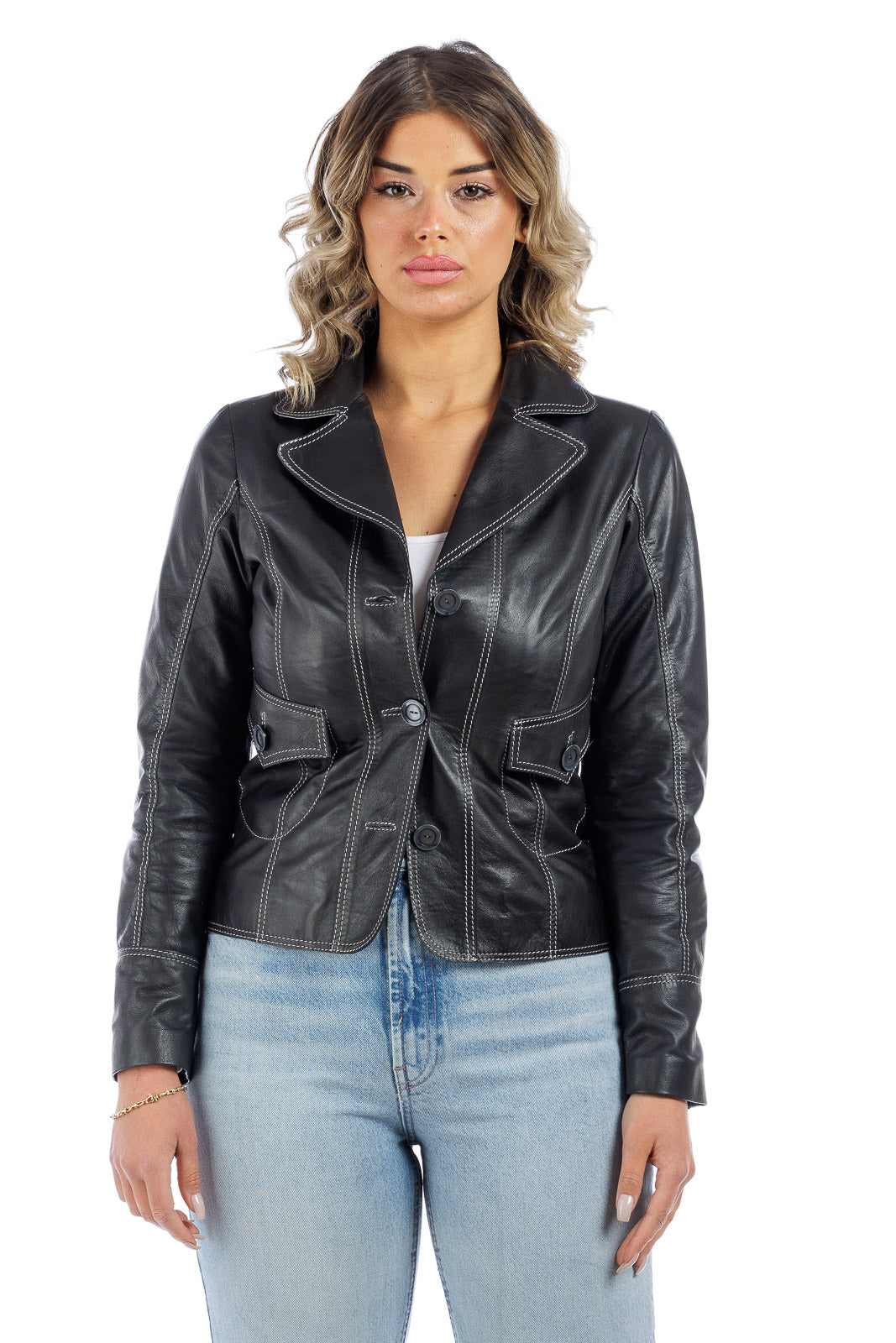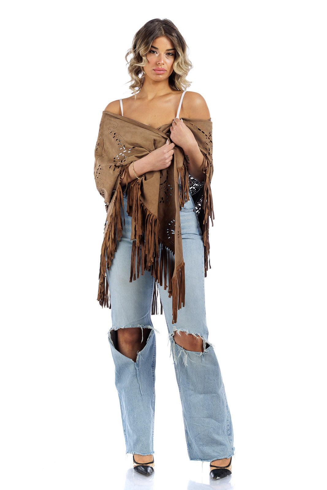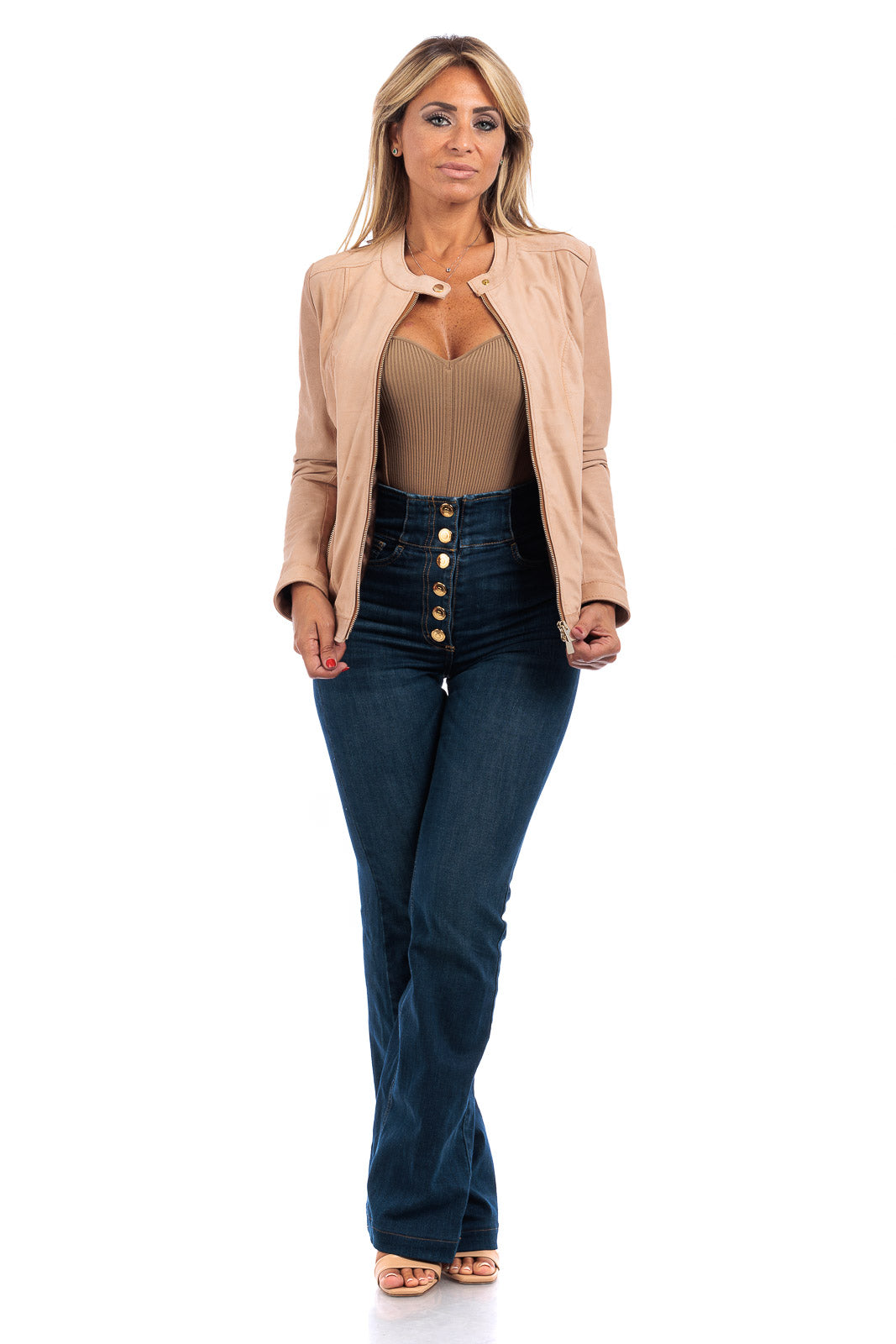 Giacca tabacco in camoscio di renna donna con zip PIT