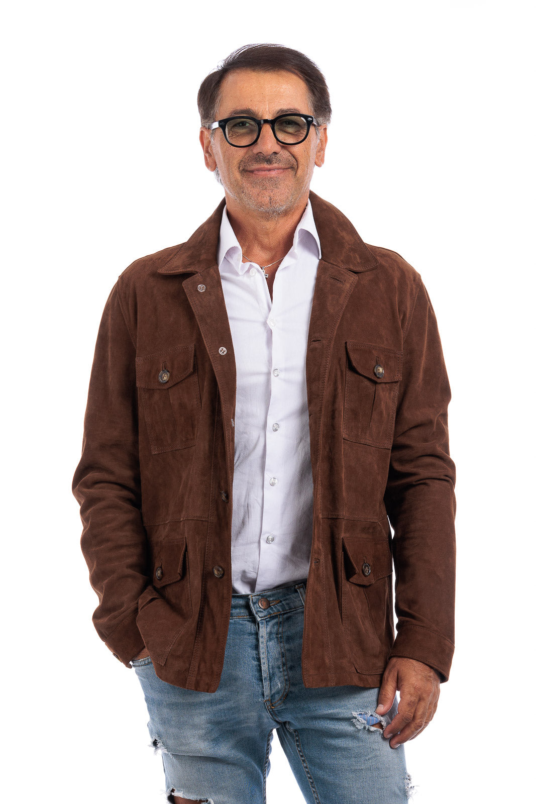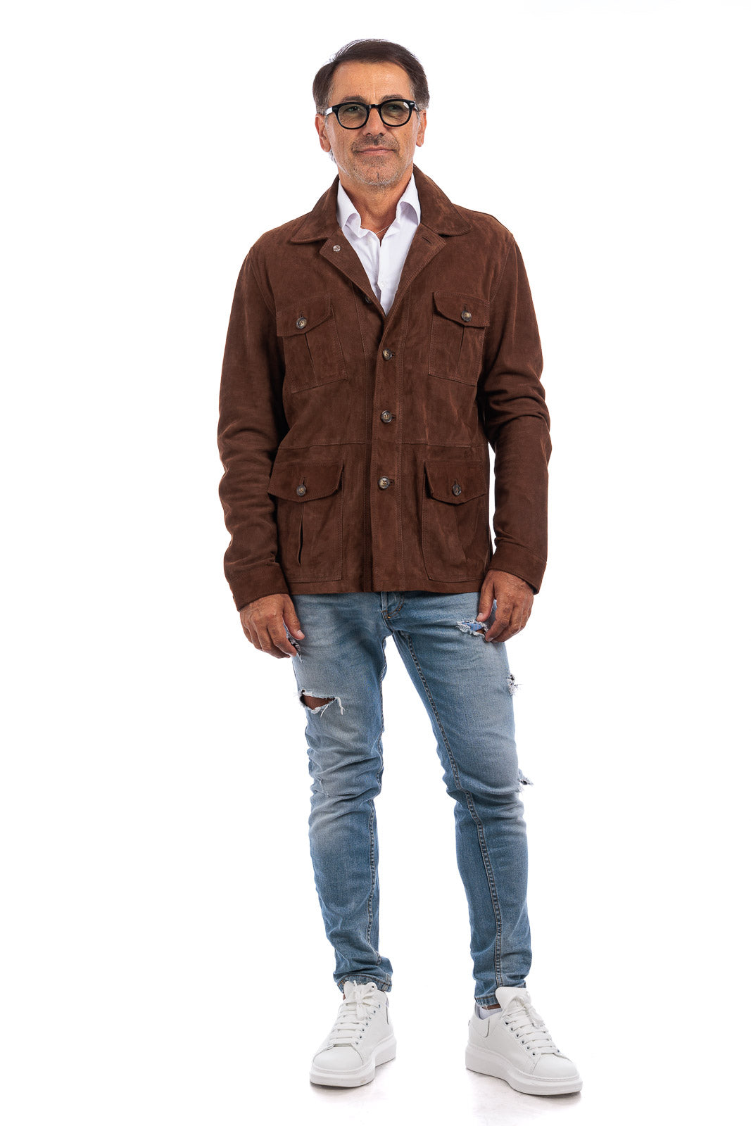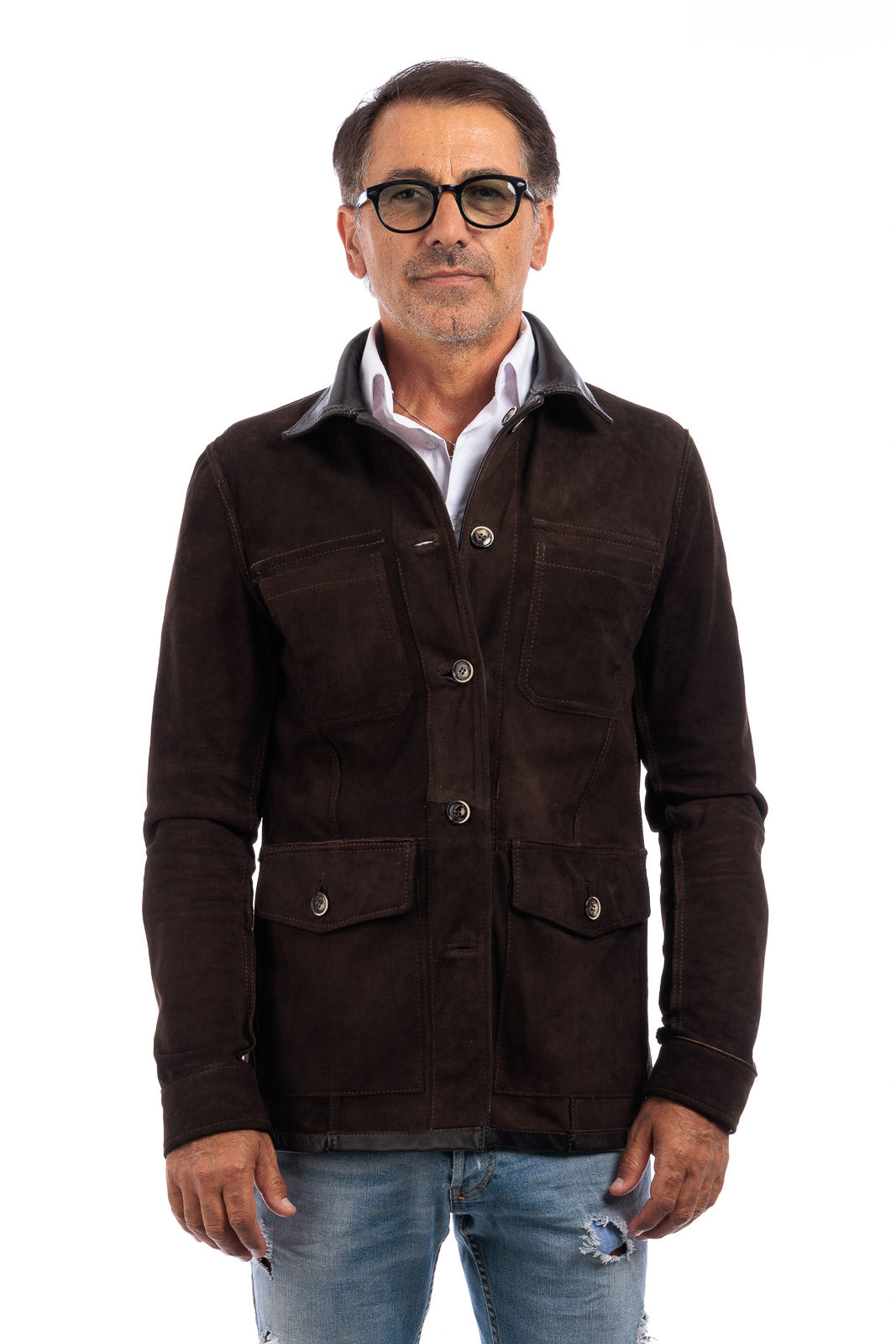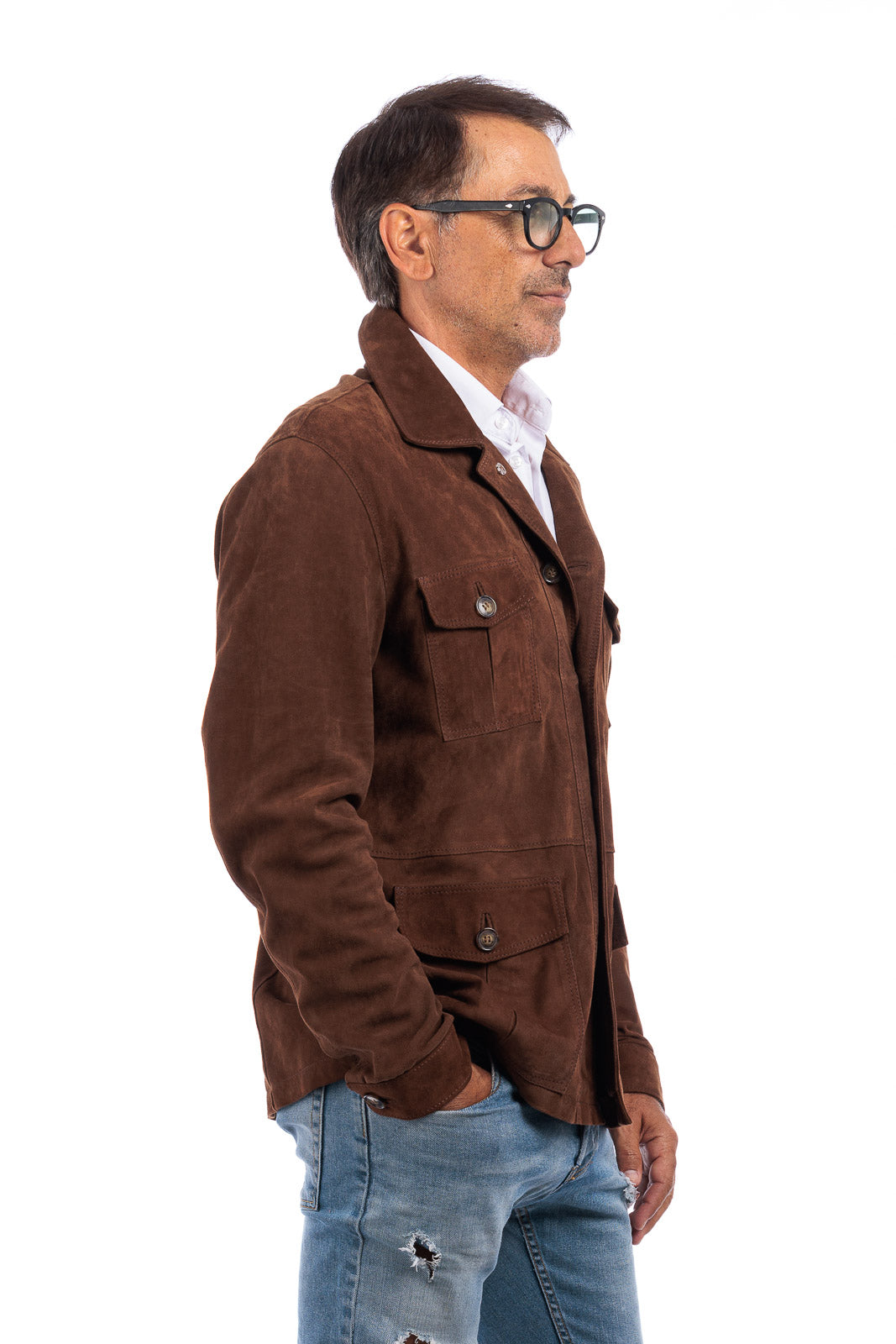 Giacca sahariana in camoscio uomo testa di moro IDROREPELLENTE
