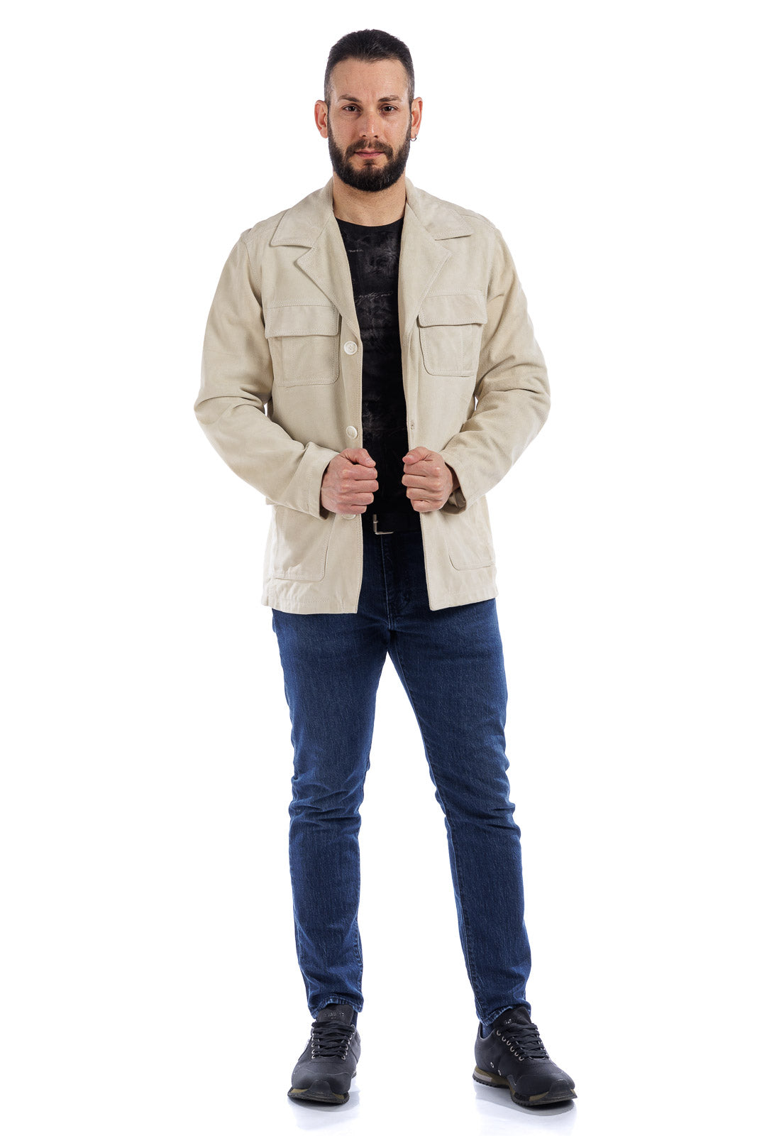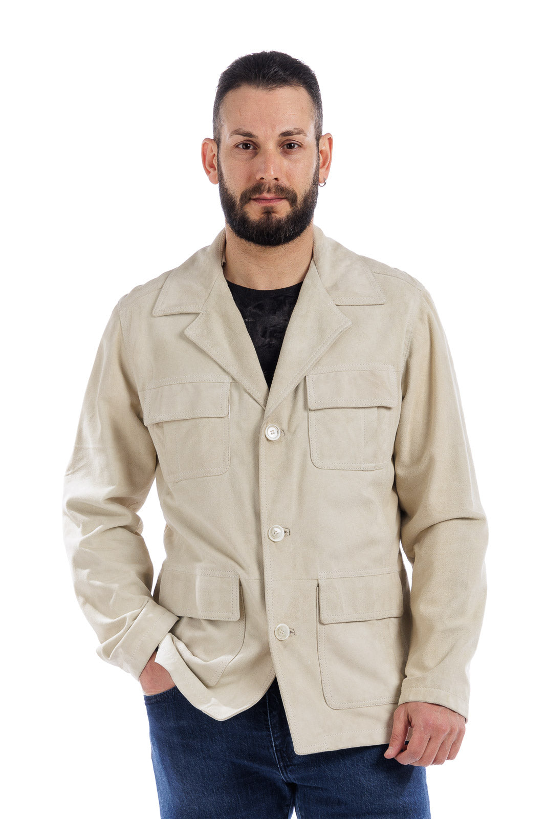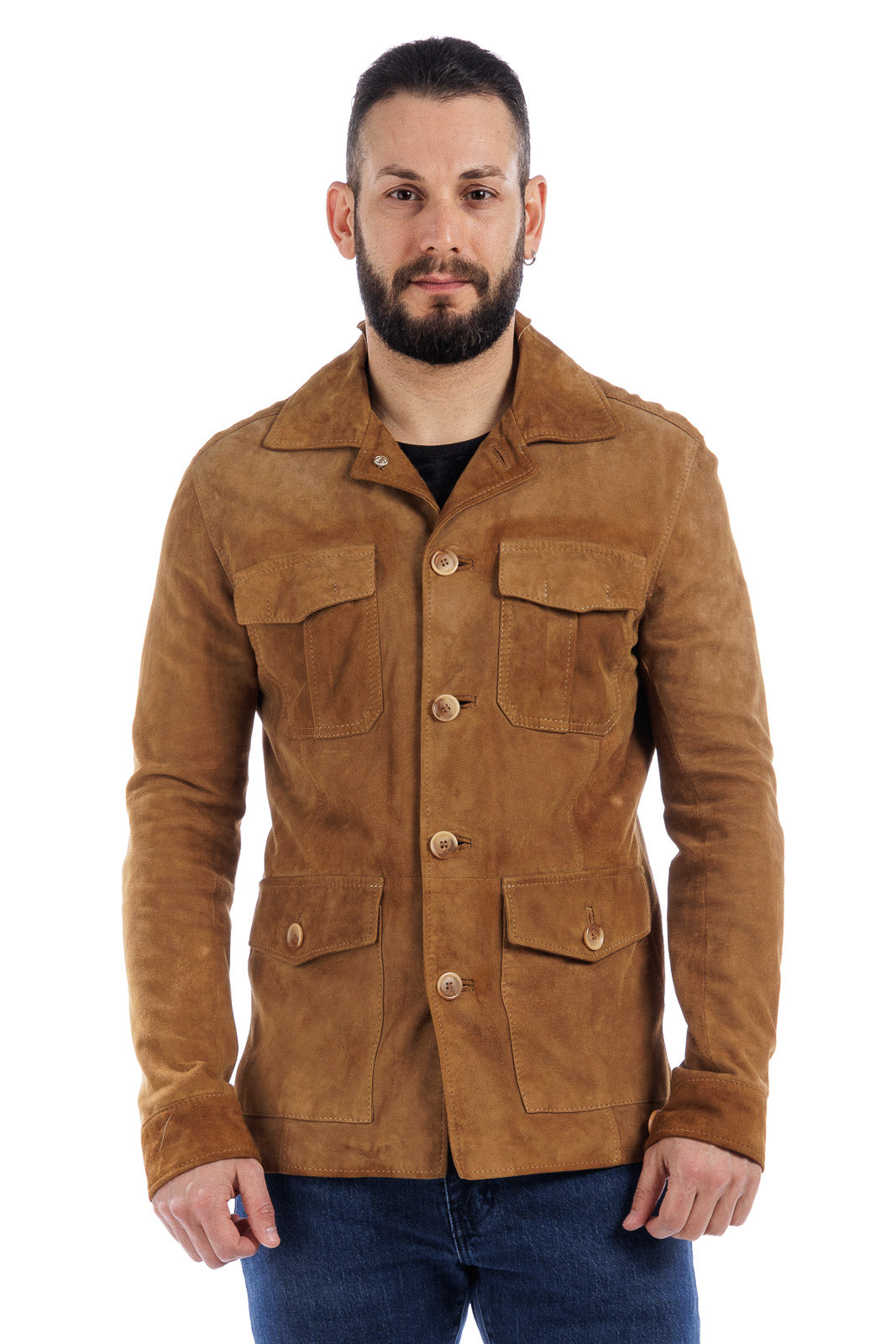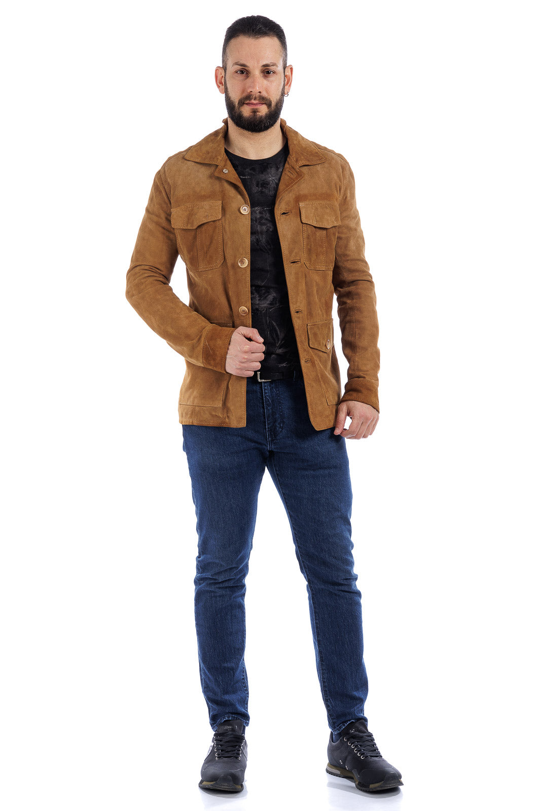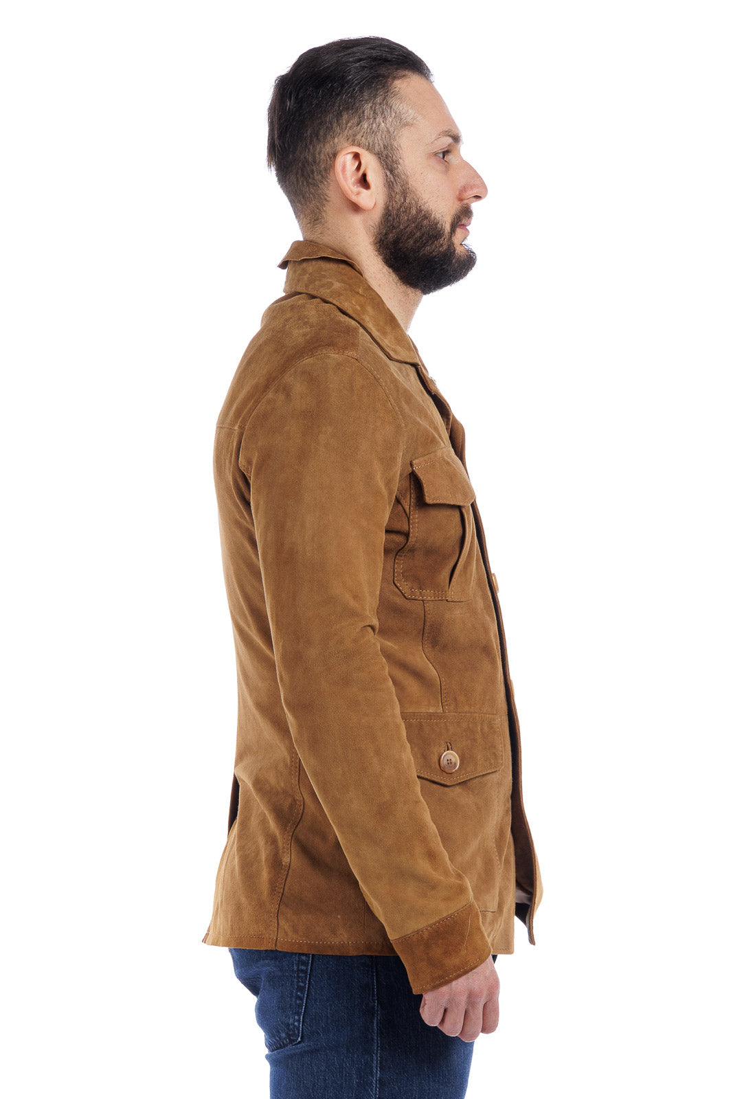 Giacca sahariana in camoscio uomo testa di moro IDROREPELLENTE