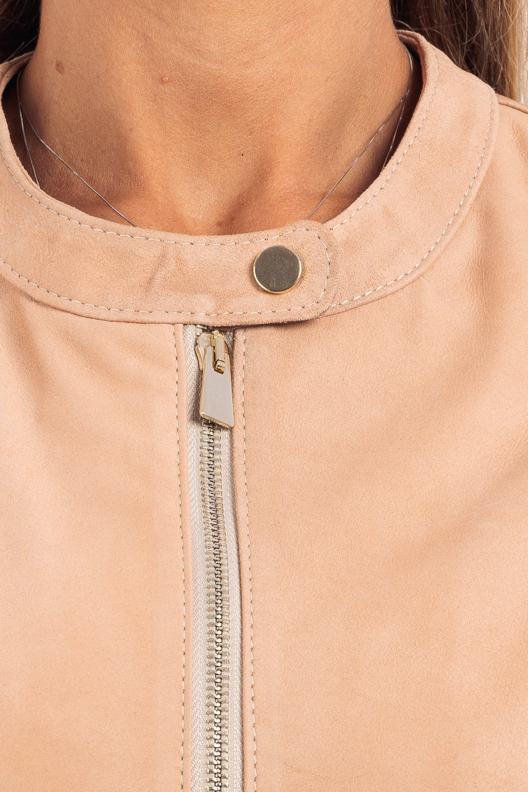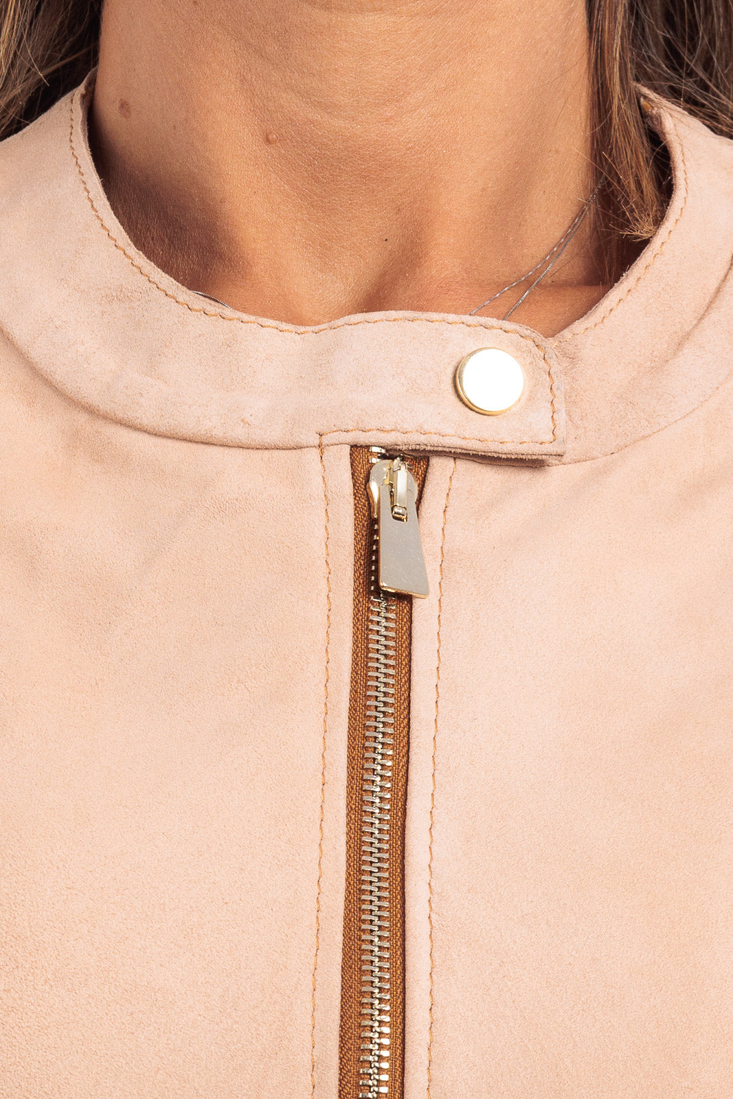 Giacca salmone in camoscio di renna donna con zip PIT 2