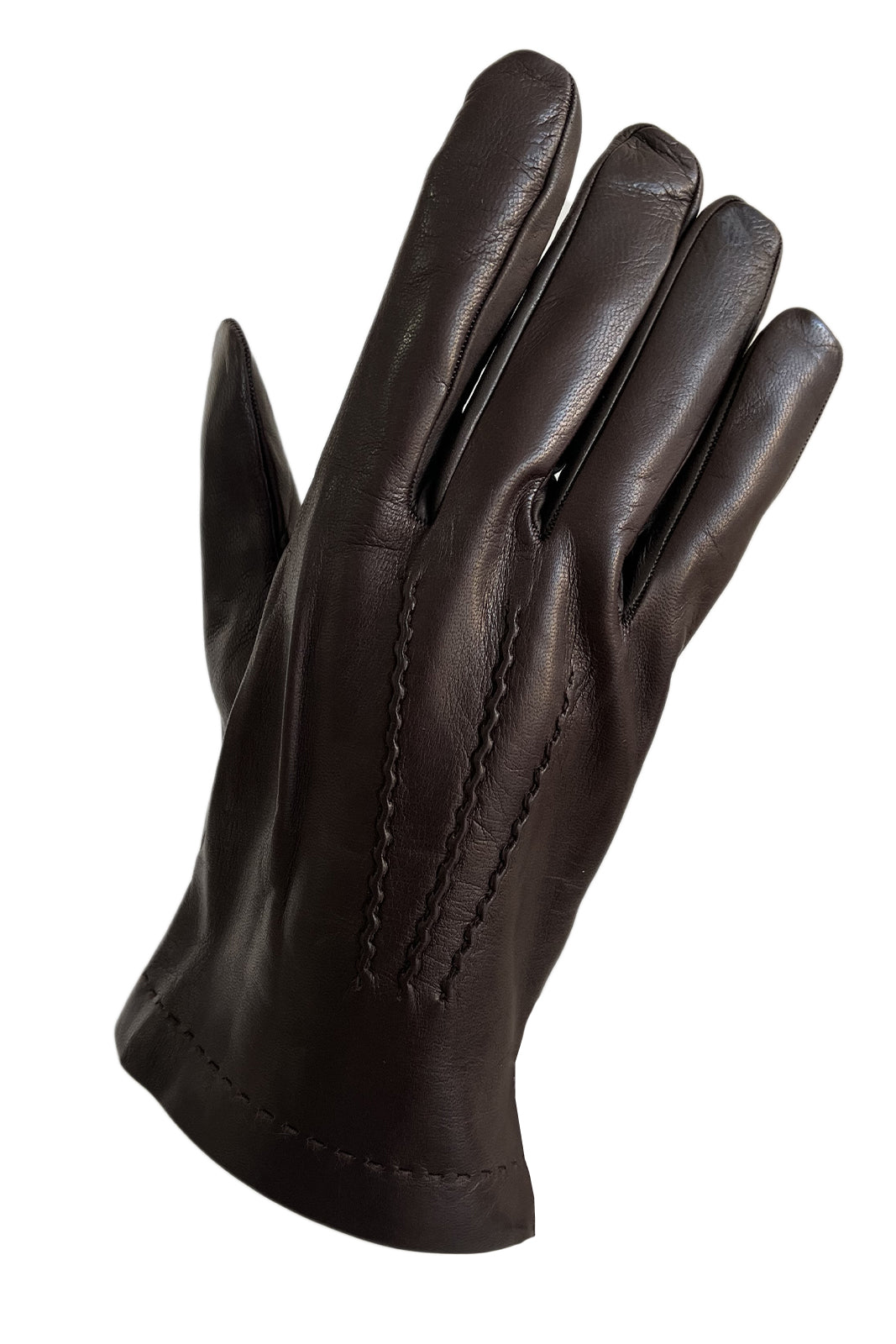 Guanto in vera pelle da uomo 3 stripes marrone sfoderato