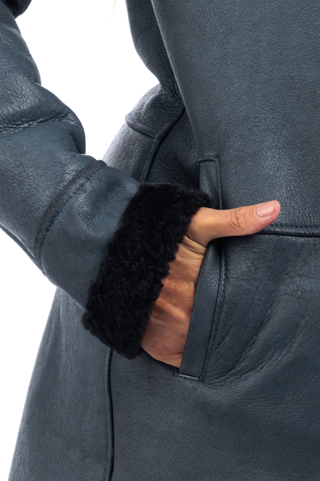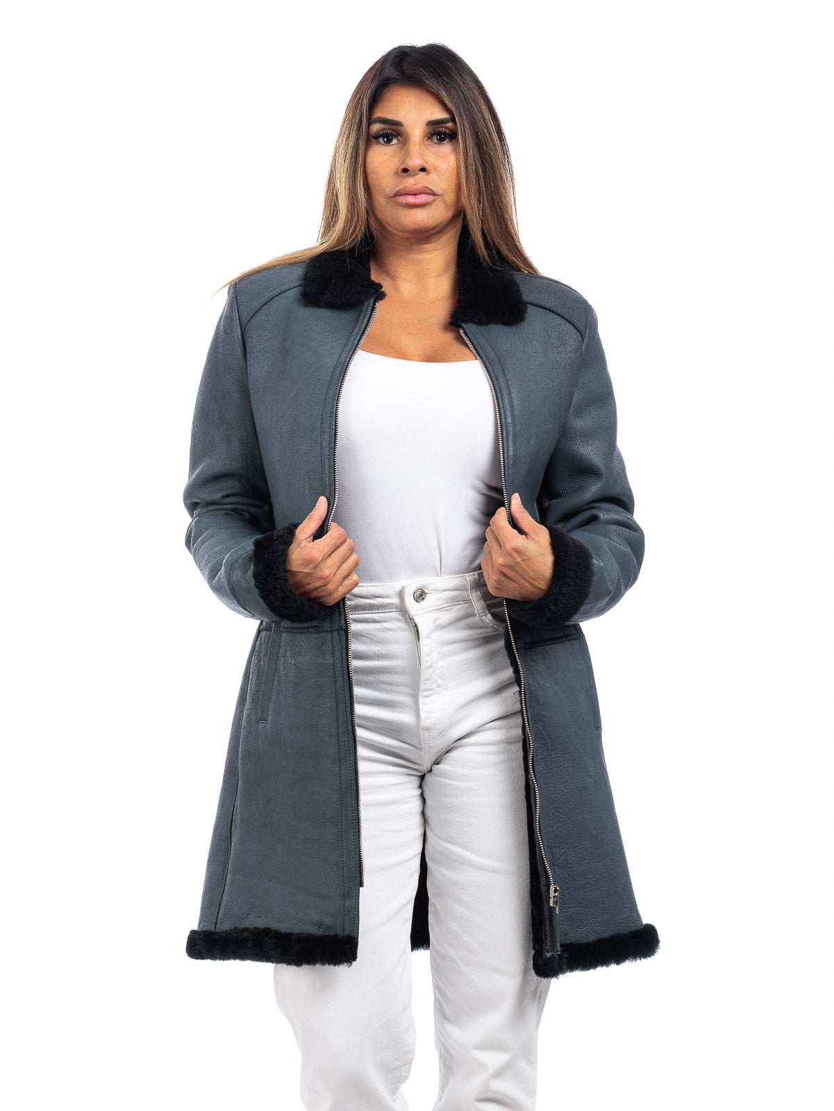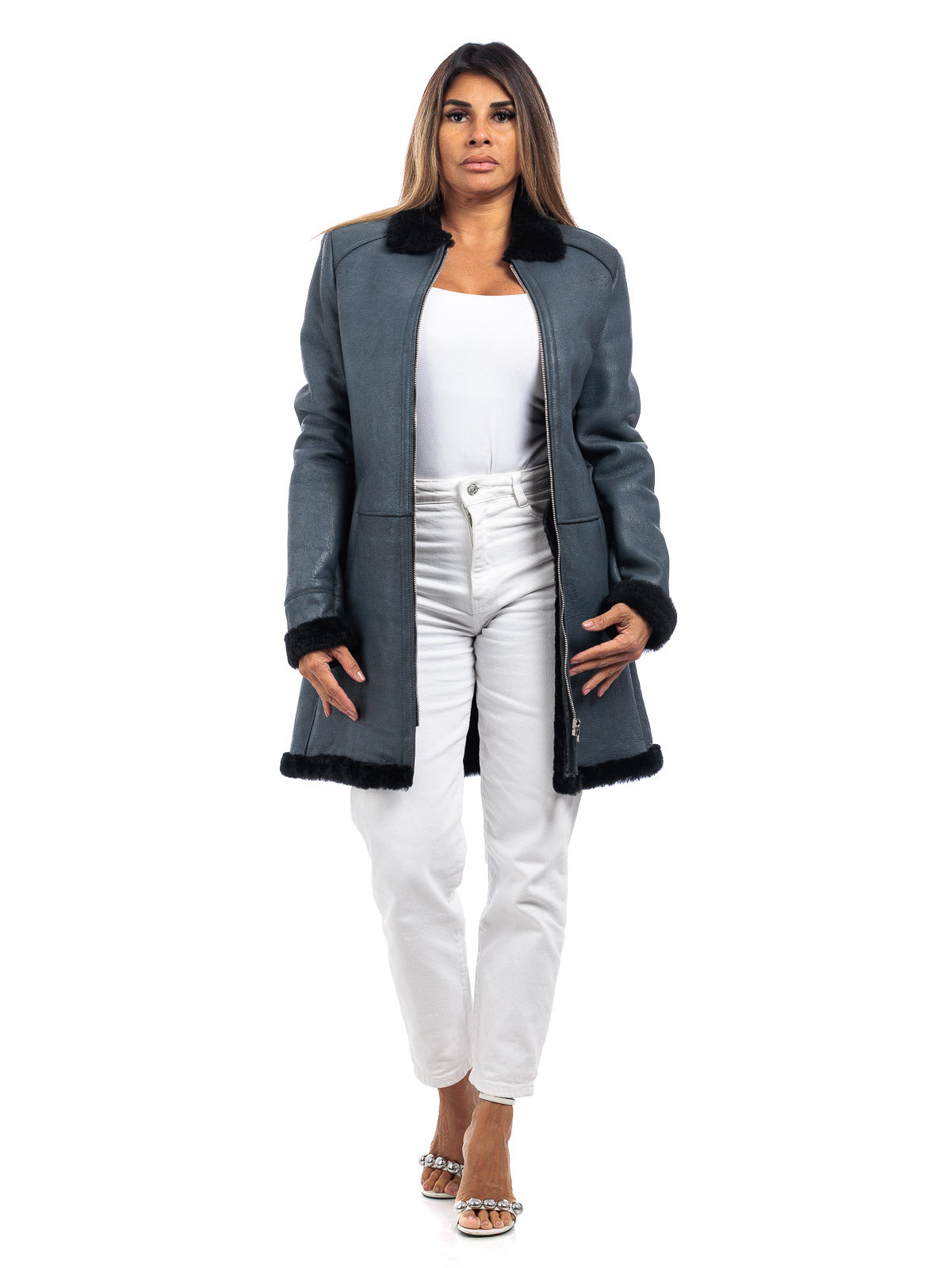 Giacca interamente in montone blu ocean da donna con zip - linea OVER