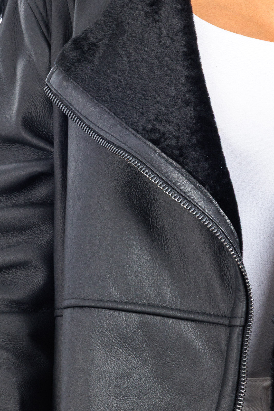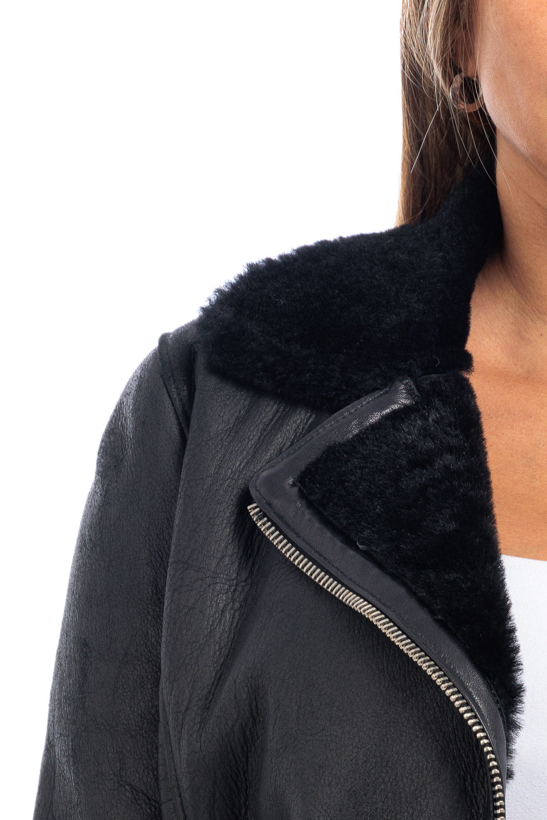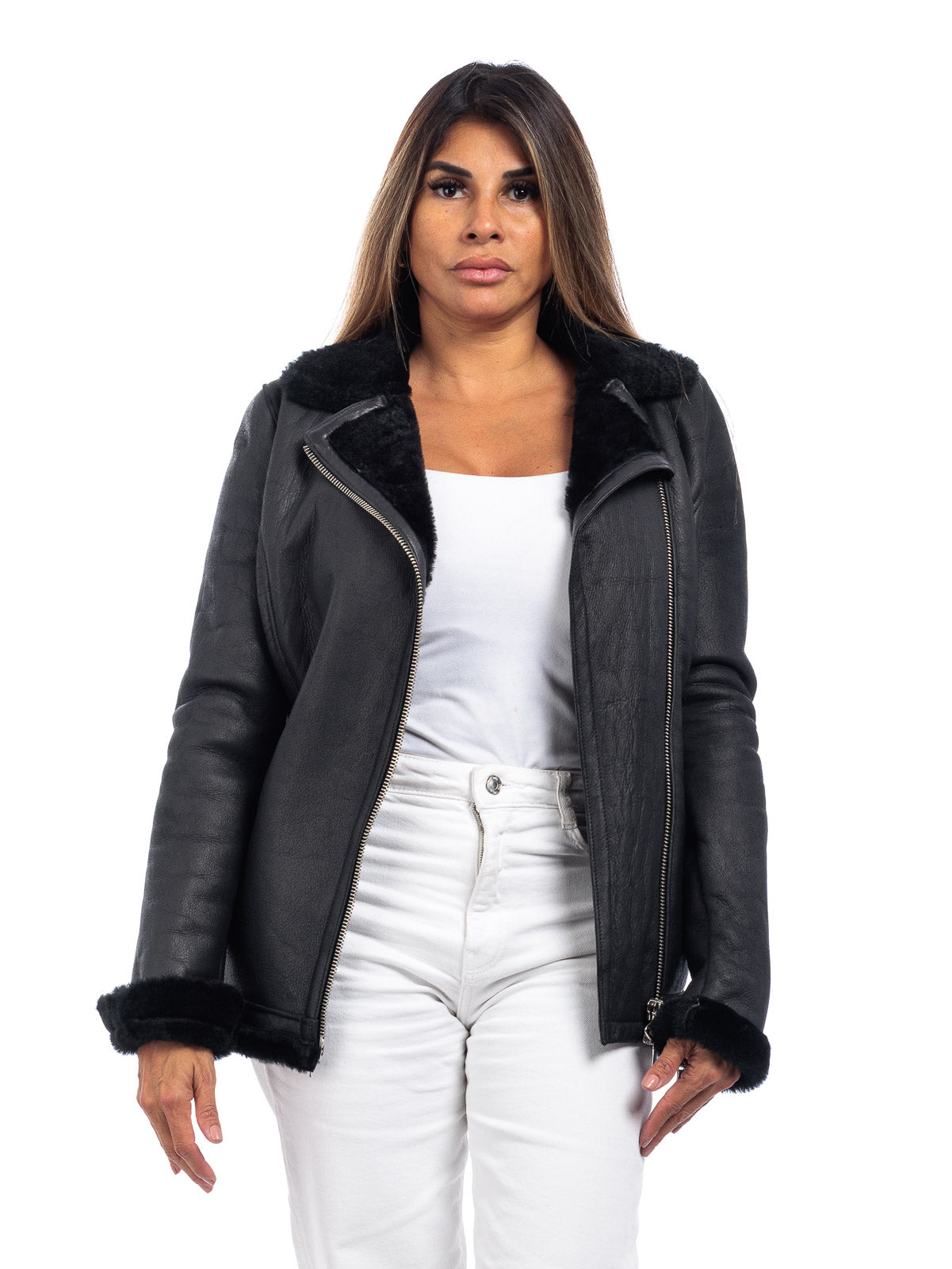Giacca interamente in montone nero/bianco scratch da donna con zip - linea OVER