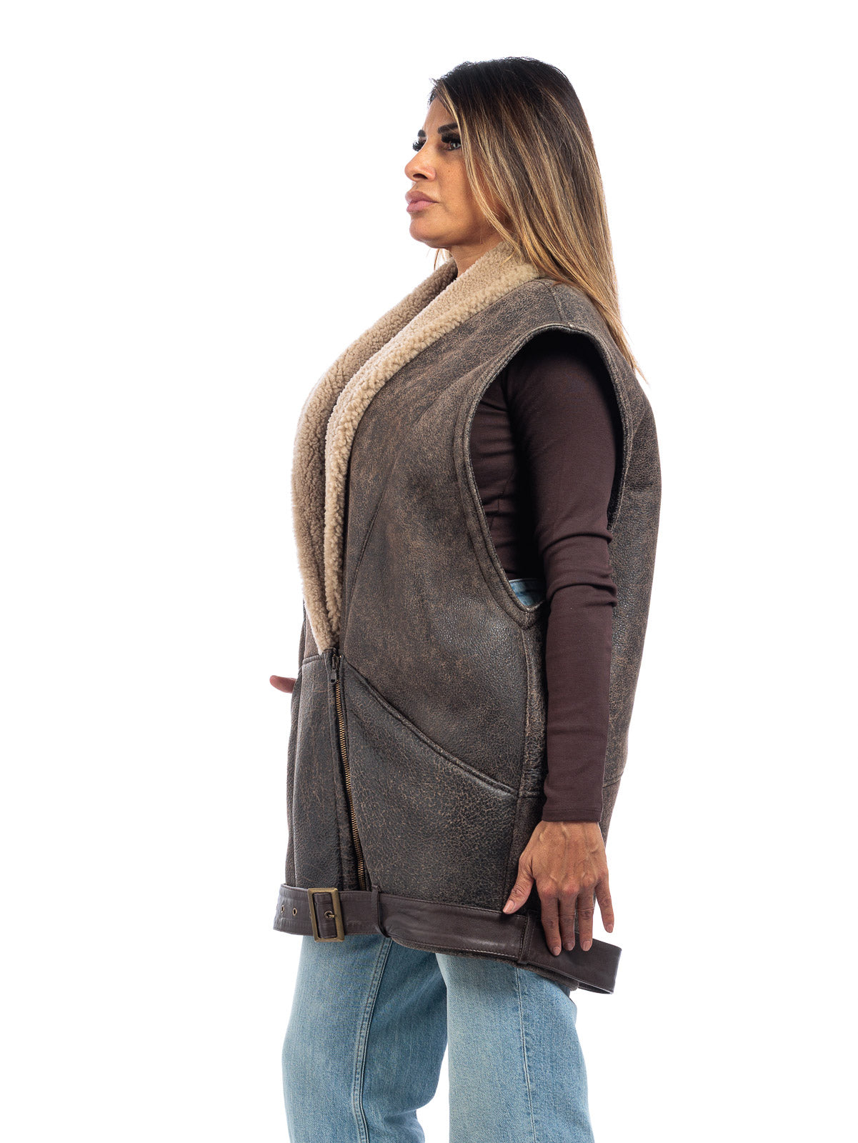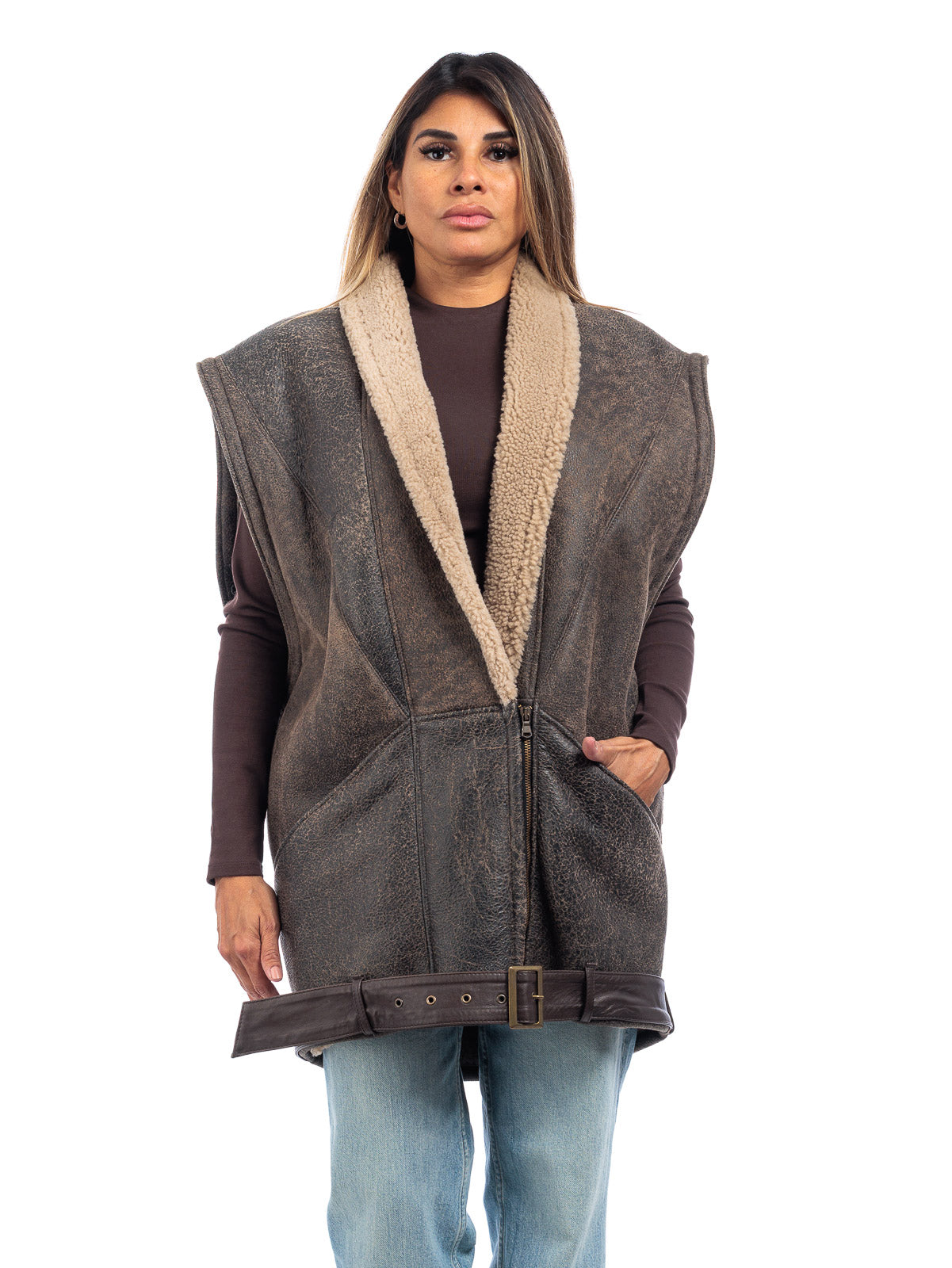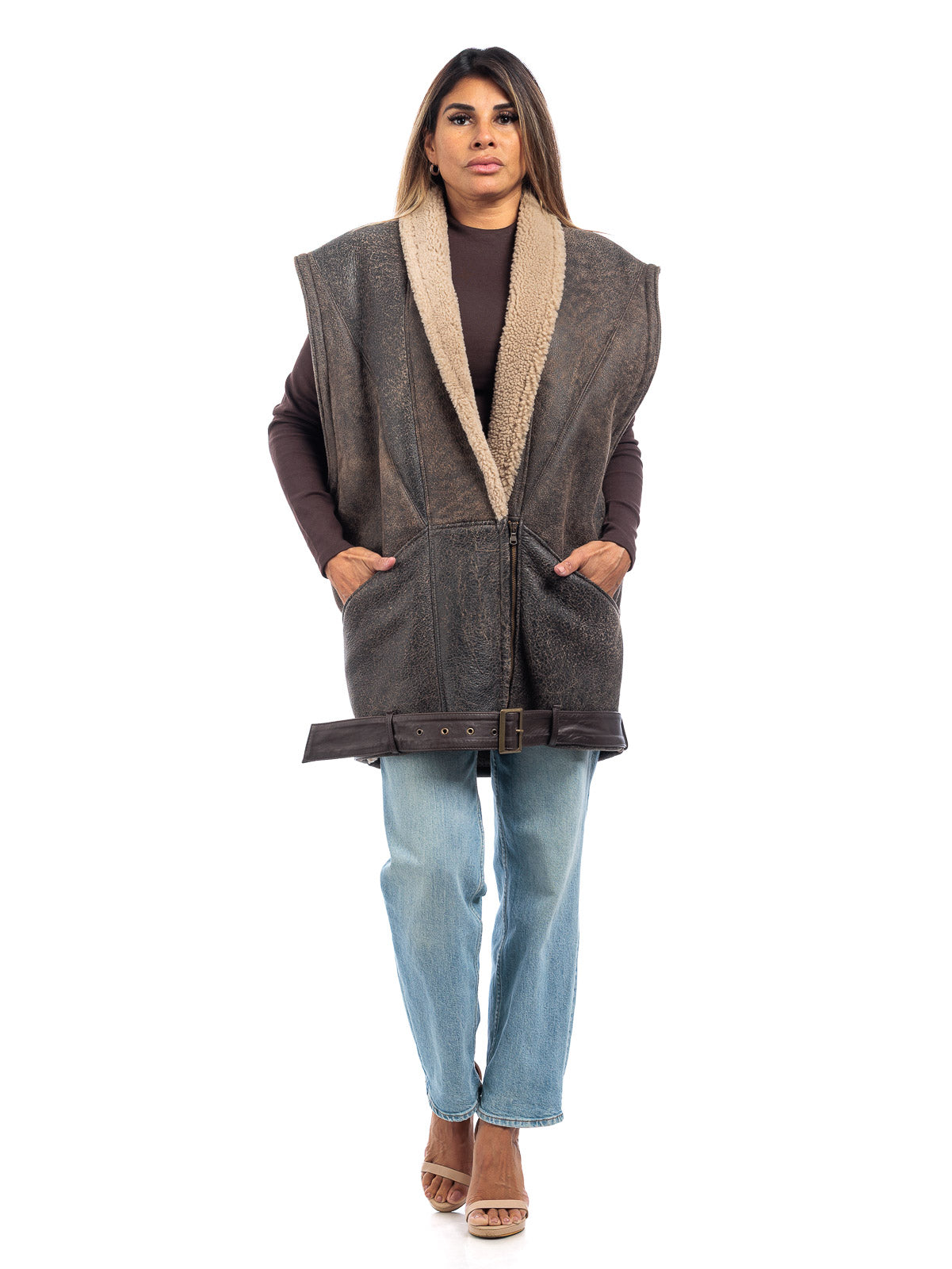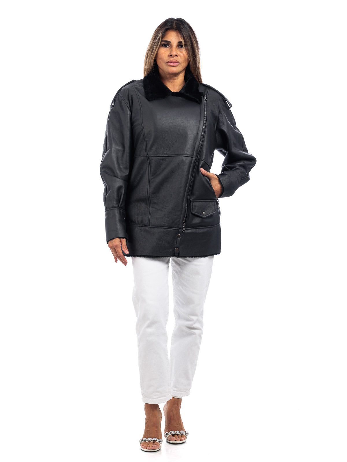 Giacca interamente in montone testa di moro da donna con zip - linea OVER