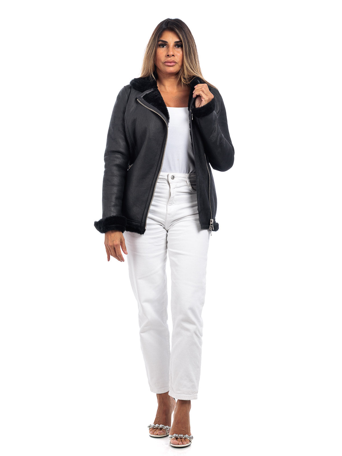 Bomber montone pelo bianco donna con zip aviatore ADRIANA B3
