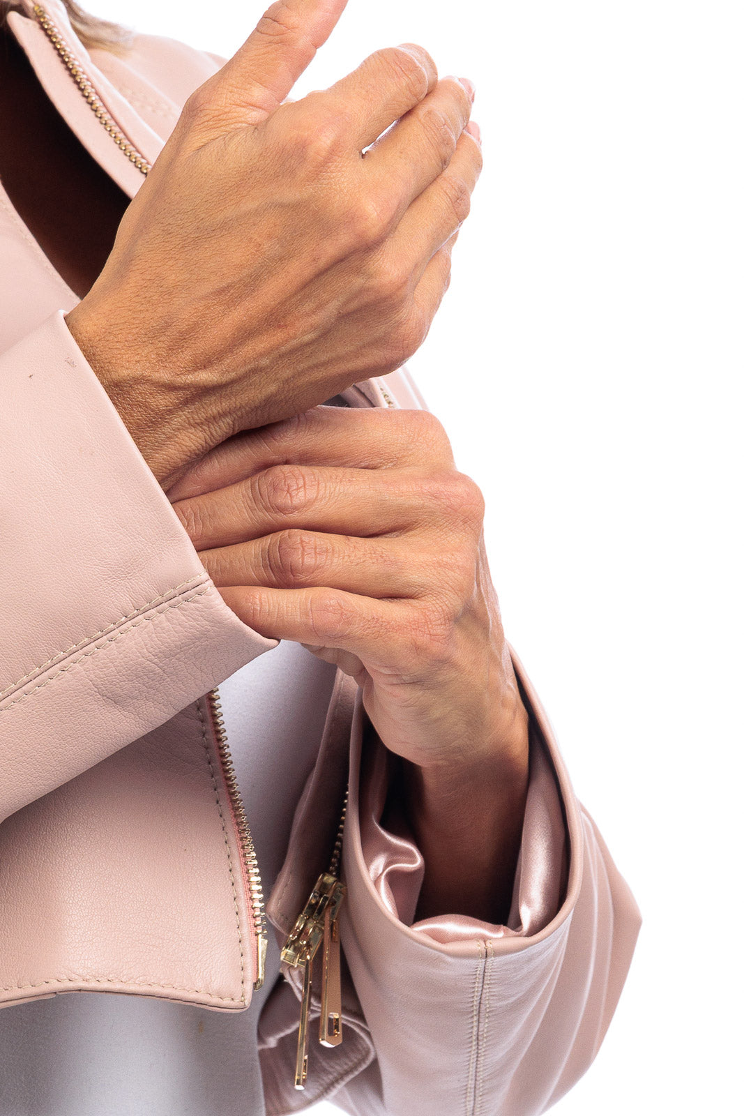 Giacca in vera pelle donna STAK con collo e polso in rex cincillà