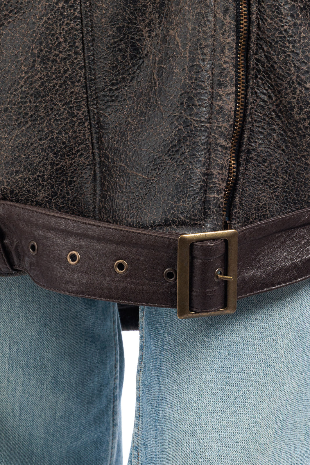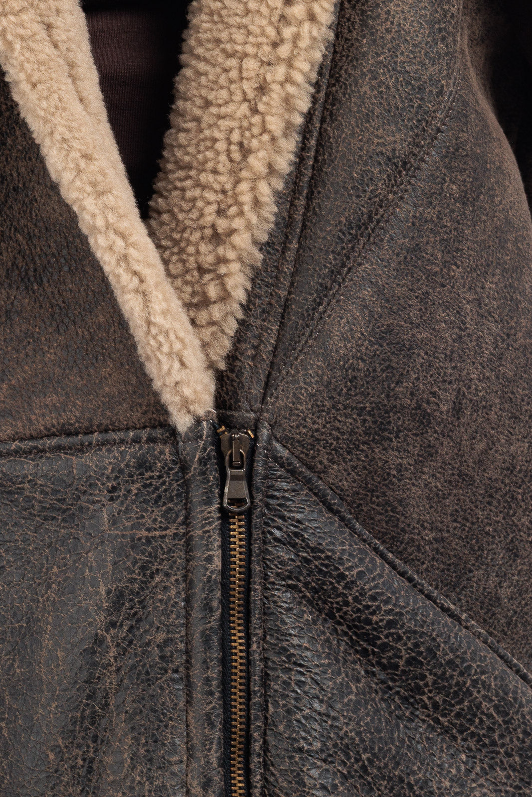 Piumino miele in pelle con cappuccio bordato in murmasky