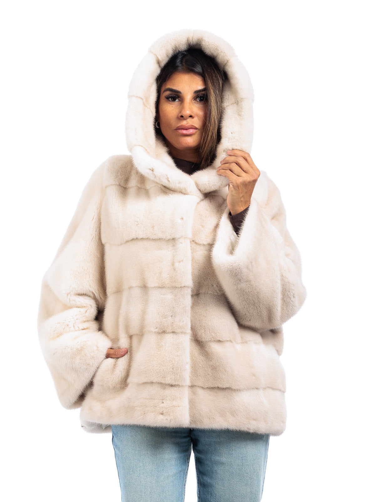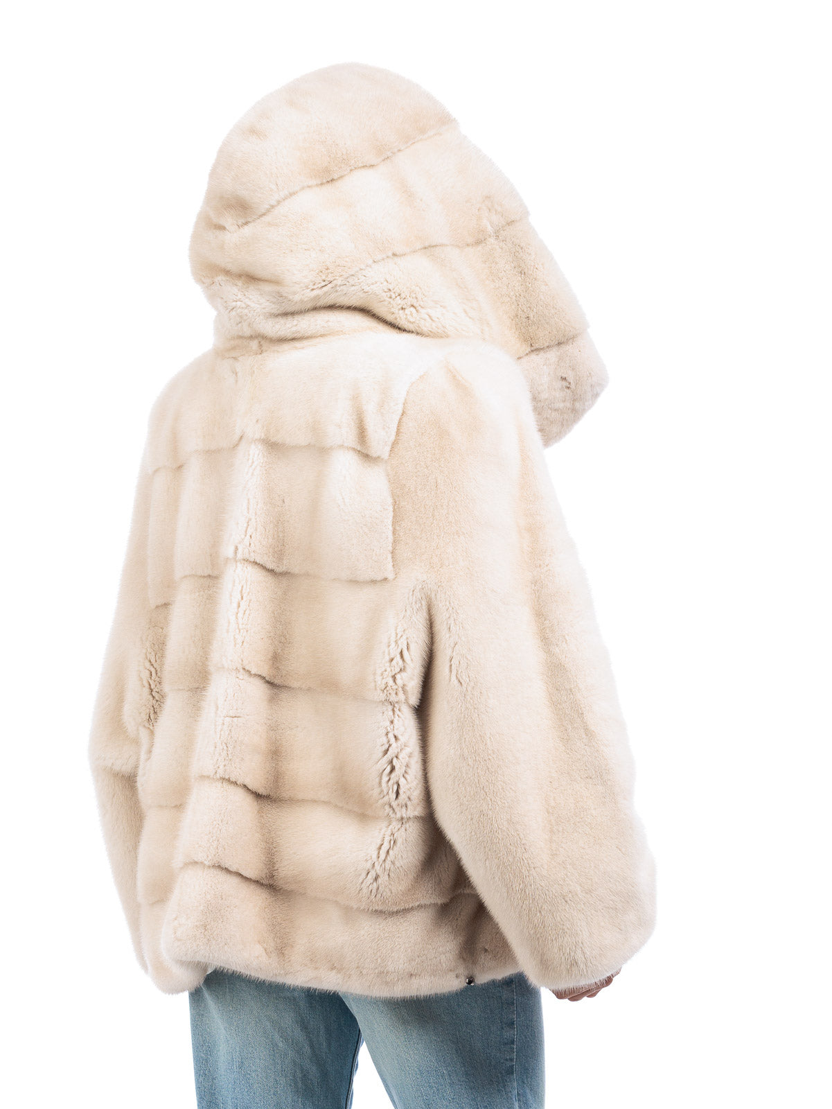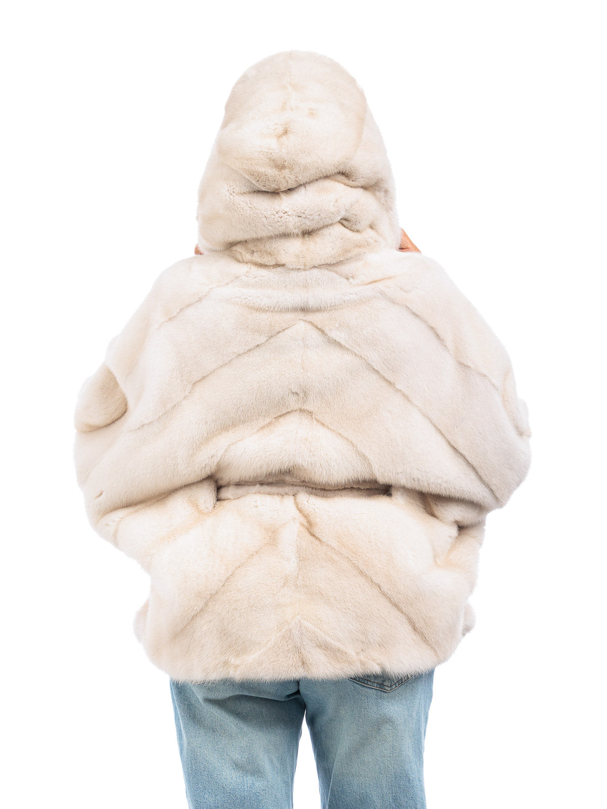 Giacca in pelliccia di Visone SILVER con cappuccio