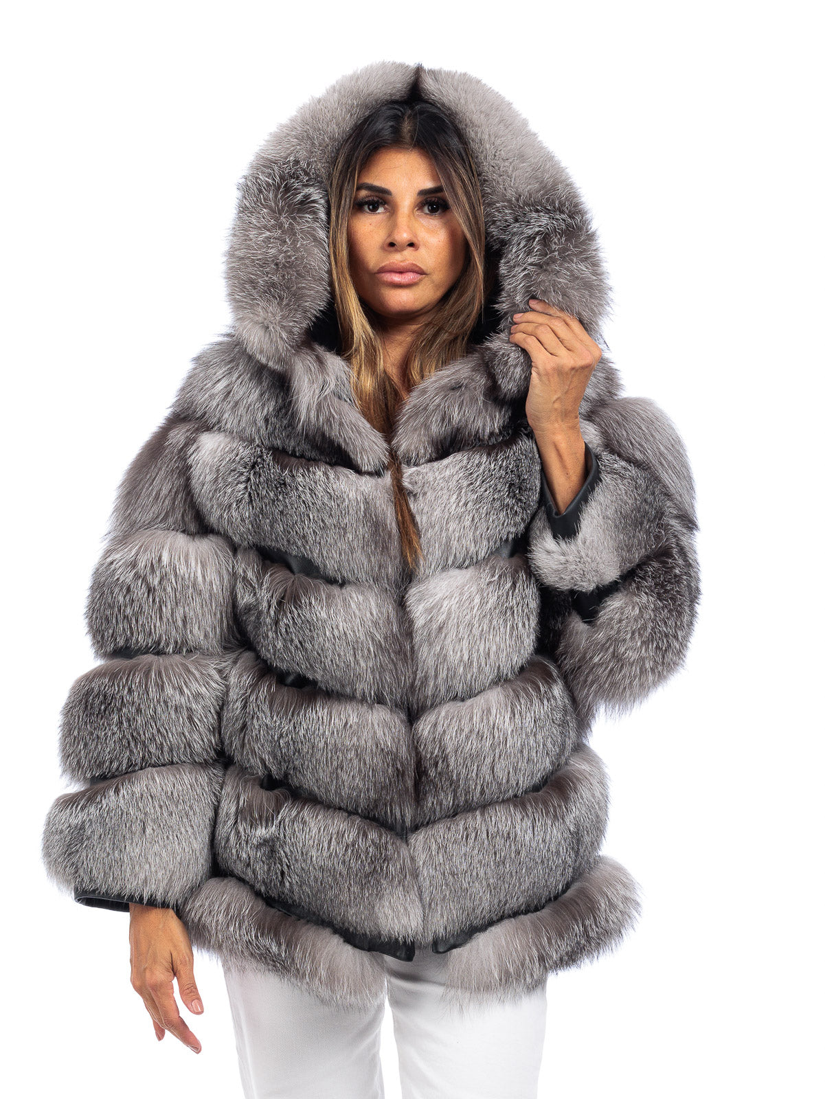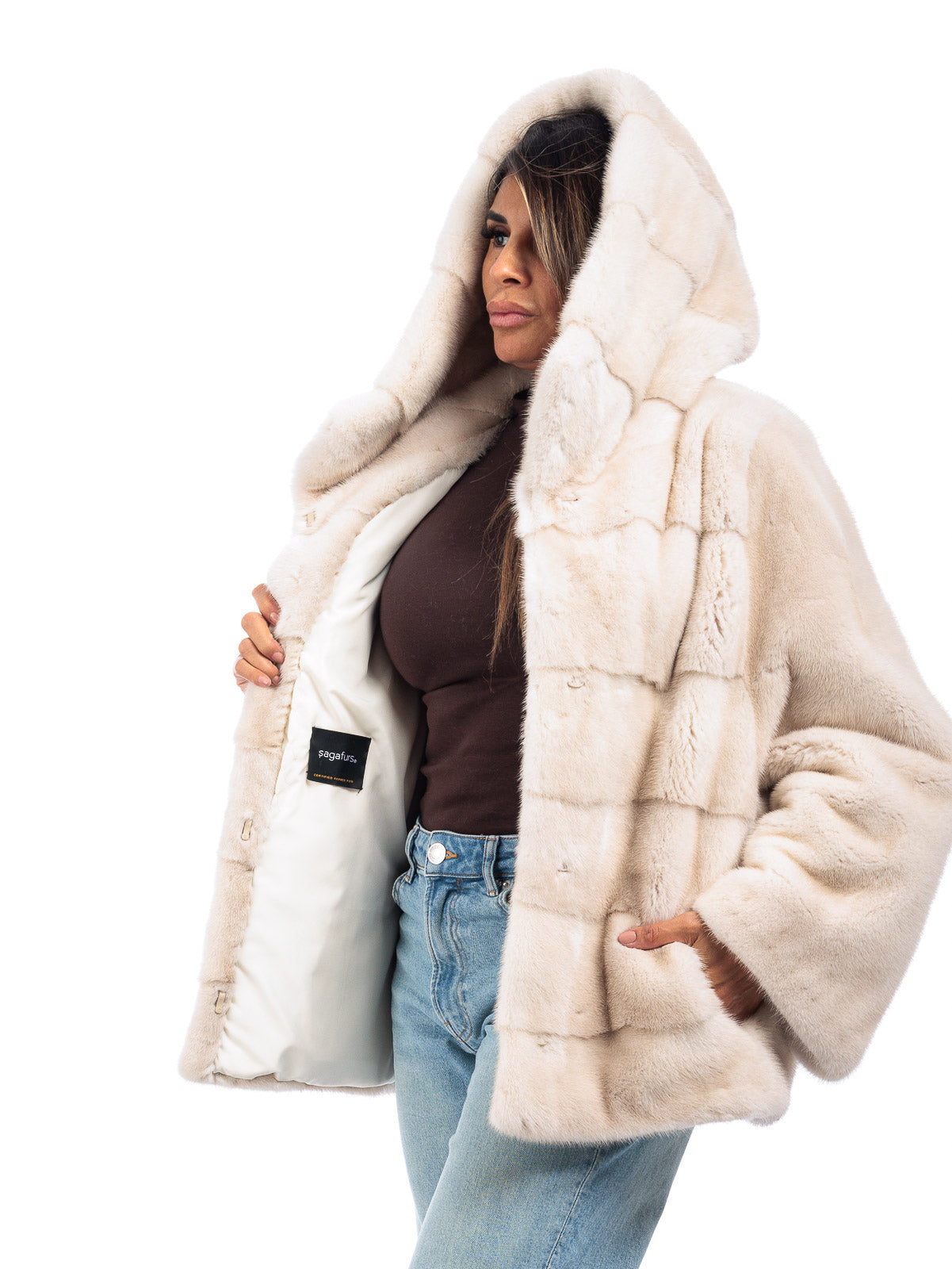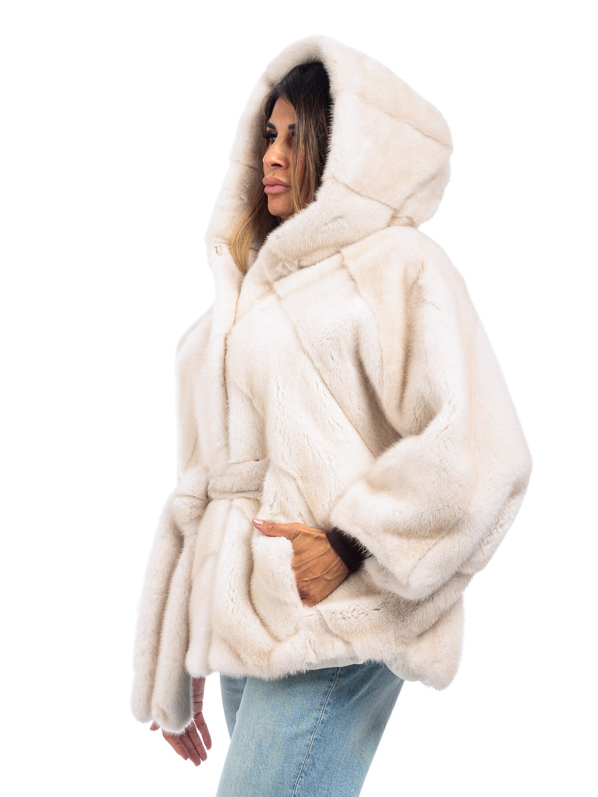 Giacca in pelliccia di Visone SILVER con cappuccio