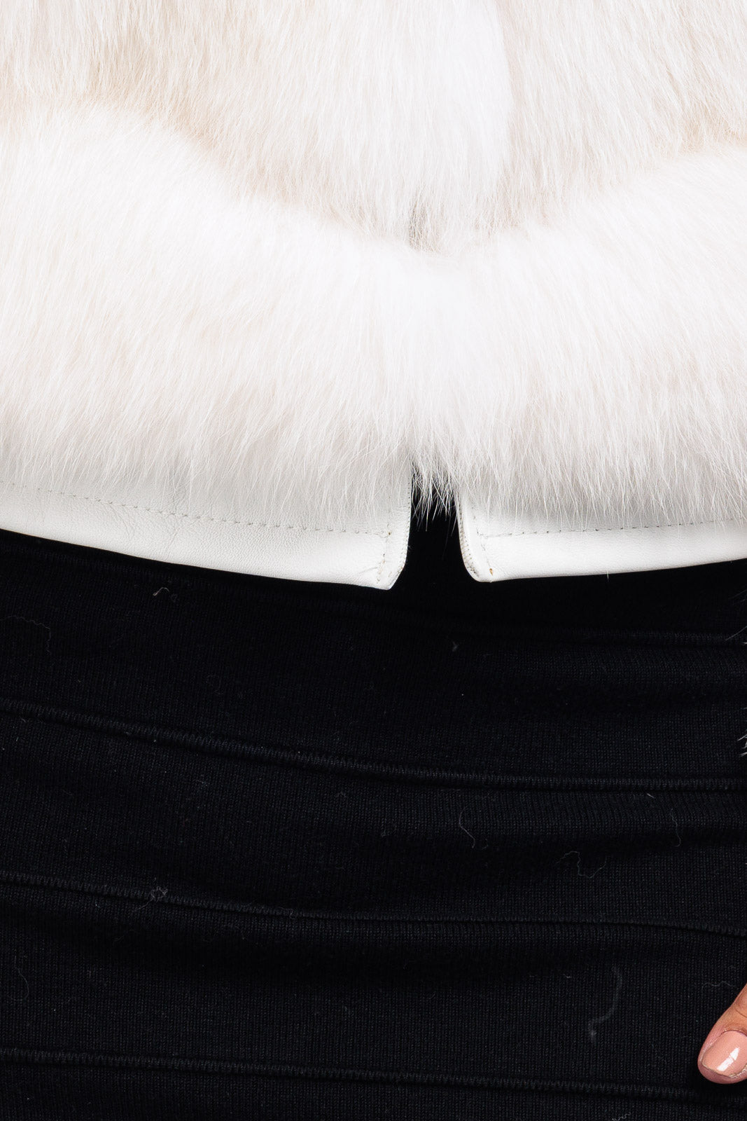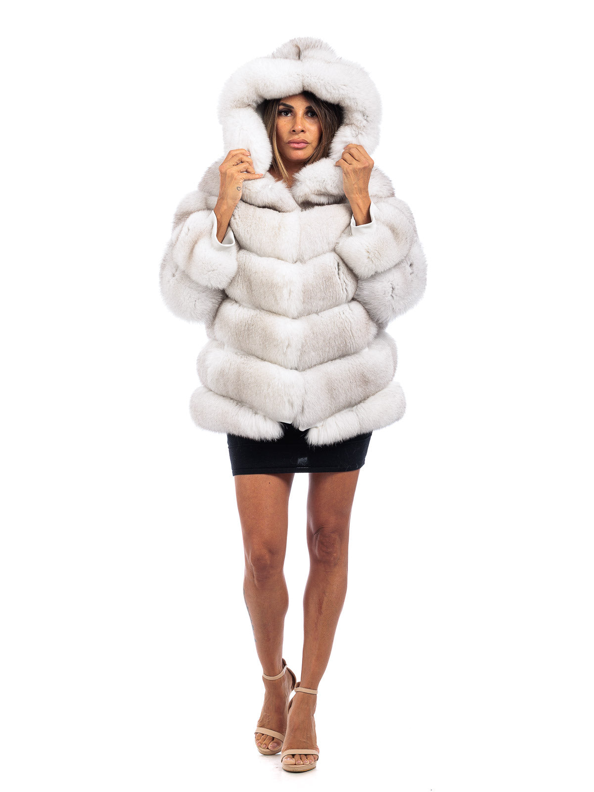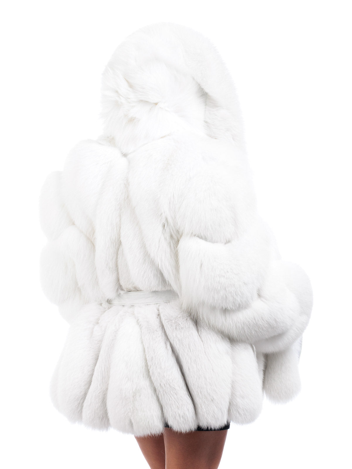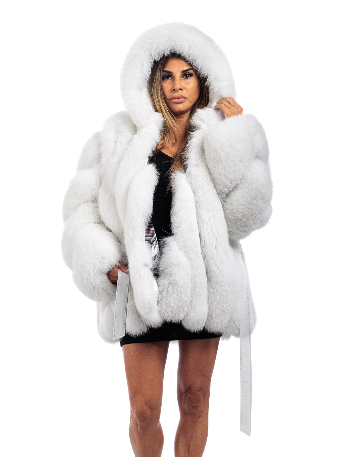 Giubbotto in pelliccia di volpe bianca corto con cappuccio