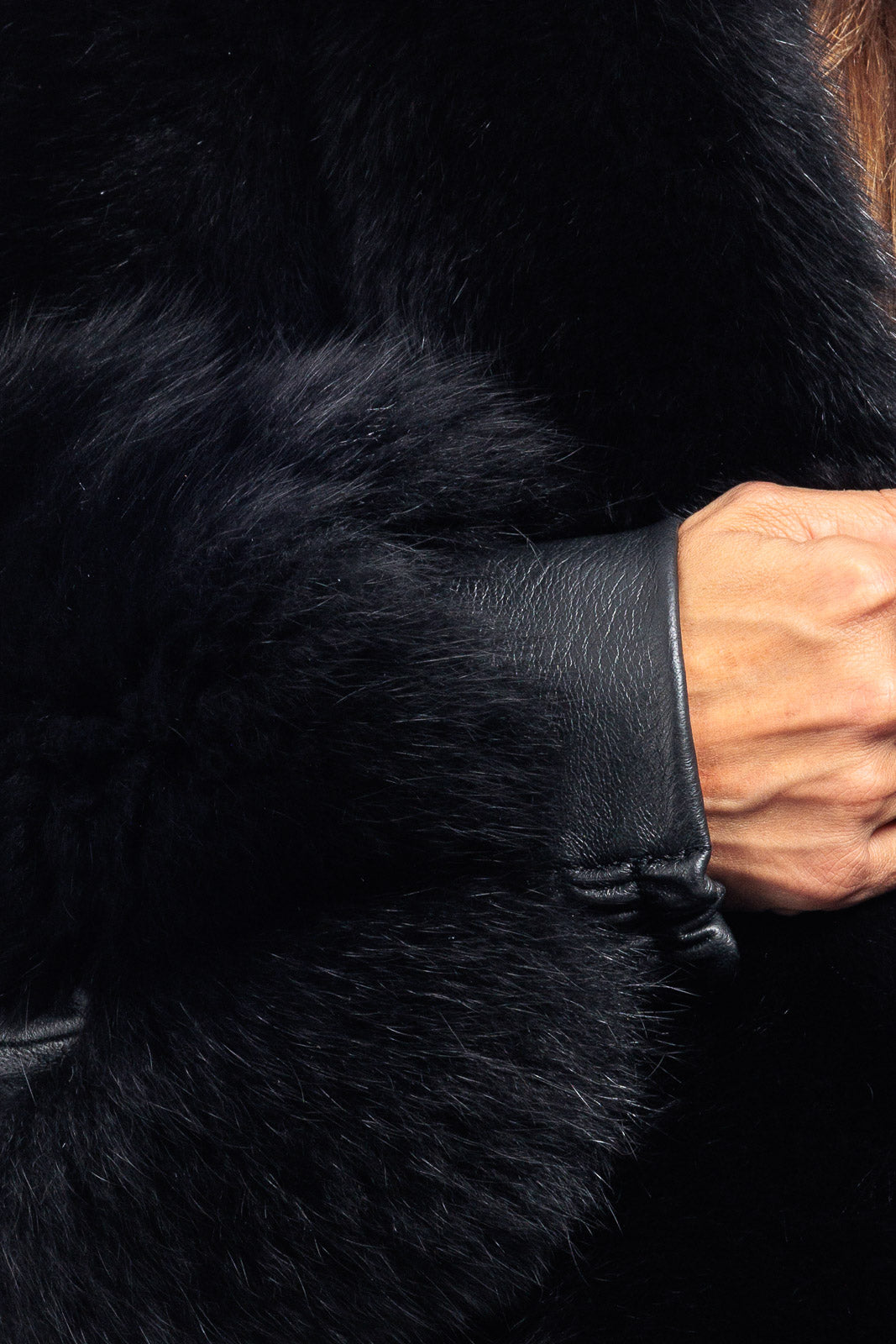 Cappottino in pelliccia di volpe nero saga royal con manica a tre quarti