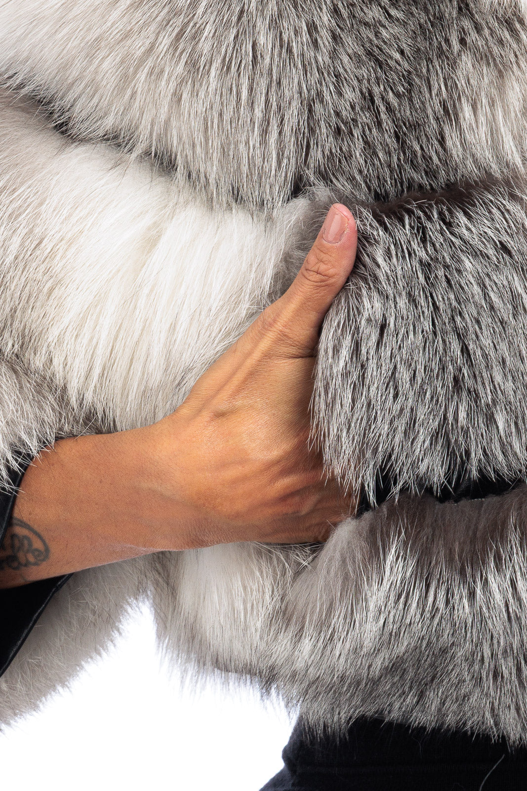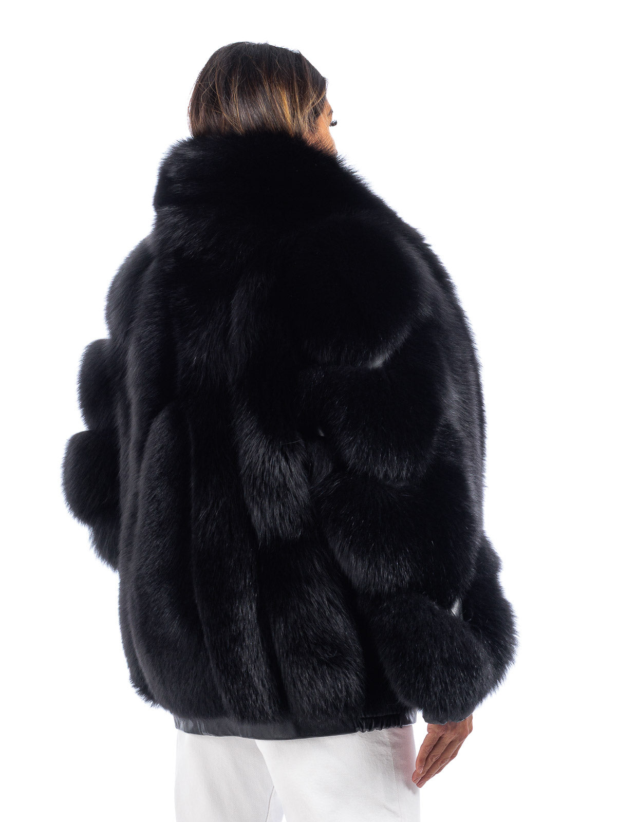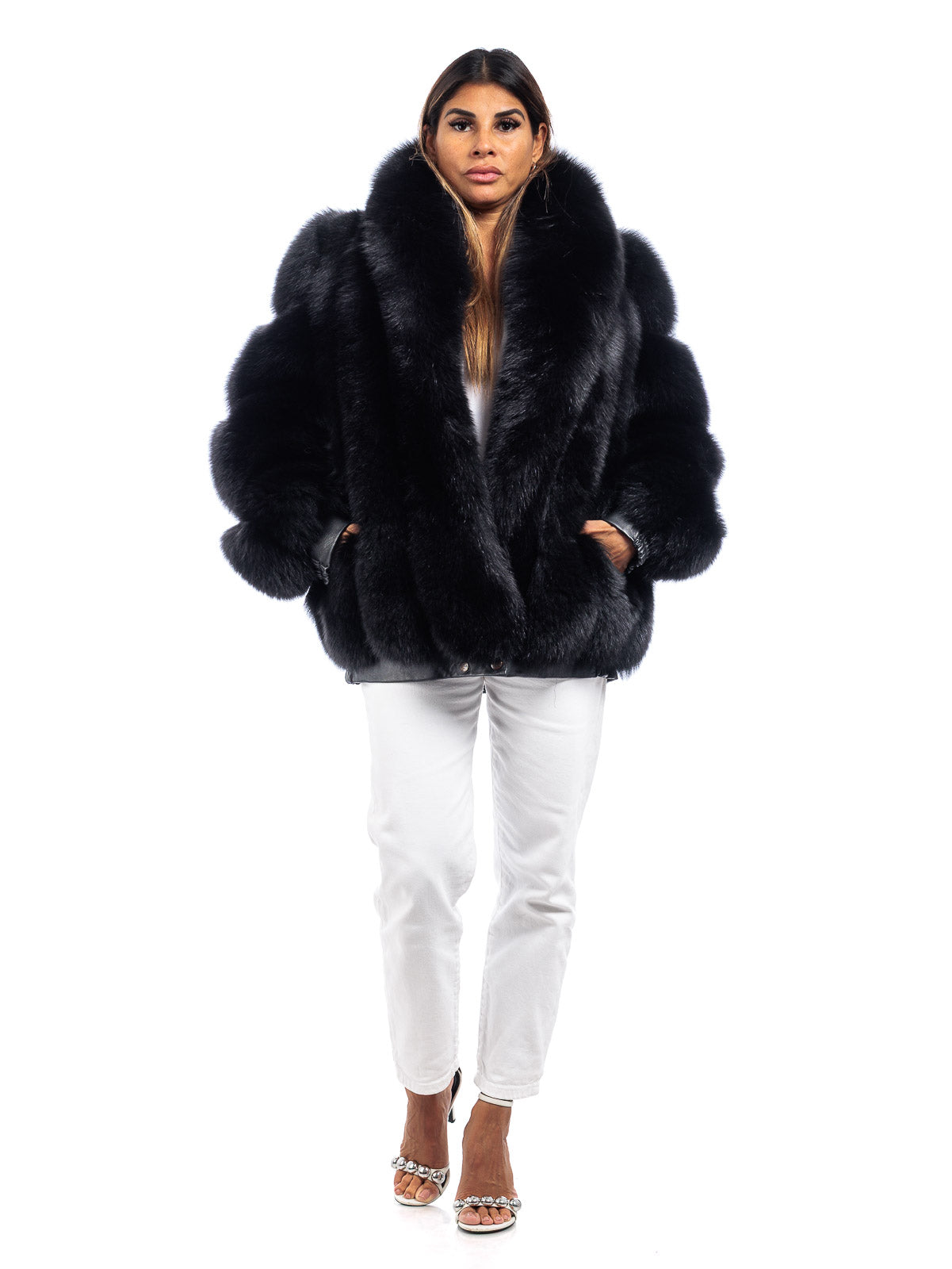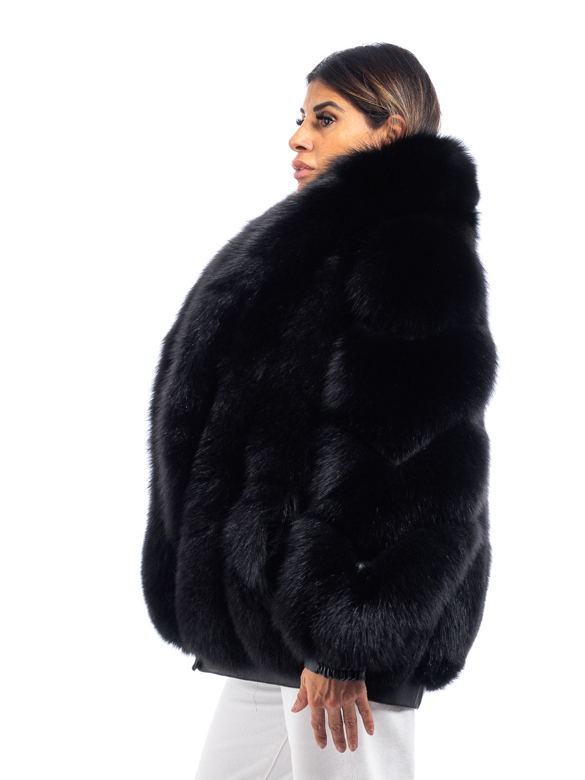 Giubbotto in pelliccia di volpe nera corto con cappuccio