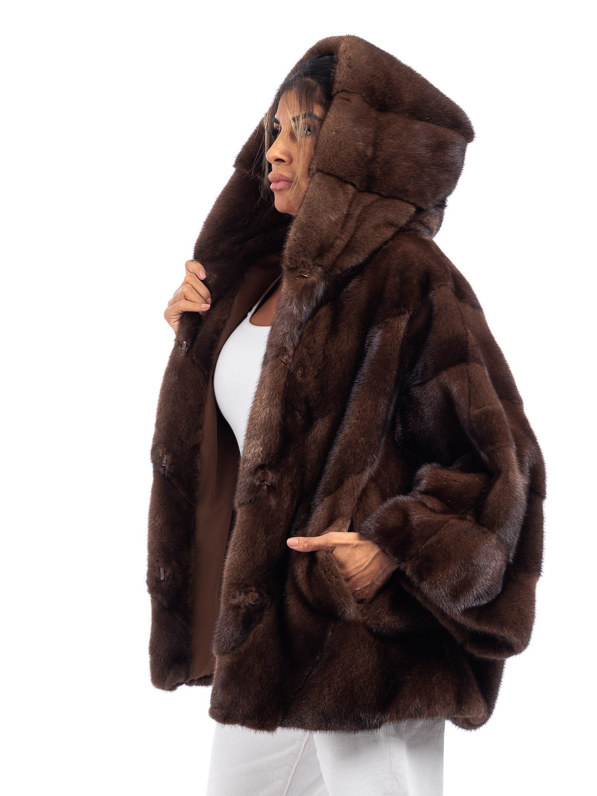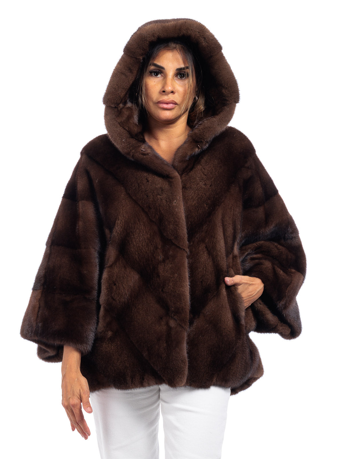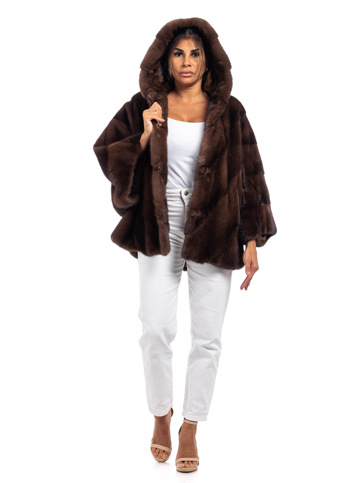 Giacca in pelliccia donna Visone con Cappuccio SPIGA
