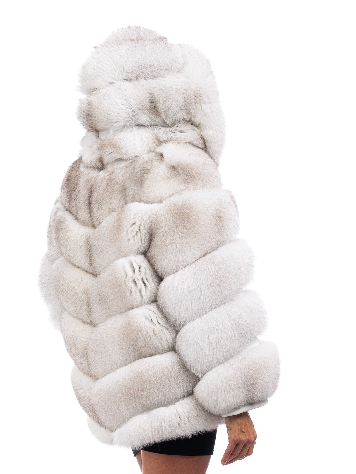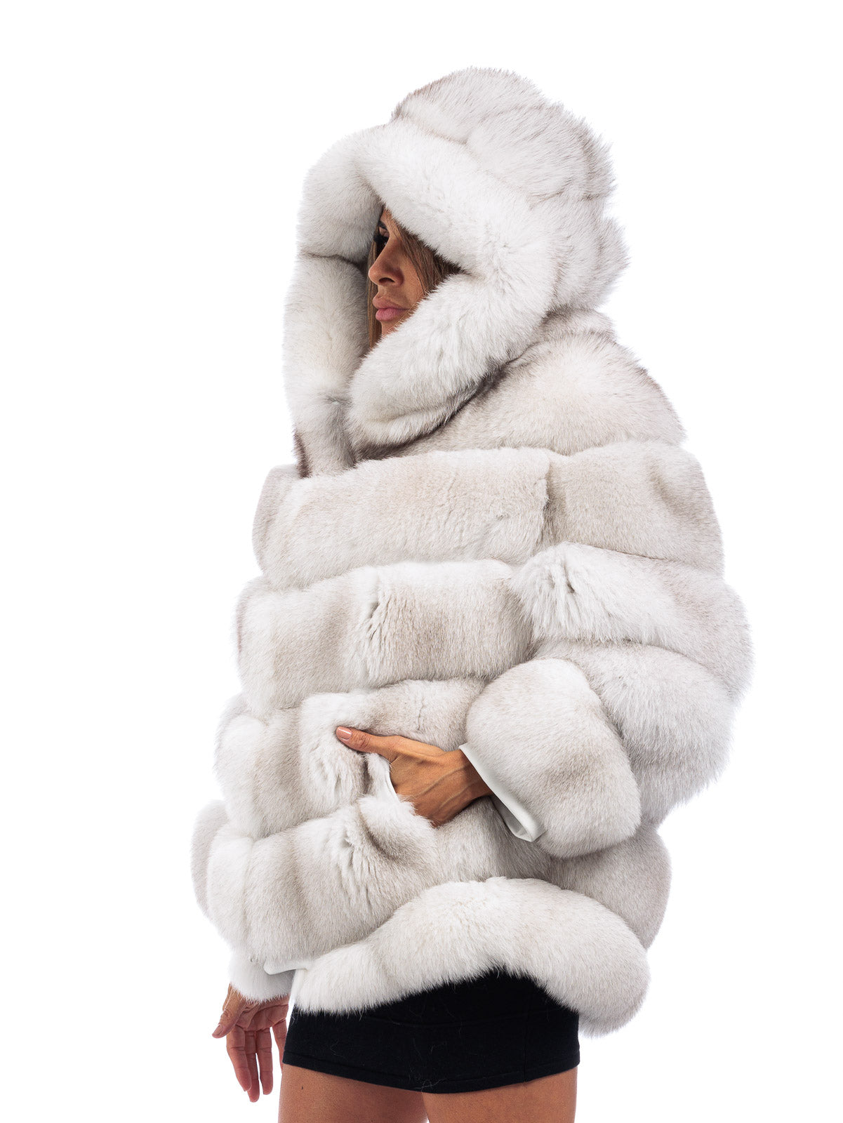Giubbotto in pelliccia di volpe FROST con lavorazione a spiga con cappuccio