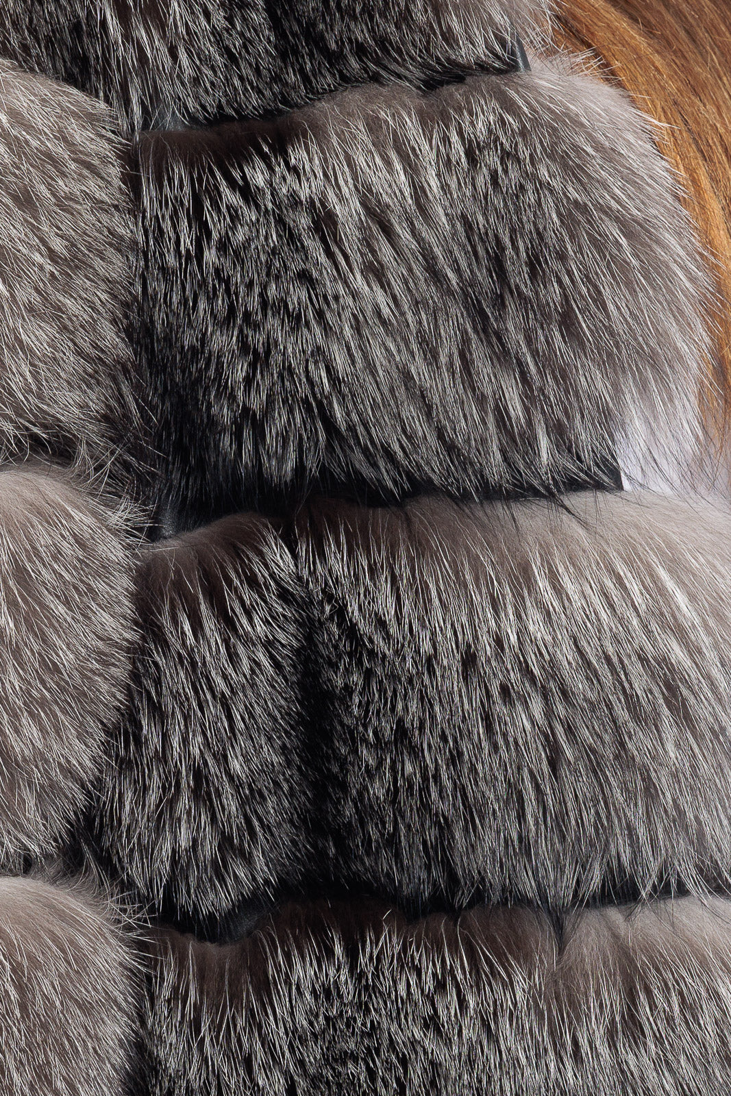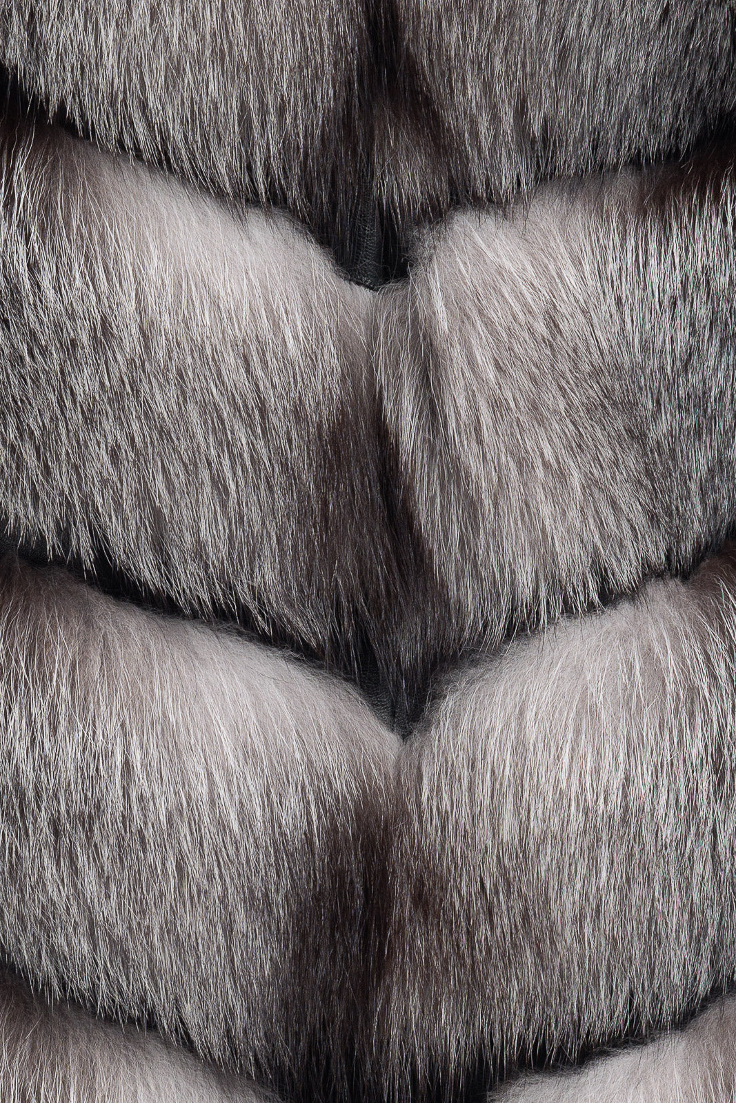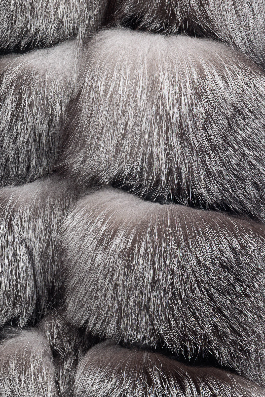 Giubbotto in pelliccia di volpe con lavorazione a spiga con cappuccio