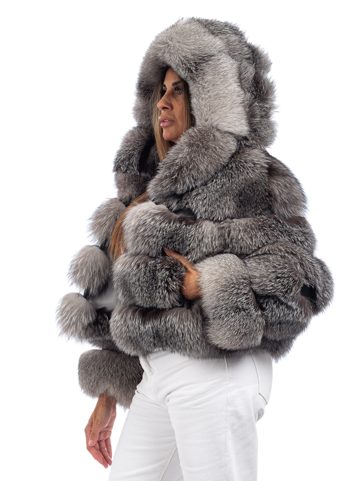 Giubbotto in pelliccia di volpe FROST corto con cappuccio