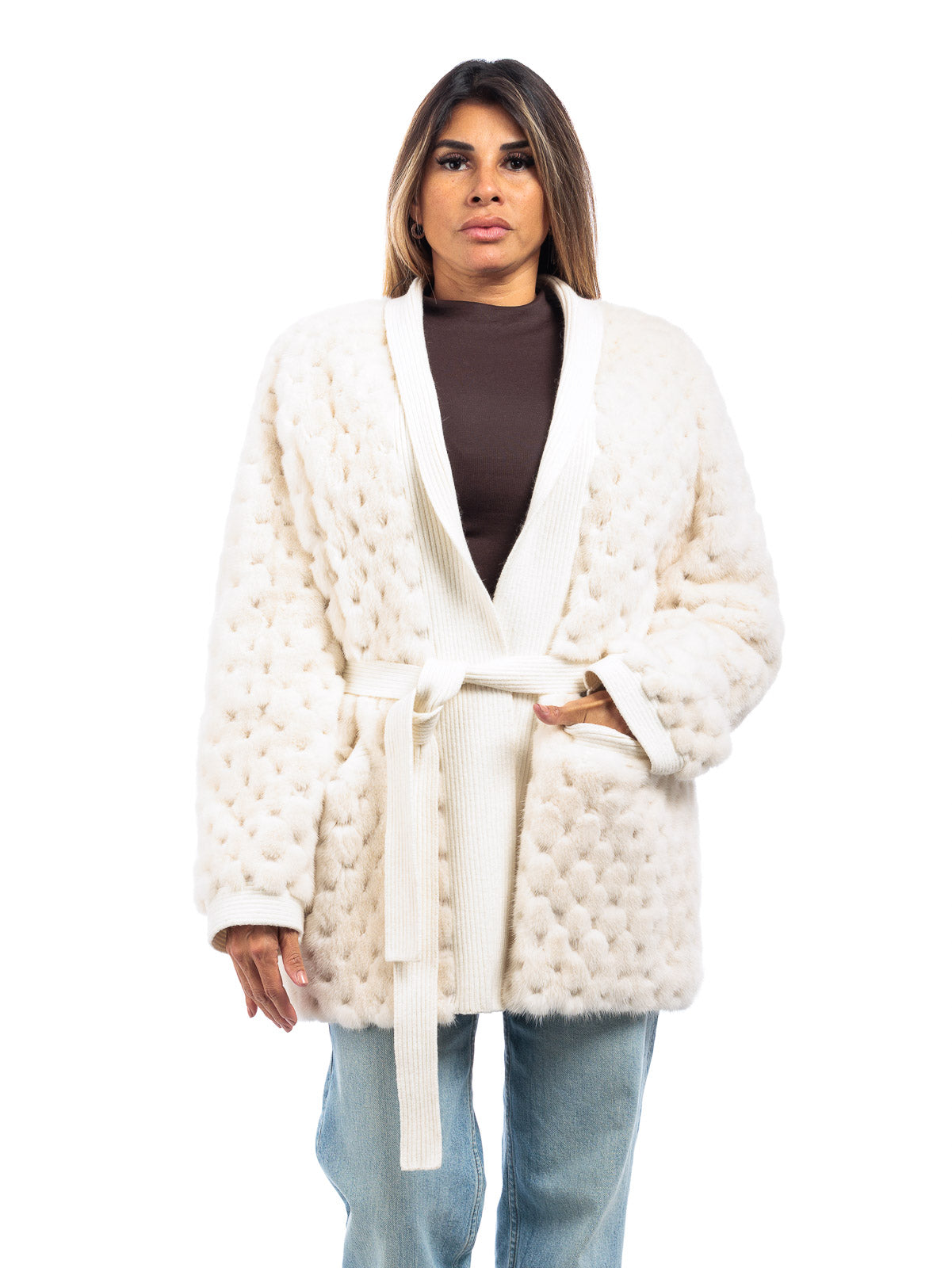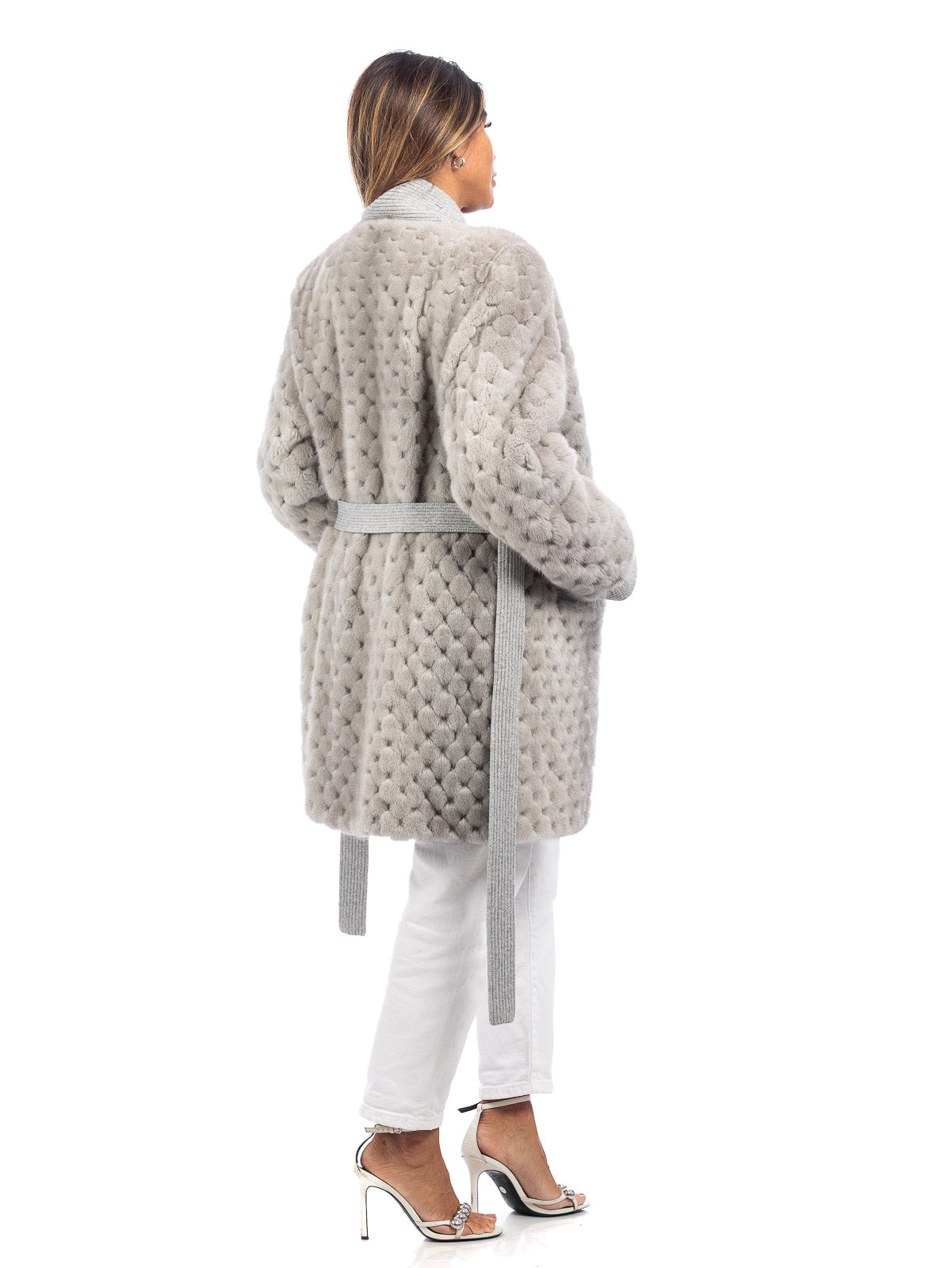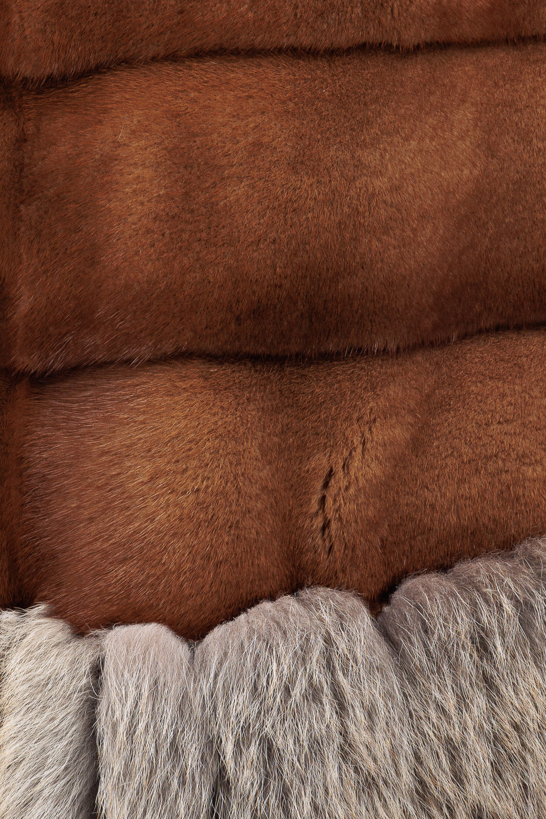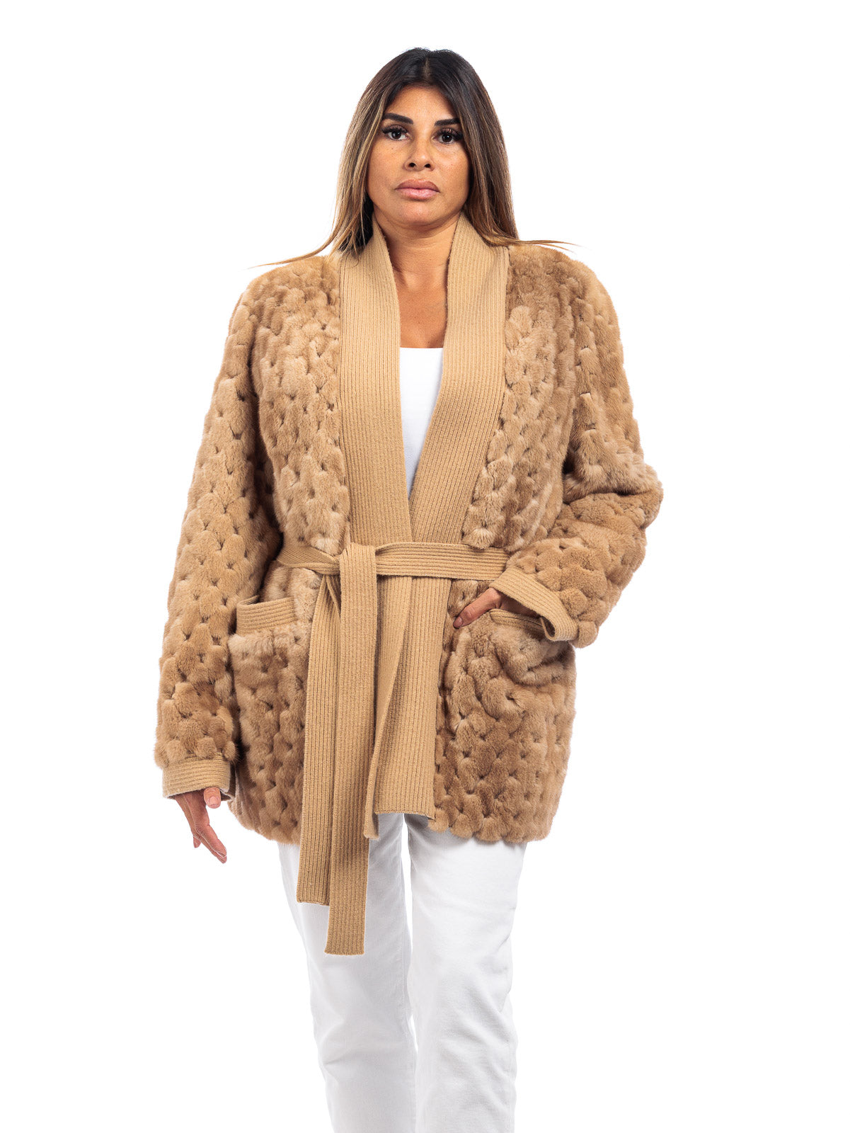 Vestaglia in pelliccia di visone miele con bordo in volpe