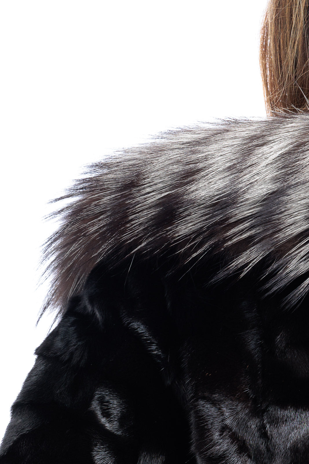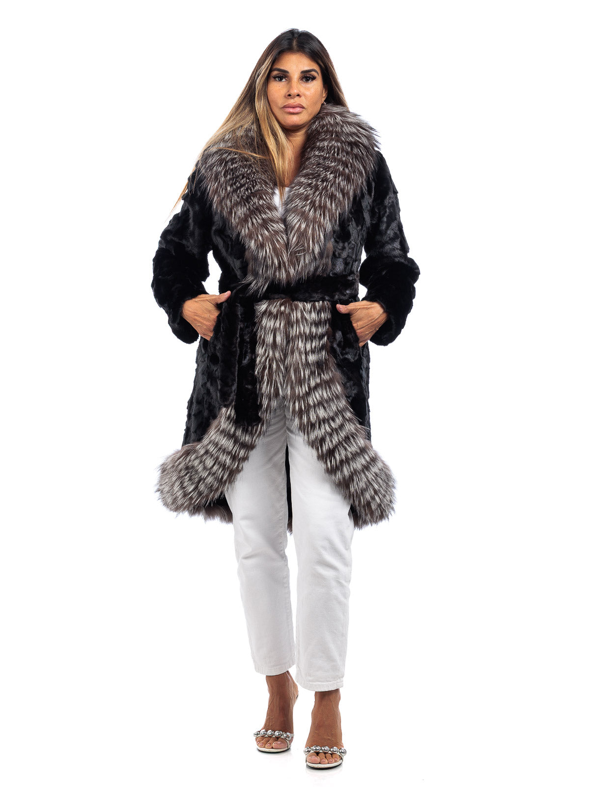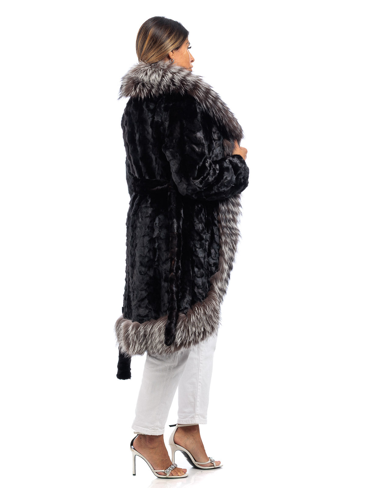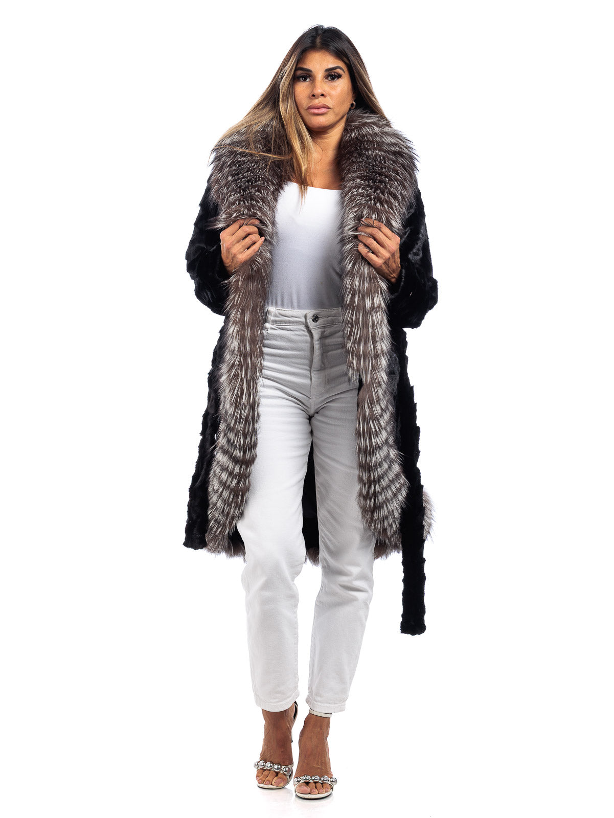 Vestaglia in pelliccia di visone nero con bordo in volpe