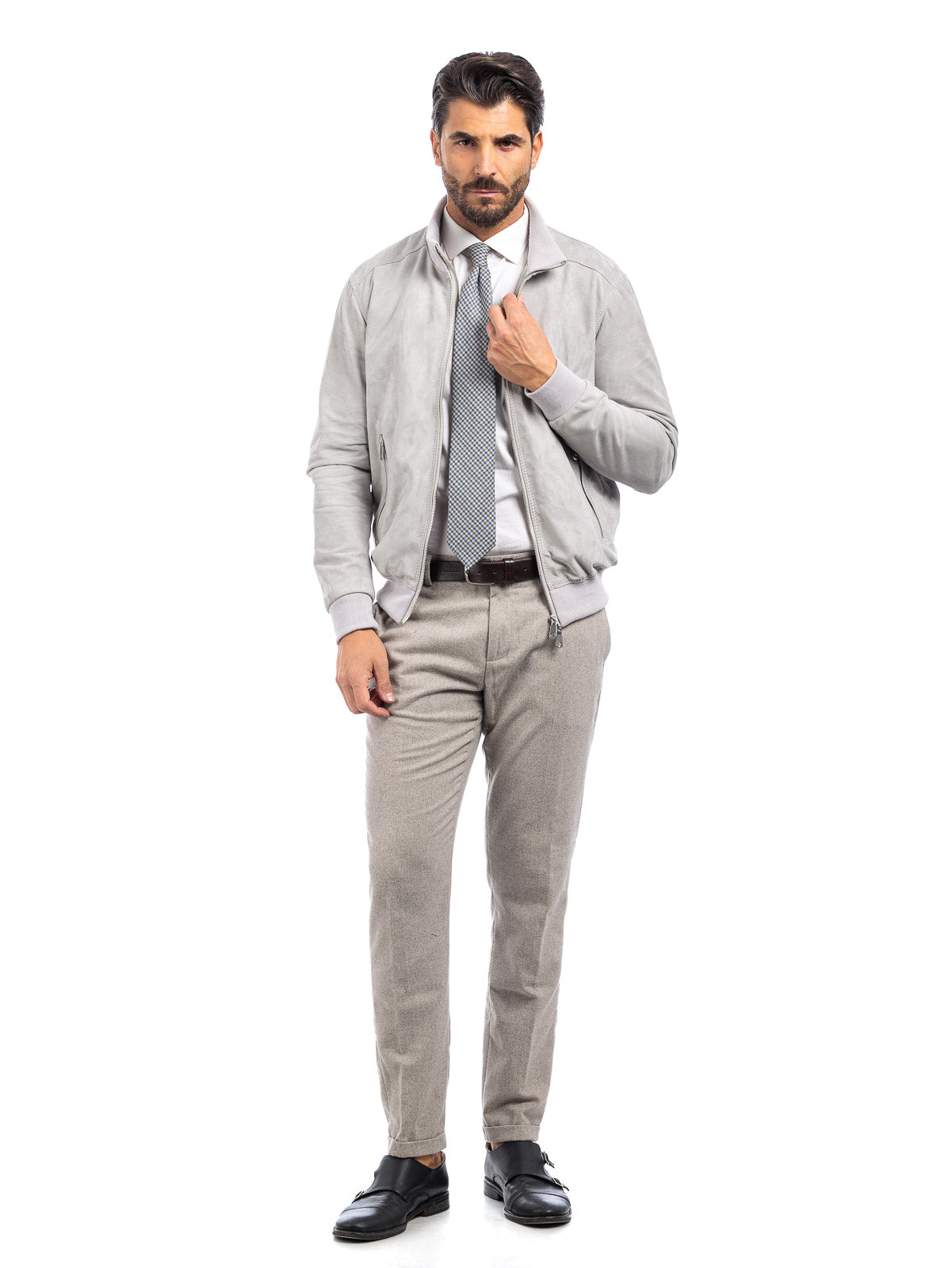 Bomber in camoscio uomo con bottoni e zip VAST taupe