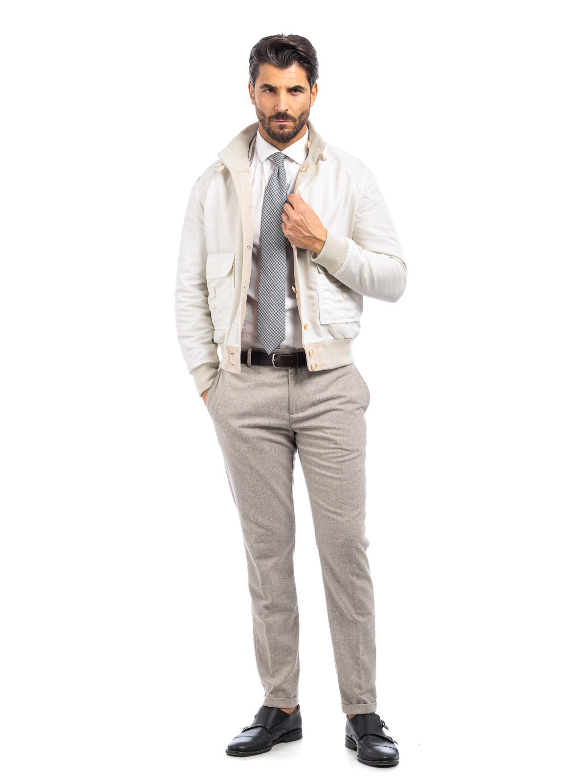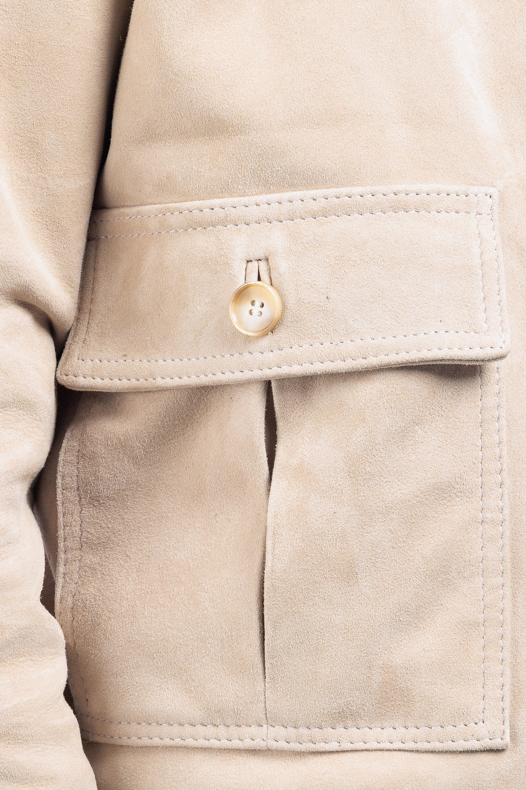 Bomber in camoscio uomo con bottoni e zip VAST panna