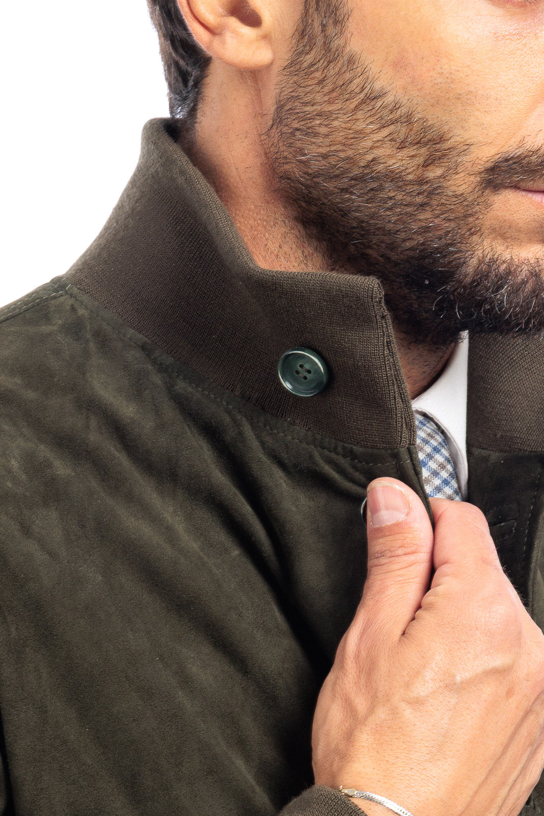 Bomber in camoscio uomo con bottoni e zip VAST verde