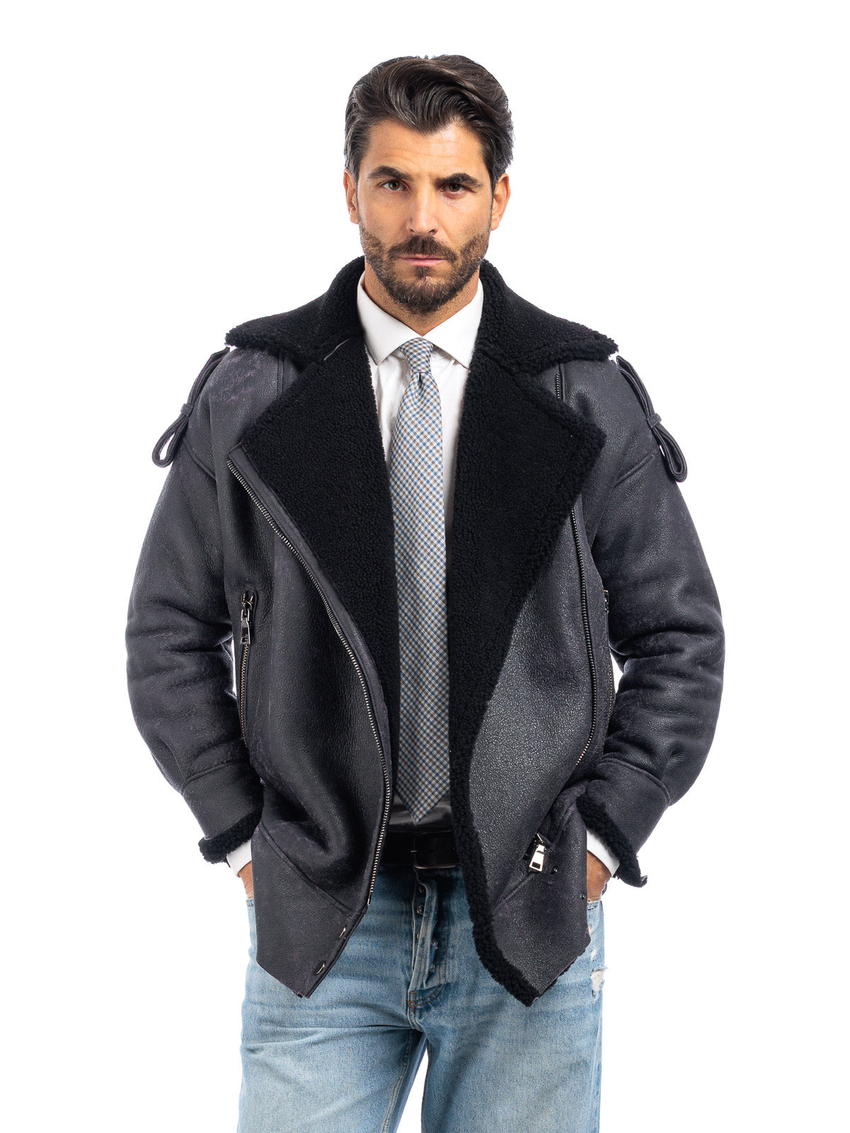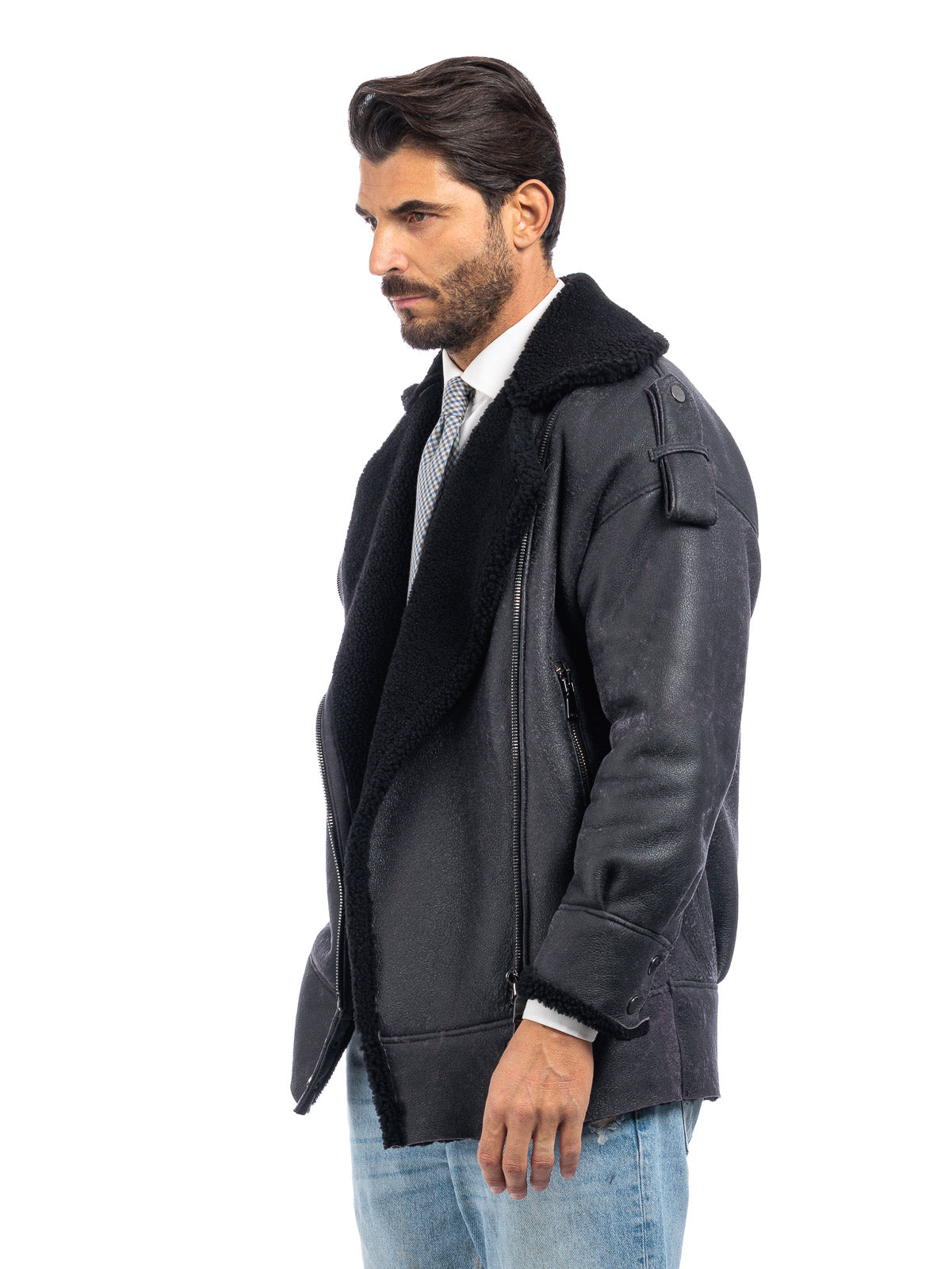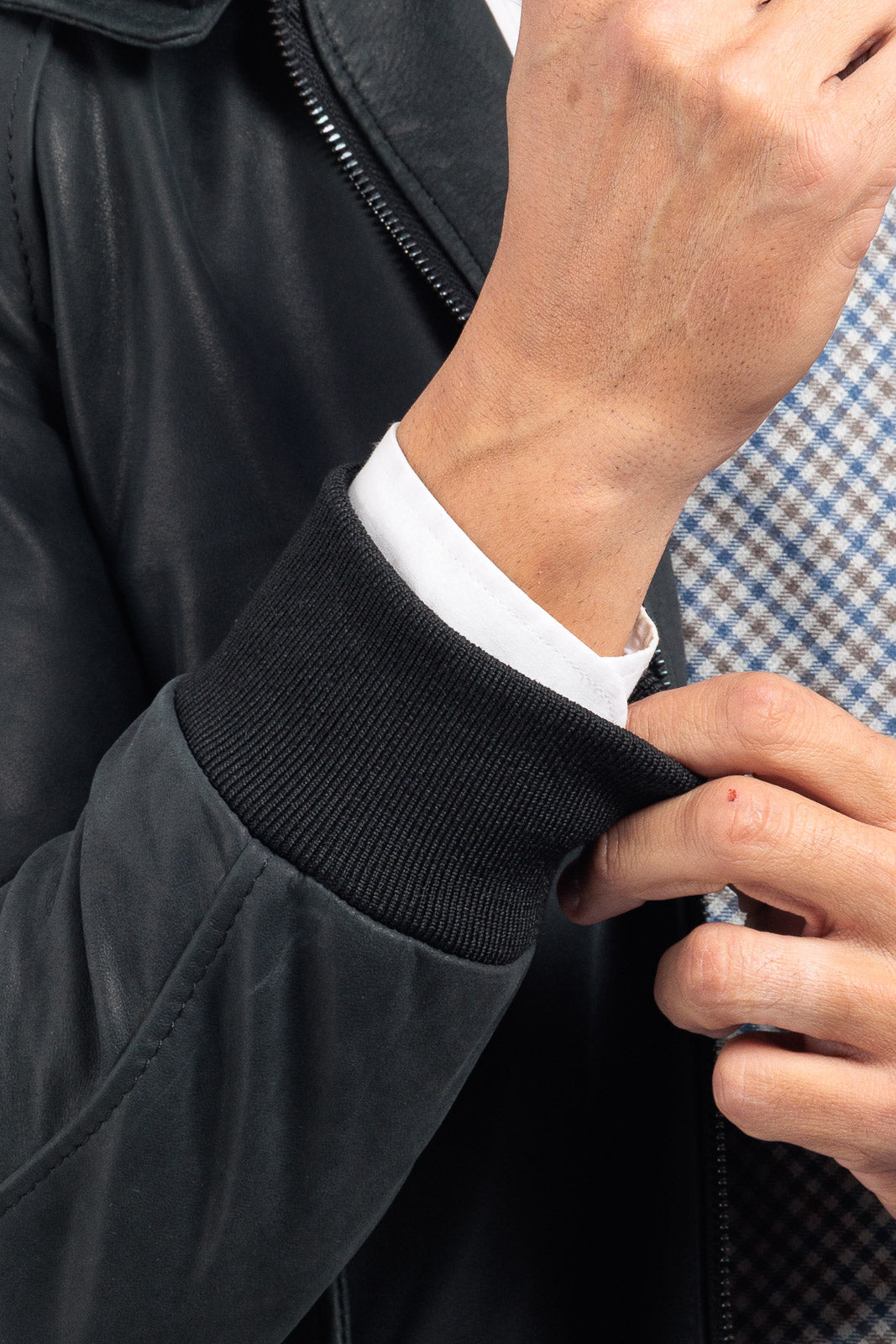 Bomber in vera pelle uomo con zip REGLAN PAT con collo in montone