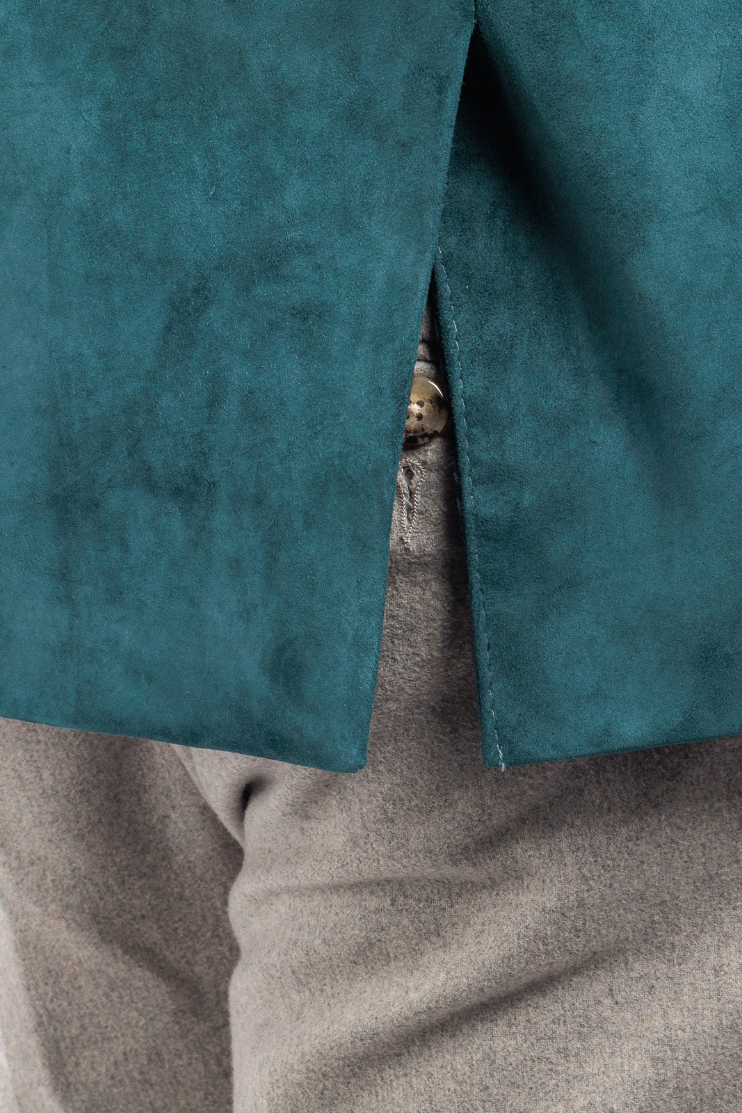 Giacca classica in camoscio uomo con spacchi laterali smeraldo