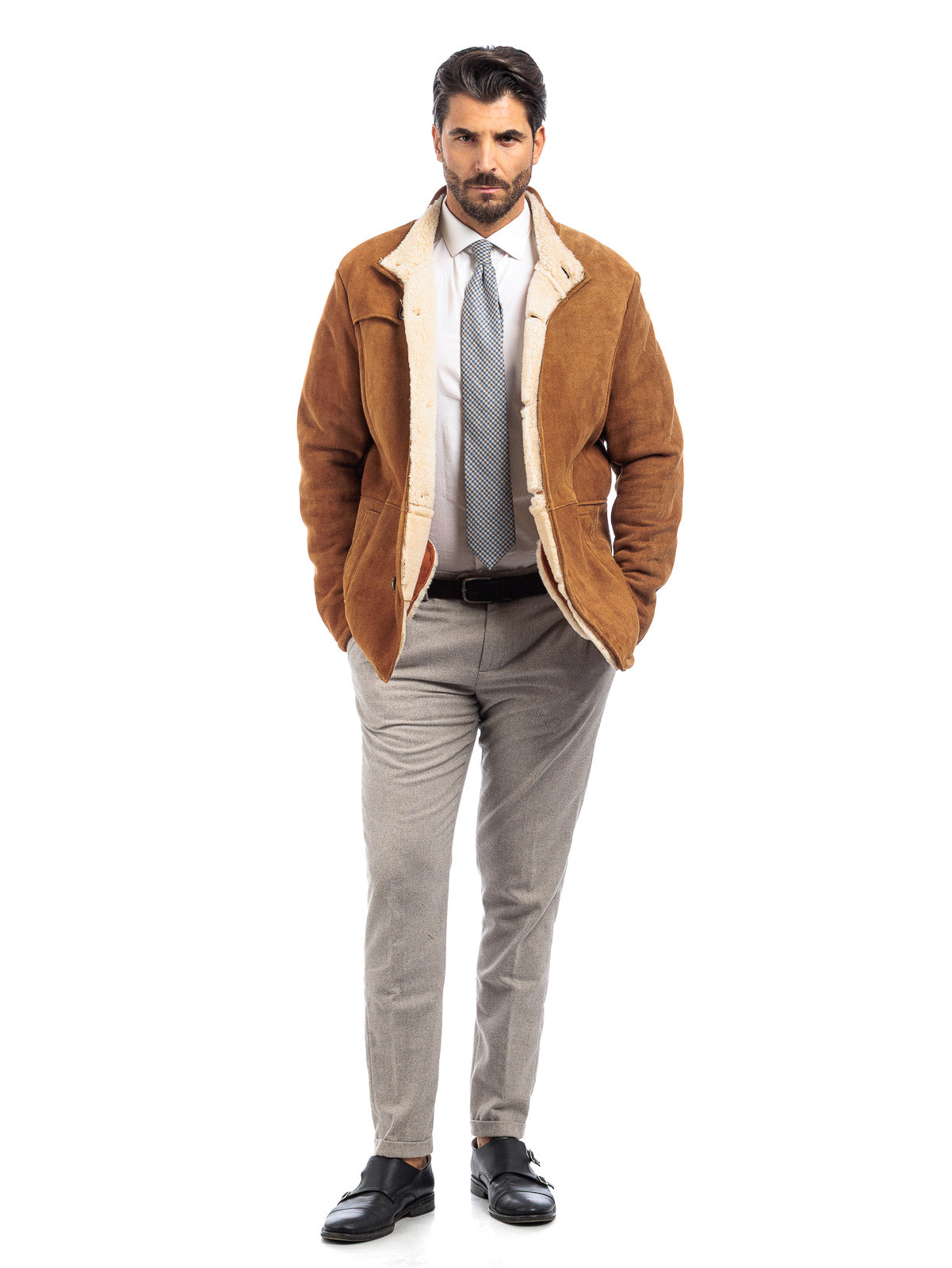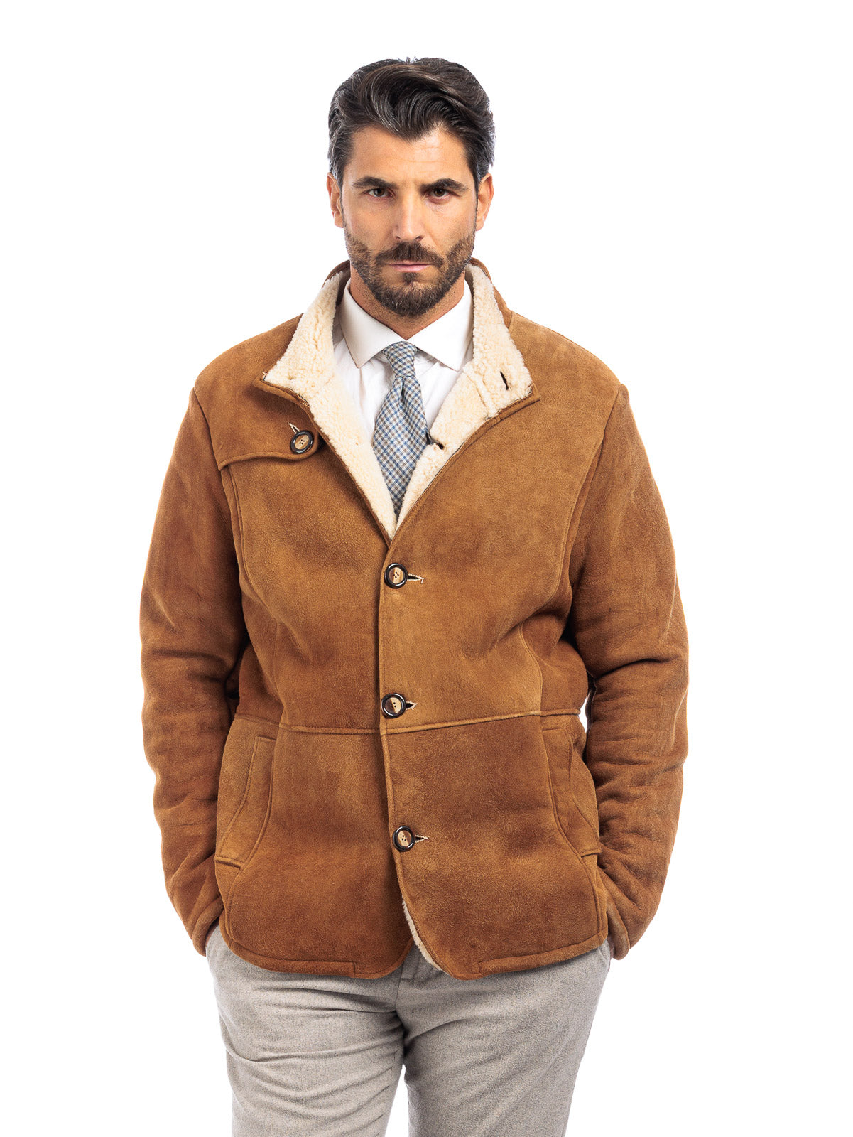 Giacca interamente in montone whisky con bottoni - linea OVER